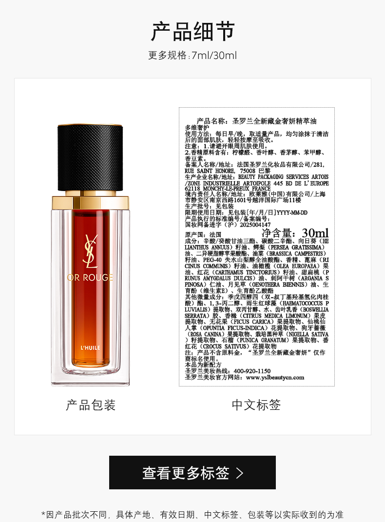 YSL 圣罗兰全新藏金奢妍精萃油 30ml LF577500-F