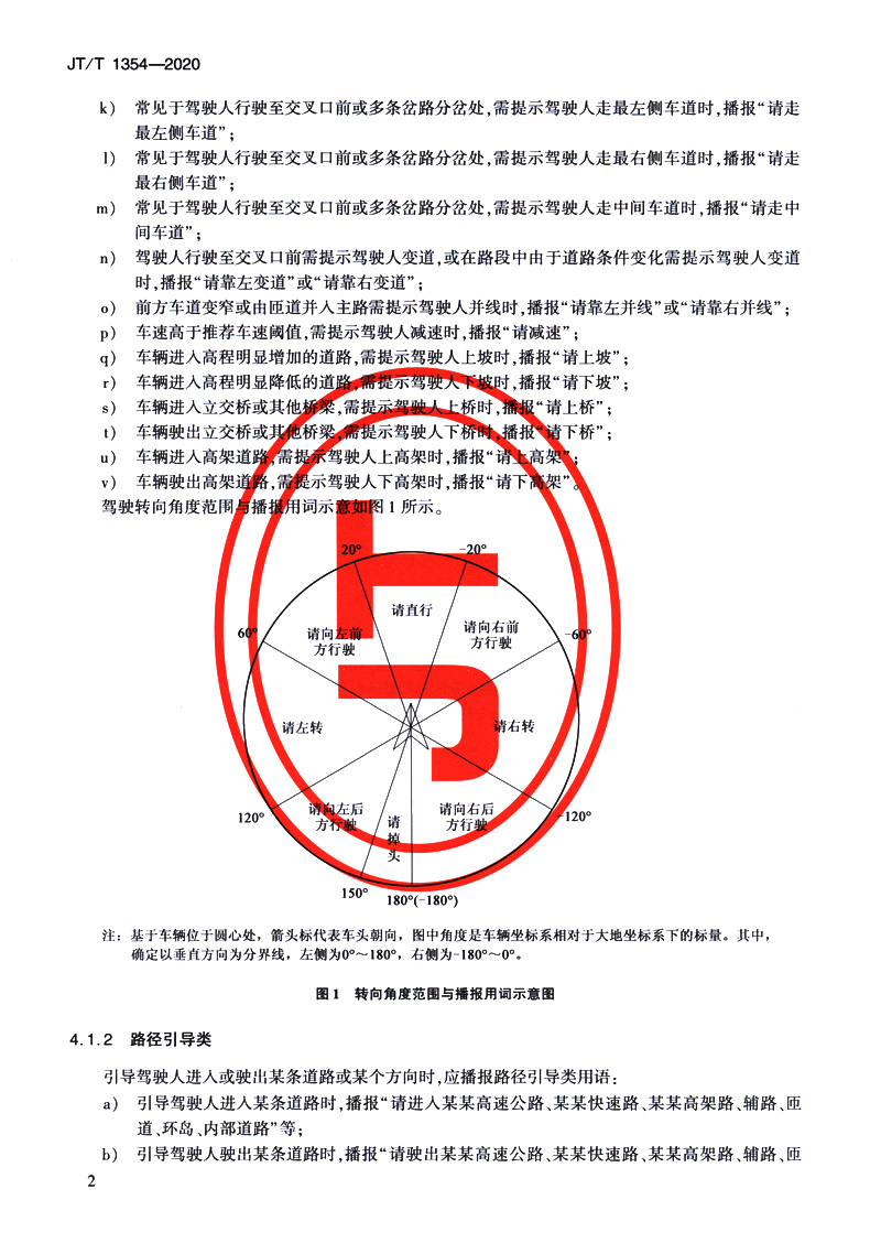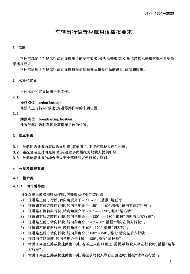 | 车辆出行语音导航用语播报要求(JT/T 1354—2020) | ||