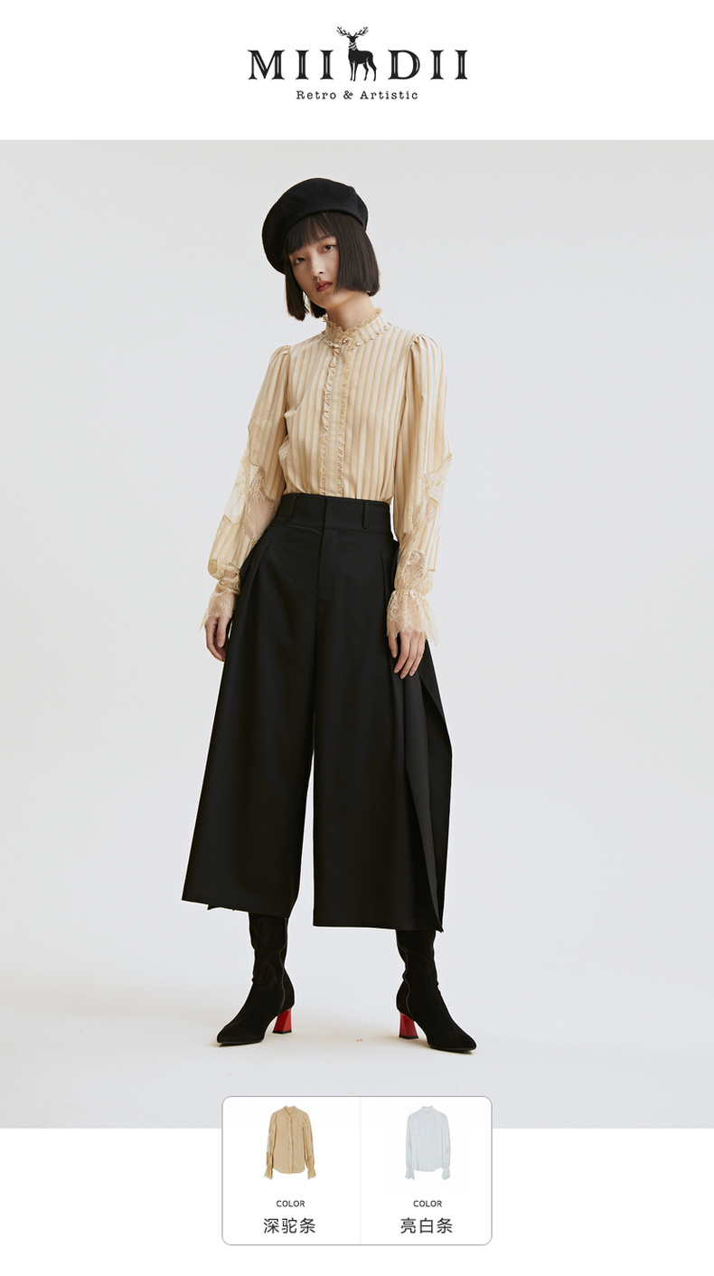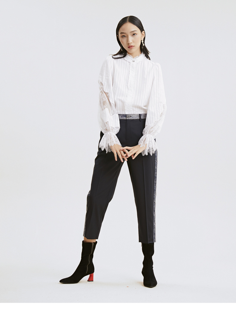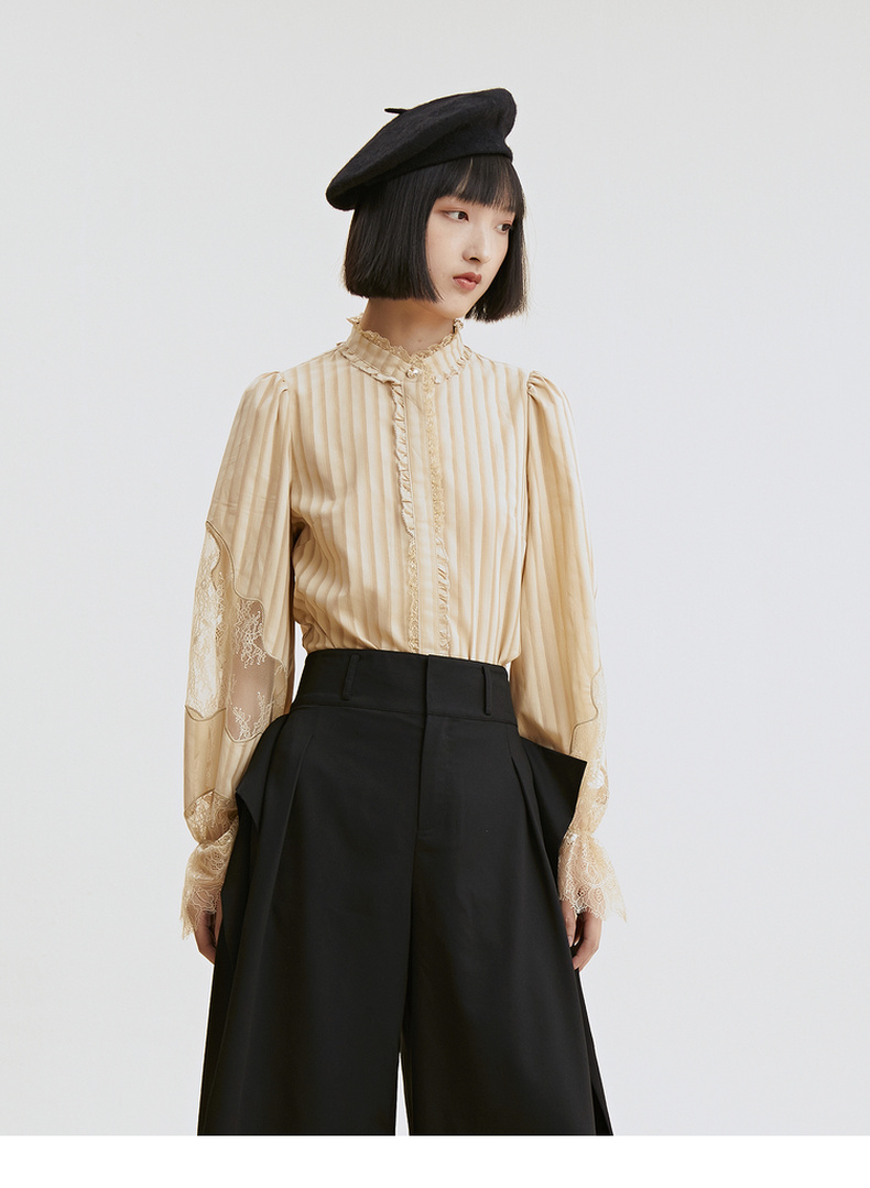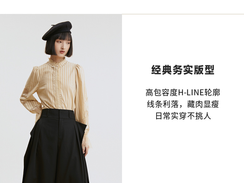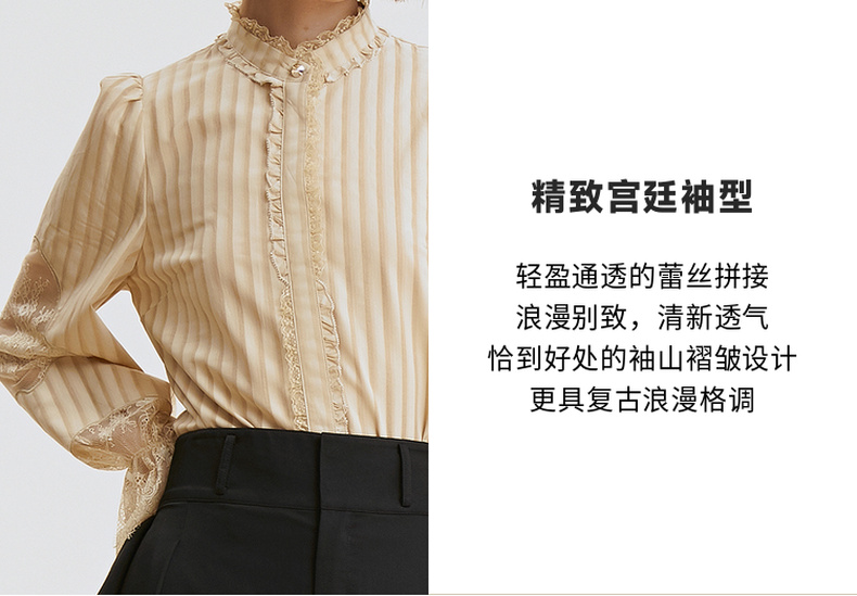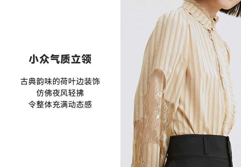 谜底长袖衬衫2022新款纯棉拼接蕾丝合体上衣女228MC6098