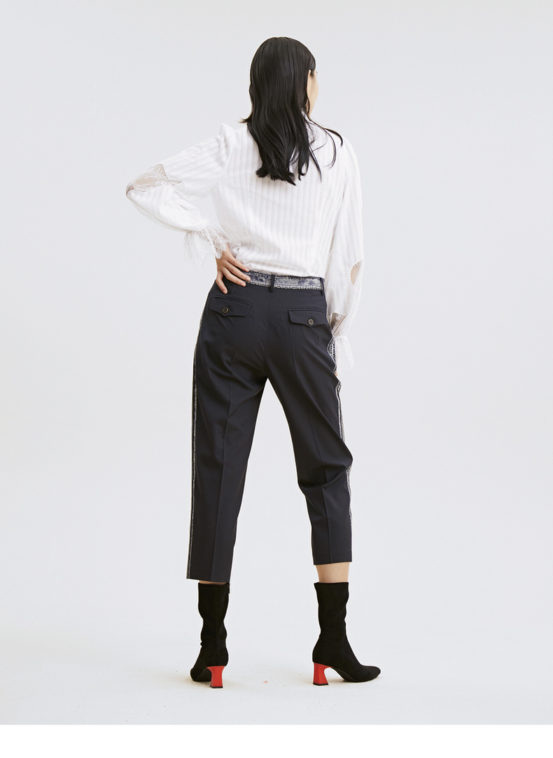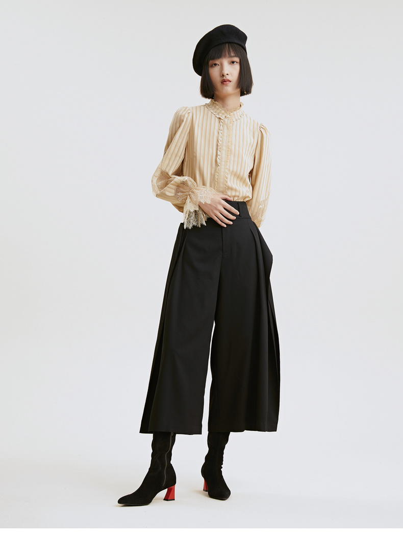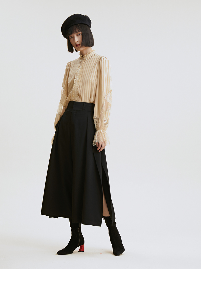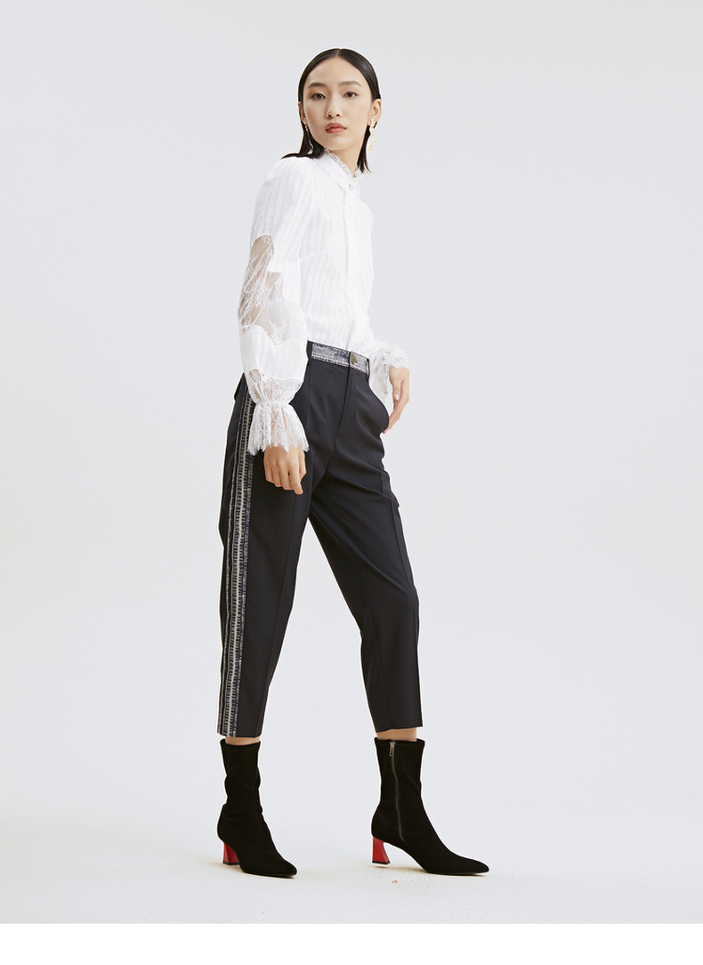谜底长袖衬衫2022新款纯棉拼接蕾丝合体上衣女228MC6098