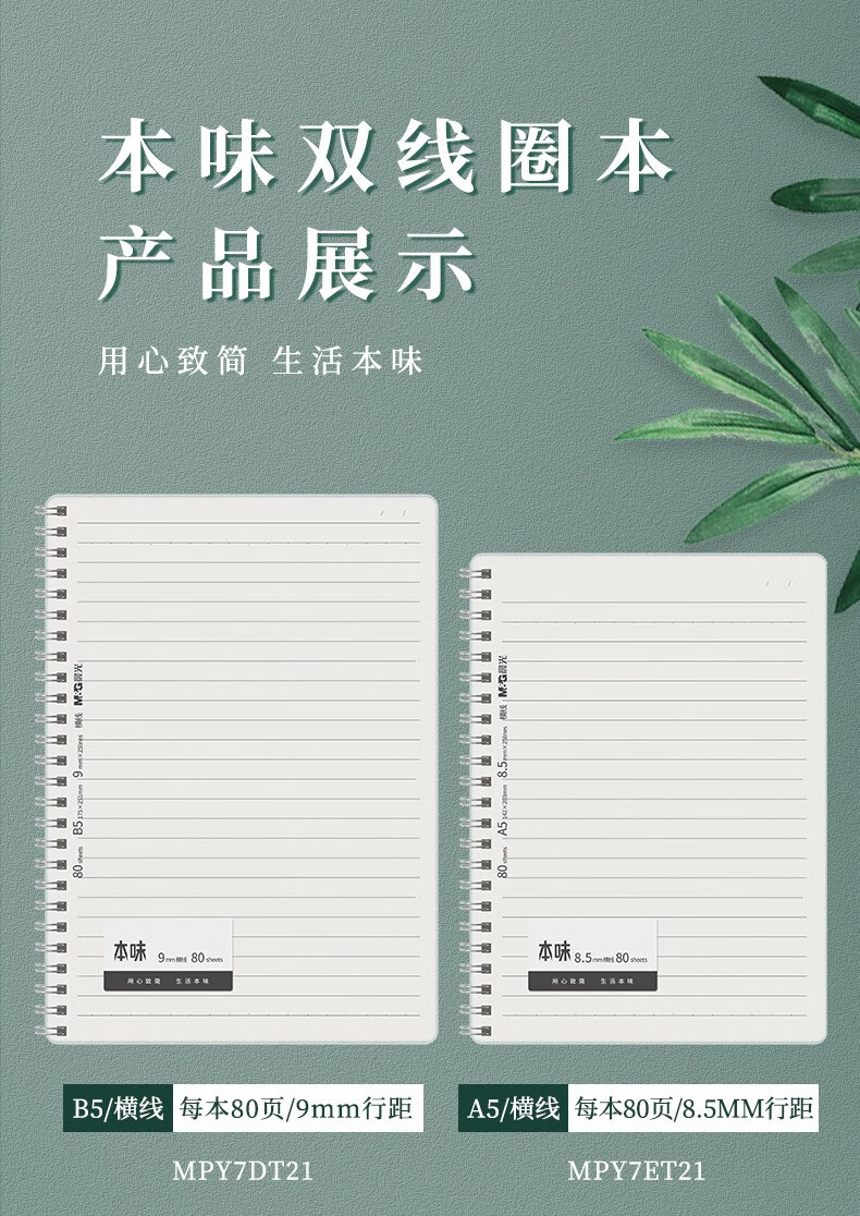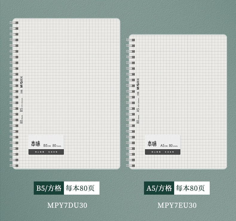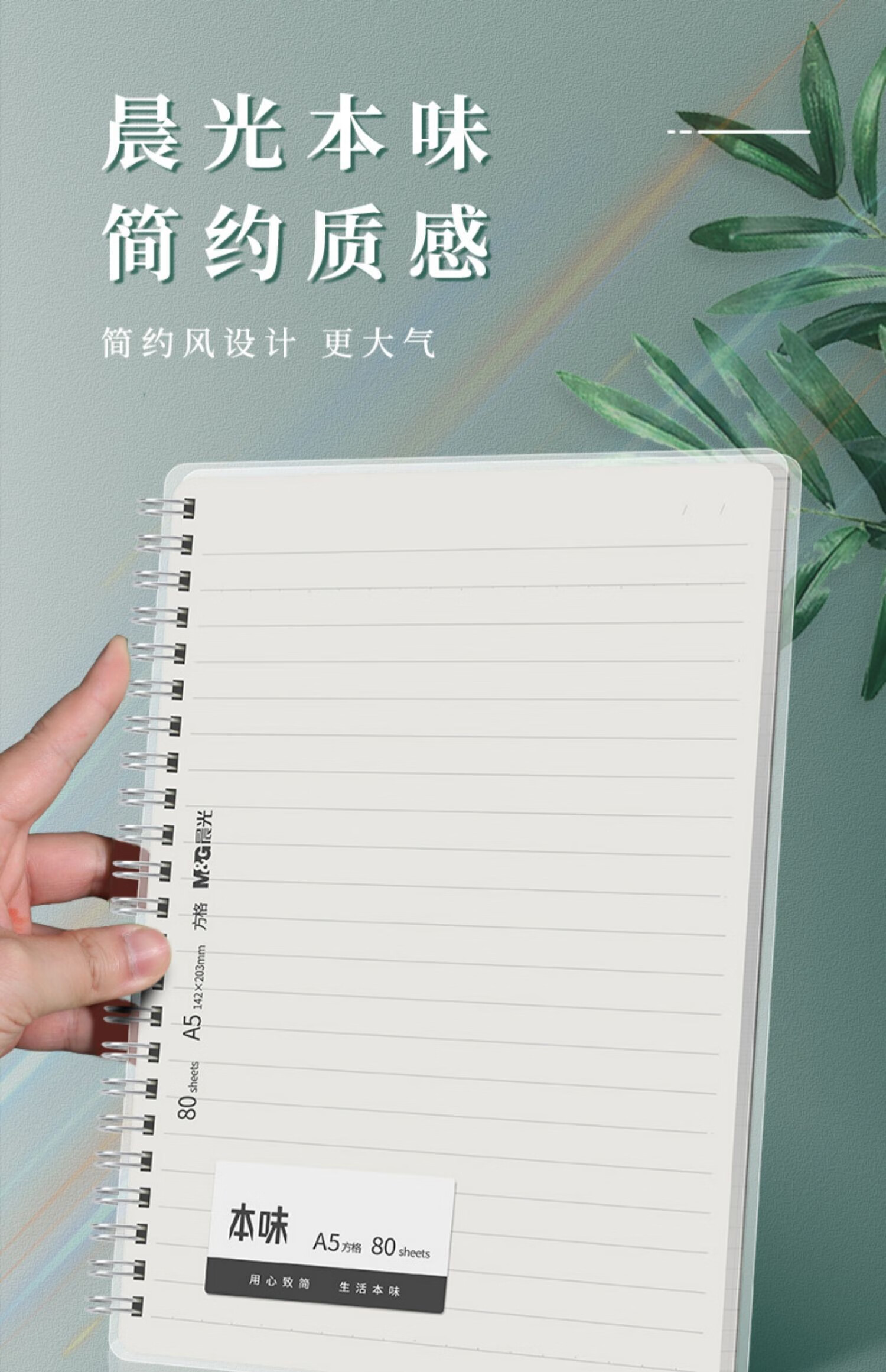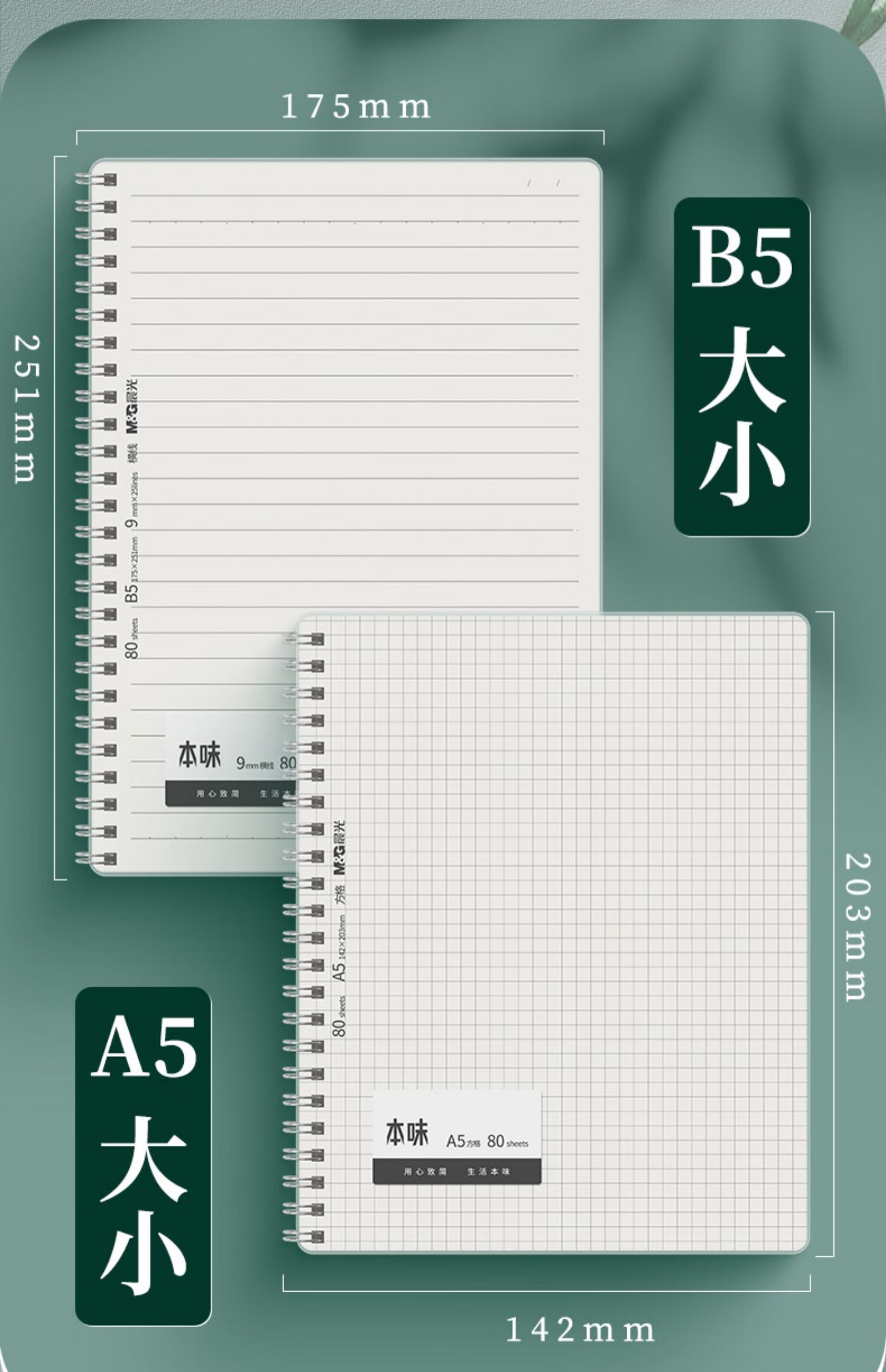 晨光本味B5PP双线圈80页B5横线本方格本线圈笔记本错题本小学生用