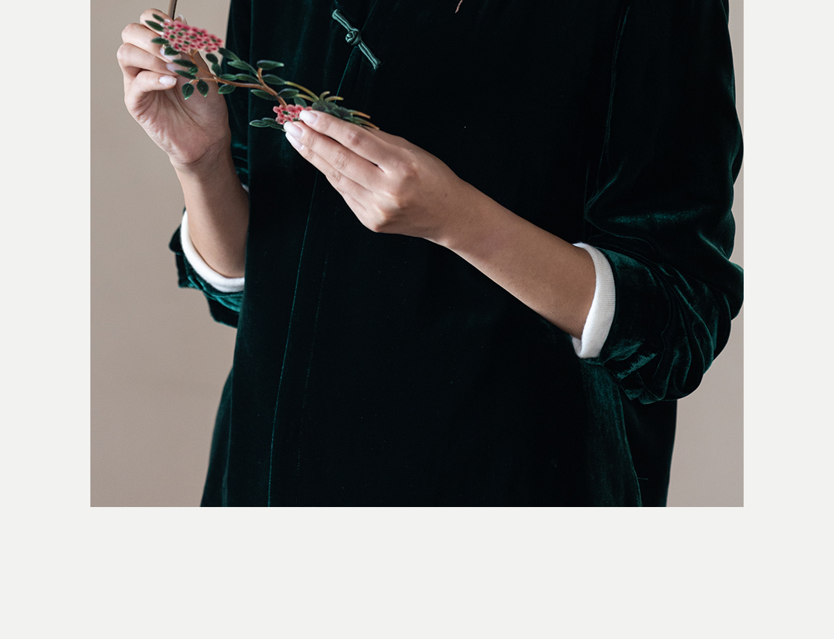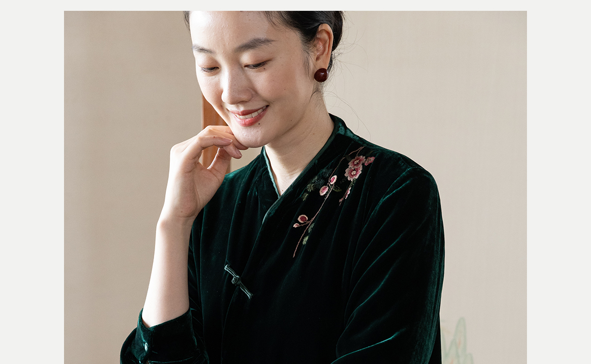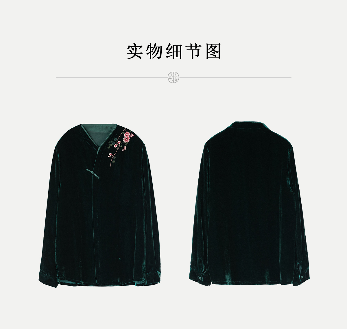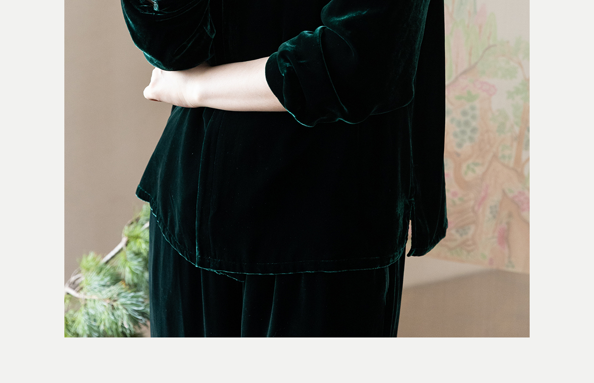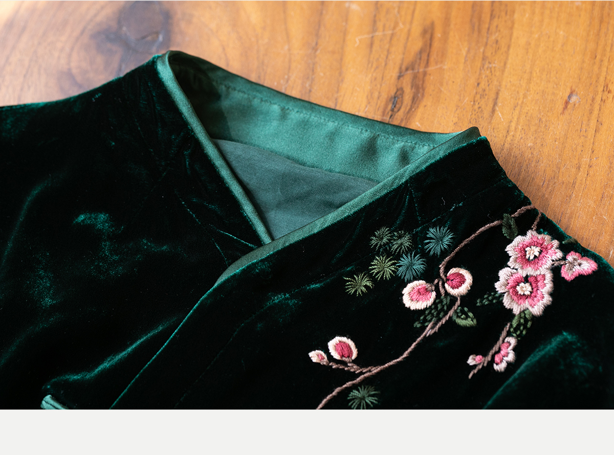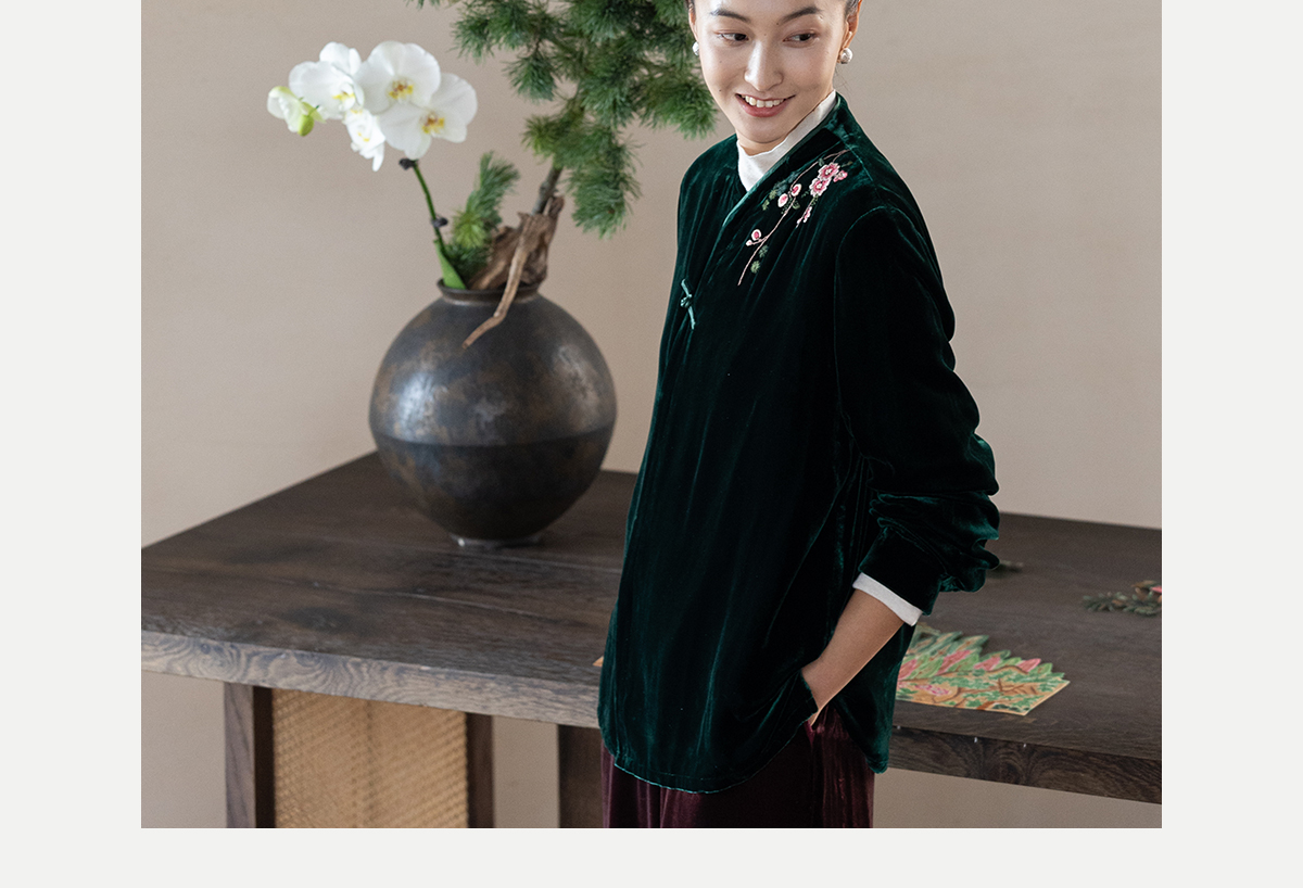 牧衣游原创 丝绒手工刺绣短外套绿色百搭简约复古新中式开衫 奈苼