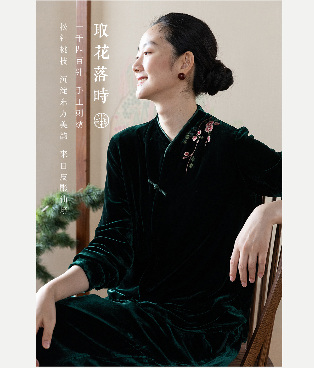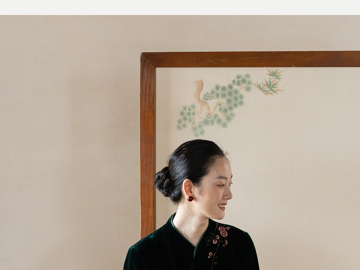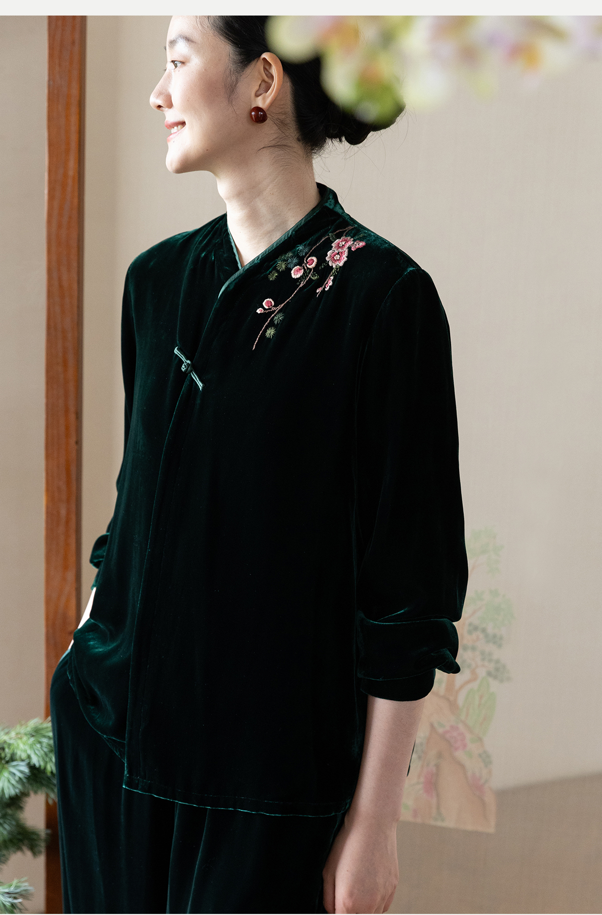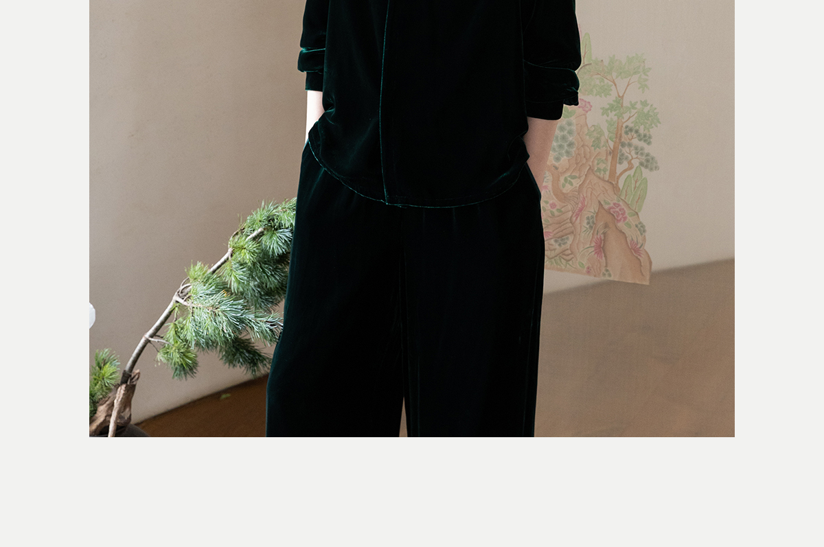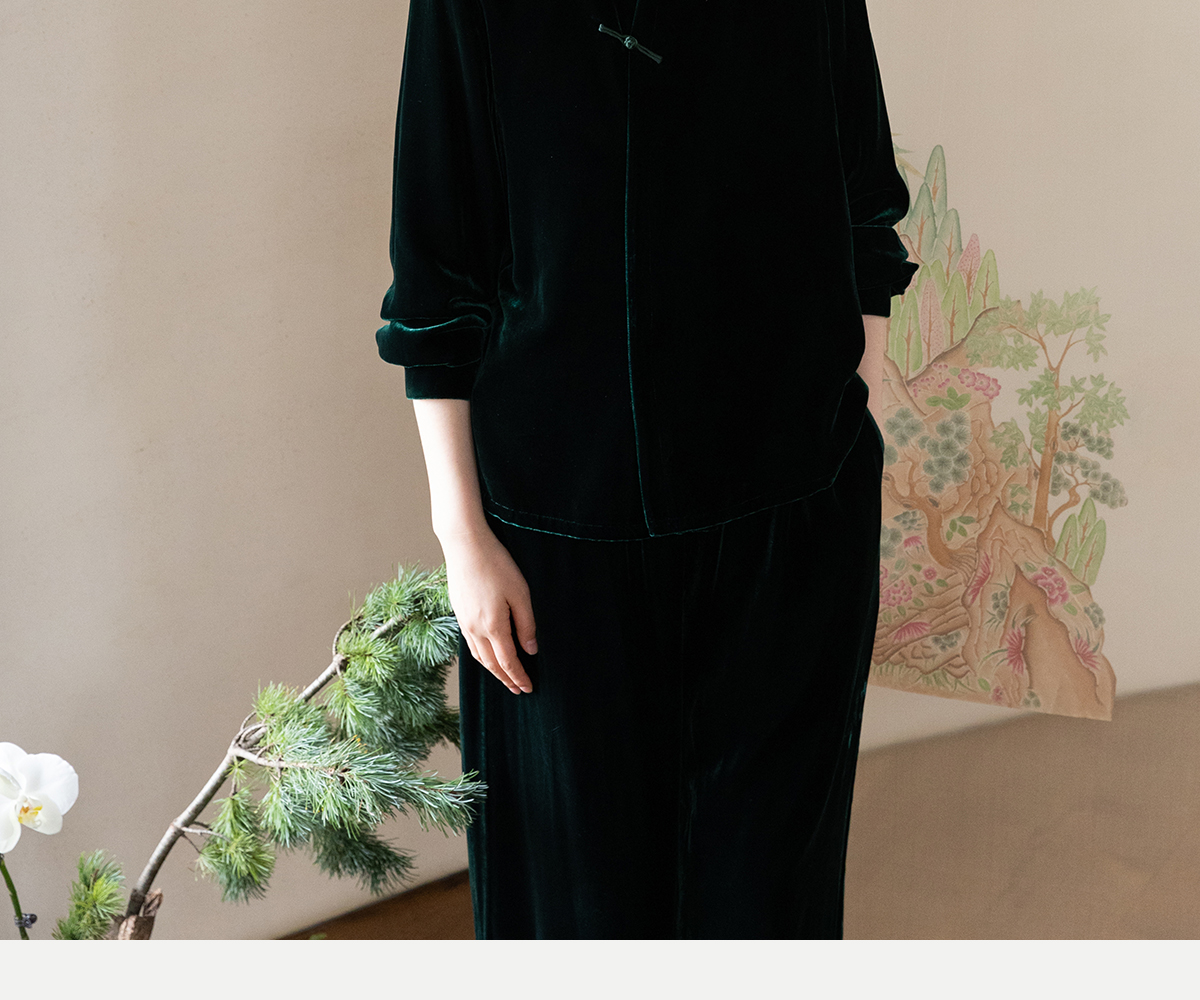 牧衣游原创 丝绒手工刺绣短外套绿色百搭简约复古新中式开衫 奈苼