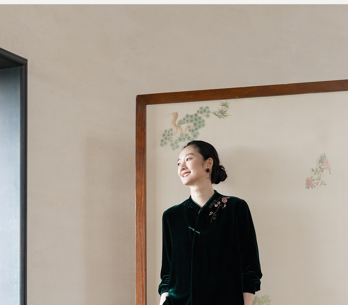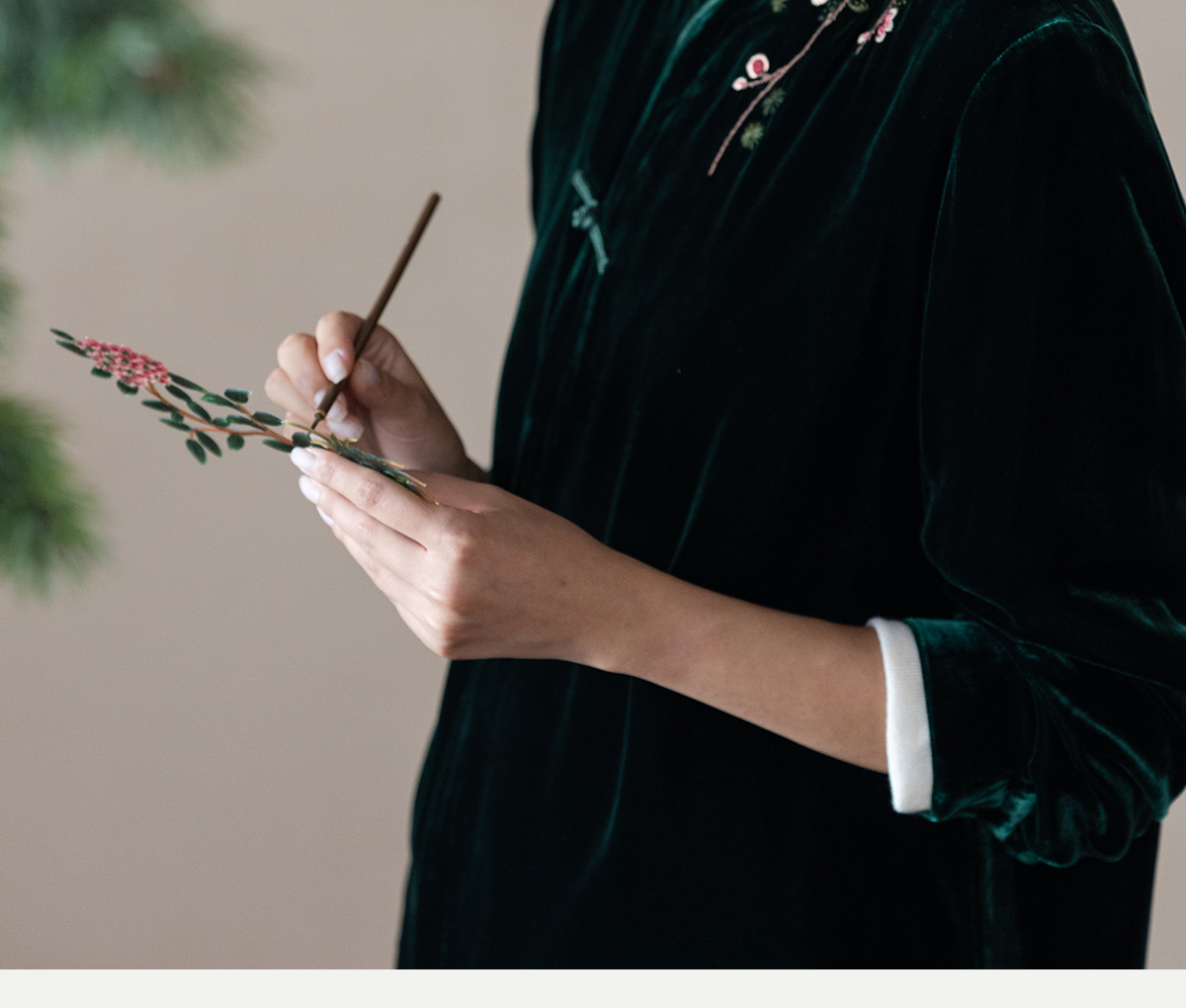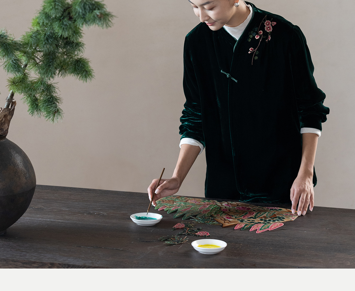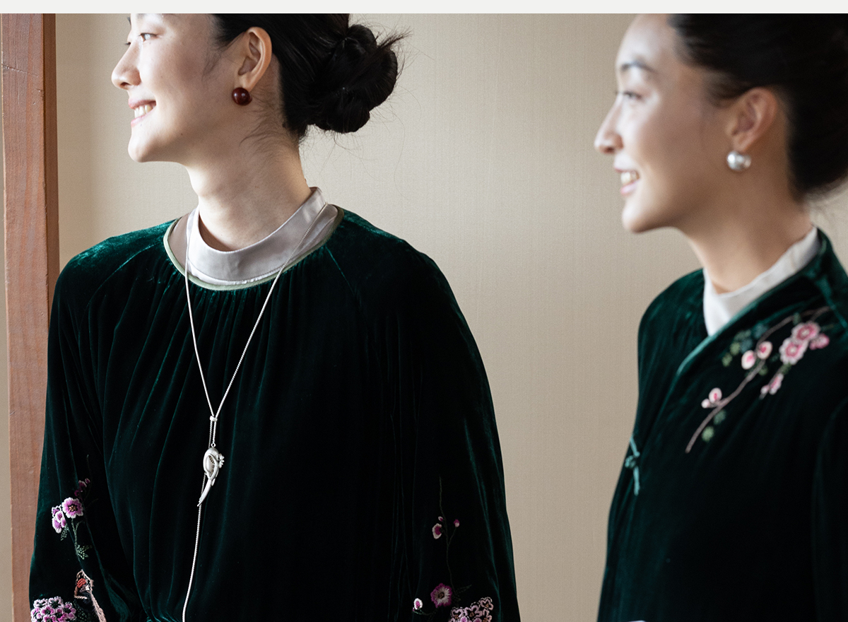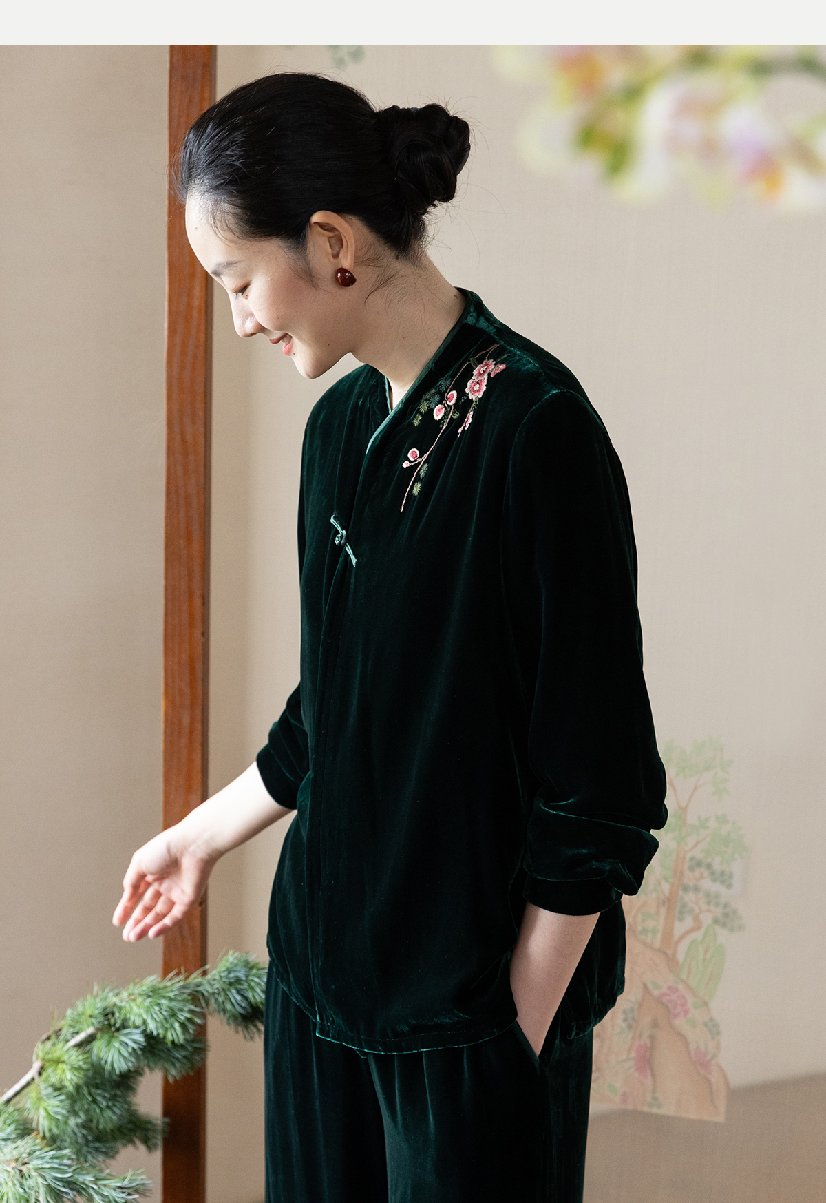 牧衣游原创 丝绒手工刺绣短外套绿色百搭简约复古新中式开衫 奈苼
