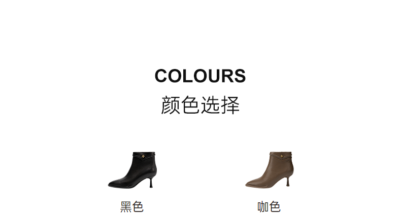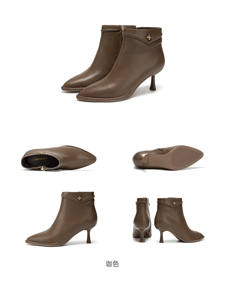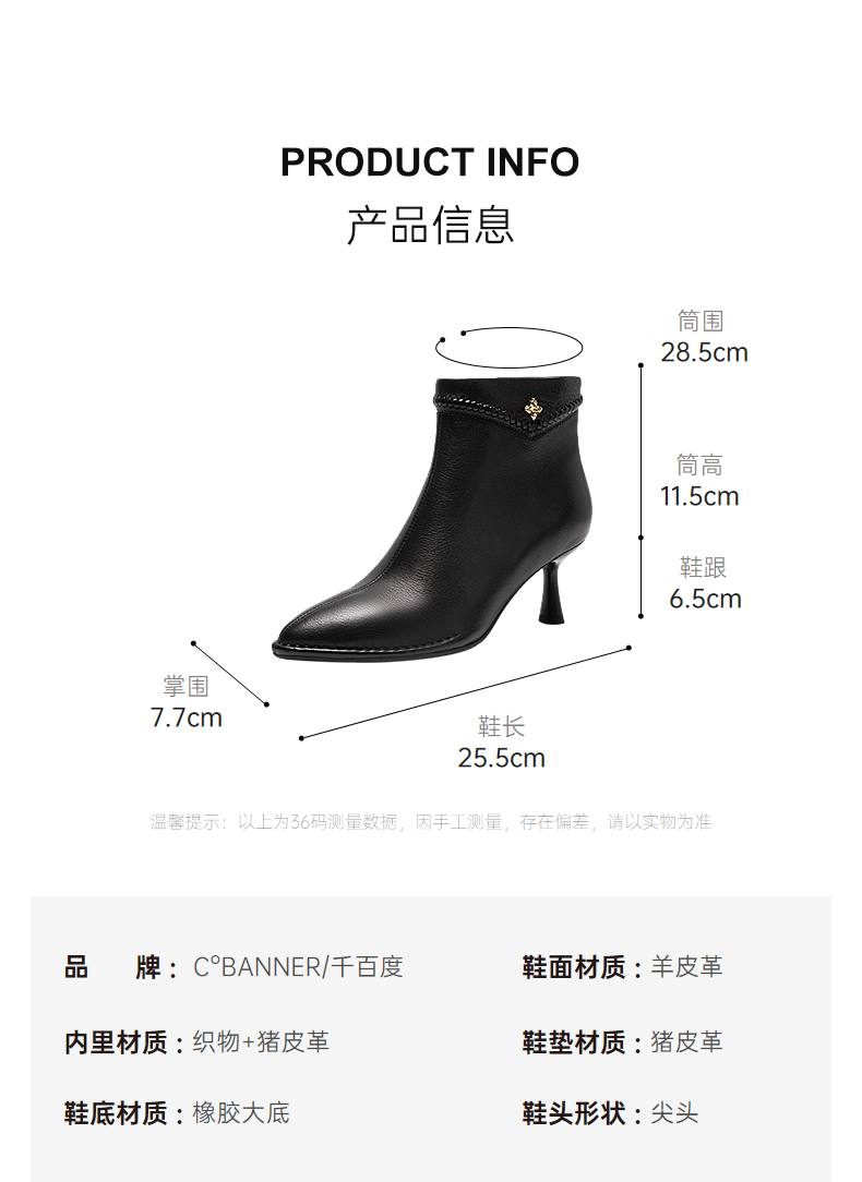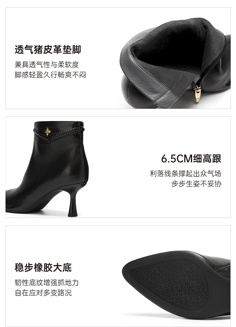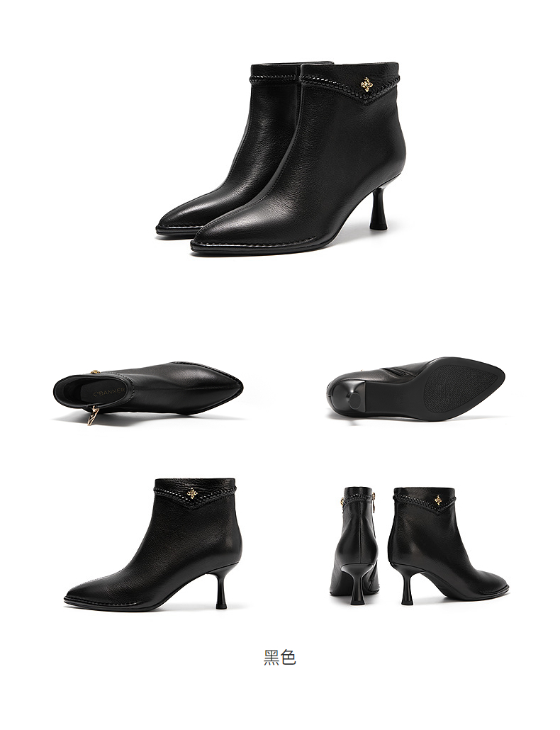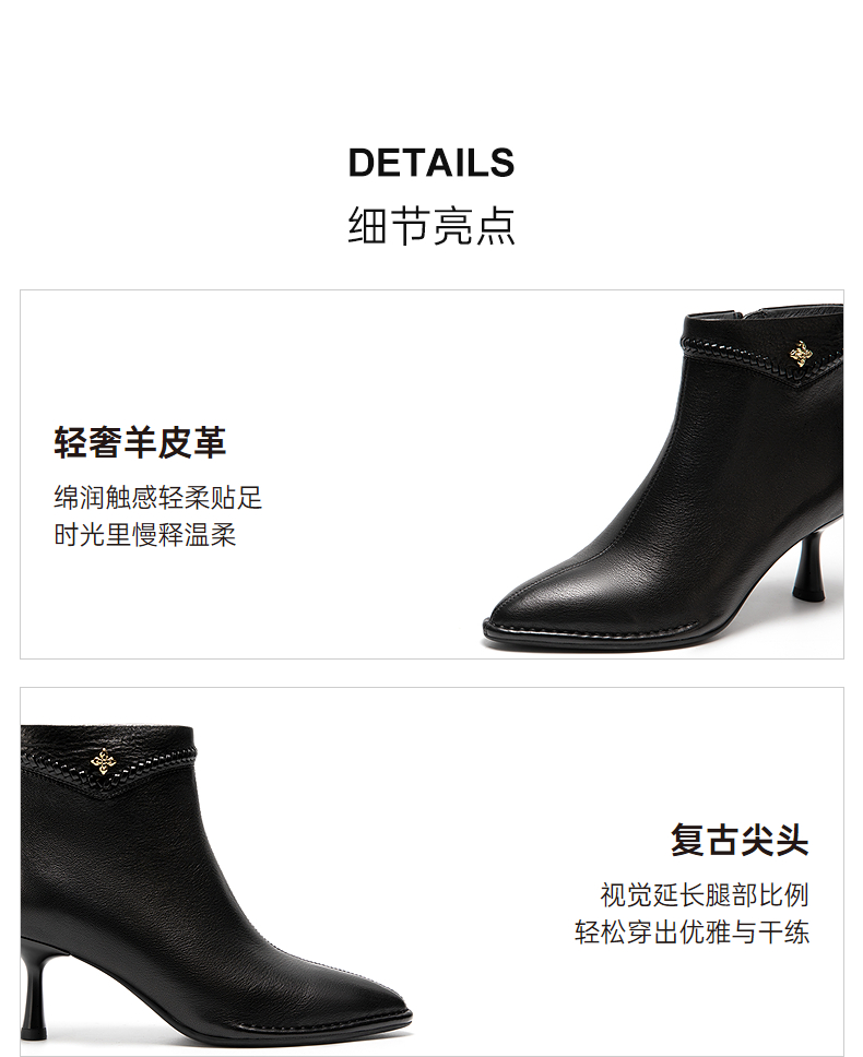 【静音系列】千百度细高跟羊皮靴女尖头时装靴短靴子A25581420