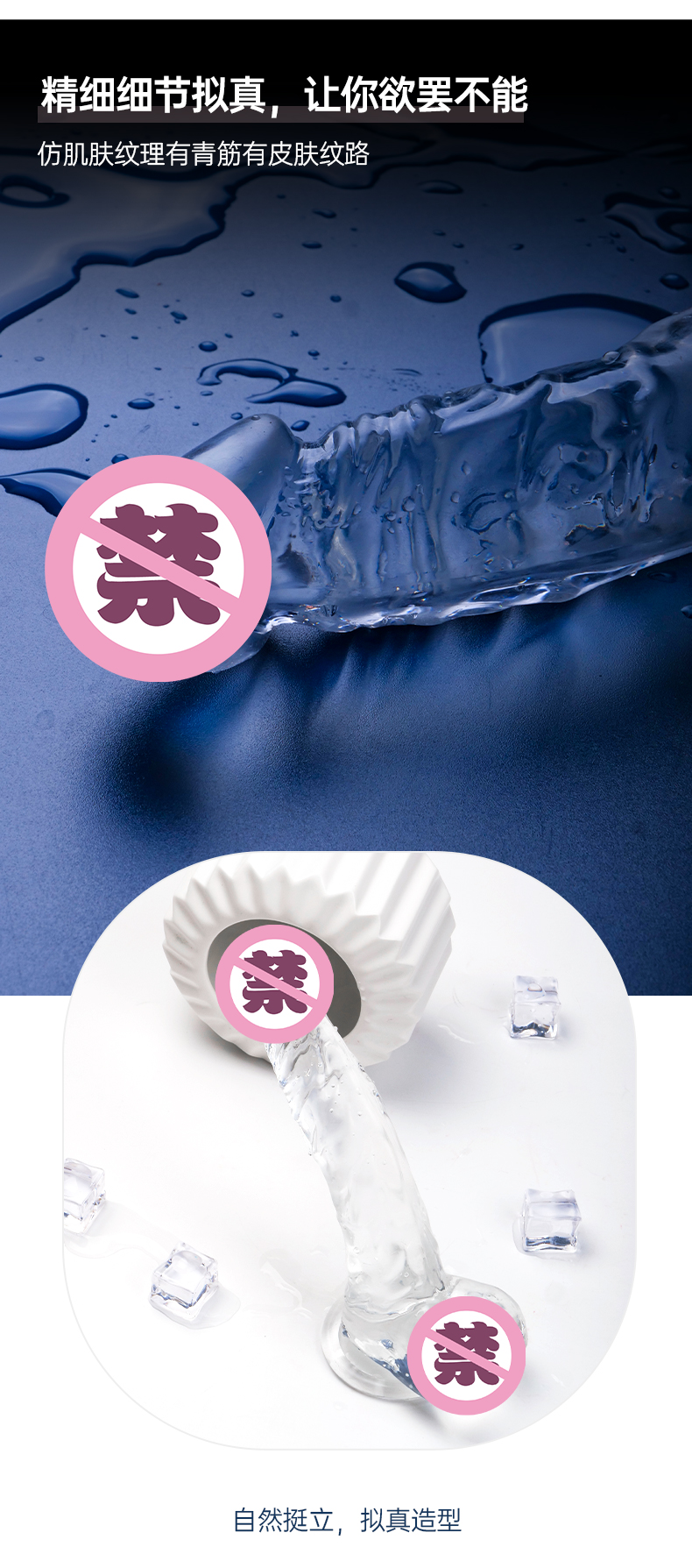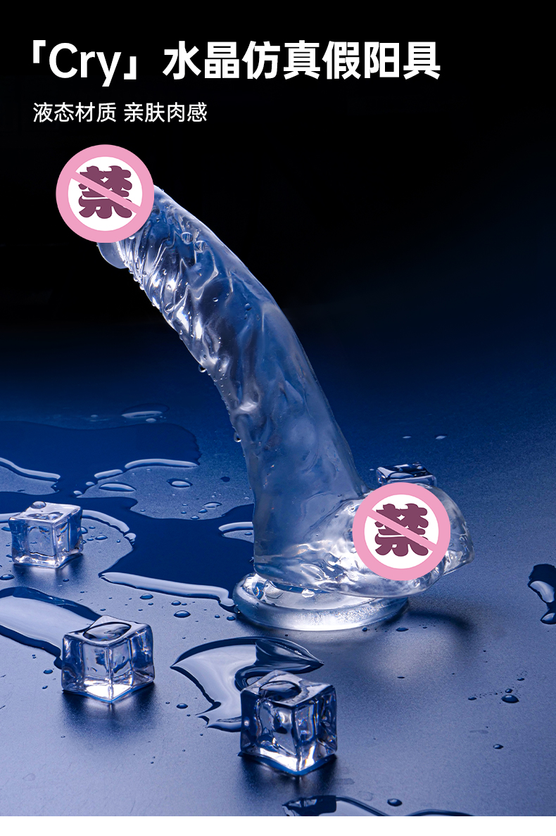 大号JJ水晶仿真假阳具 液态硅胶 亲肤肉感
