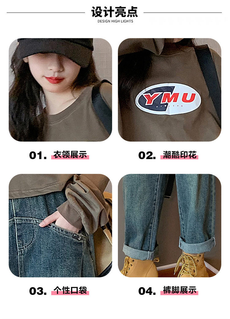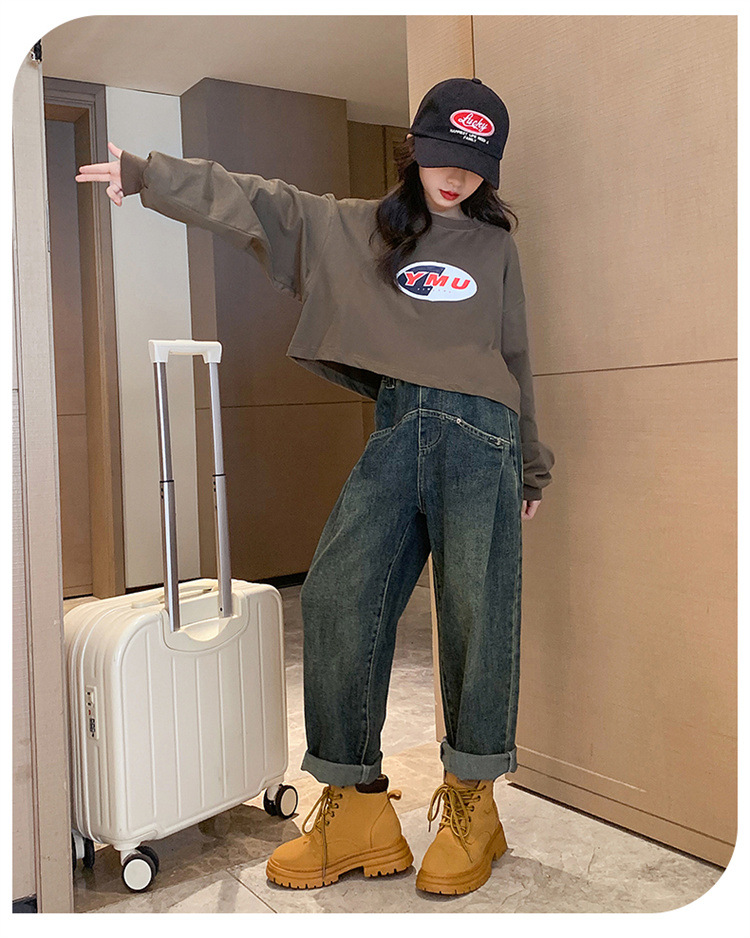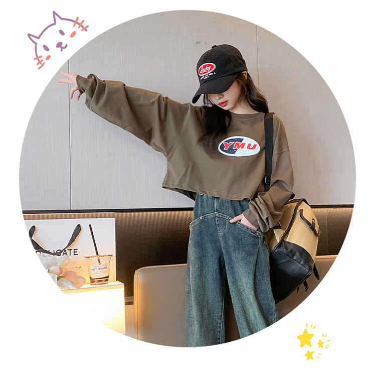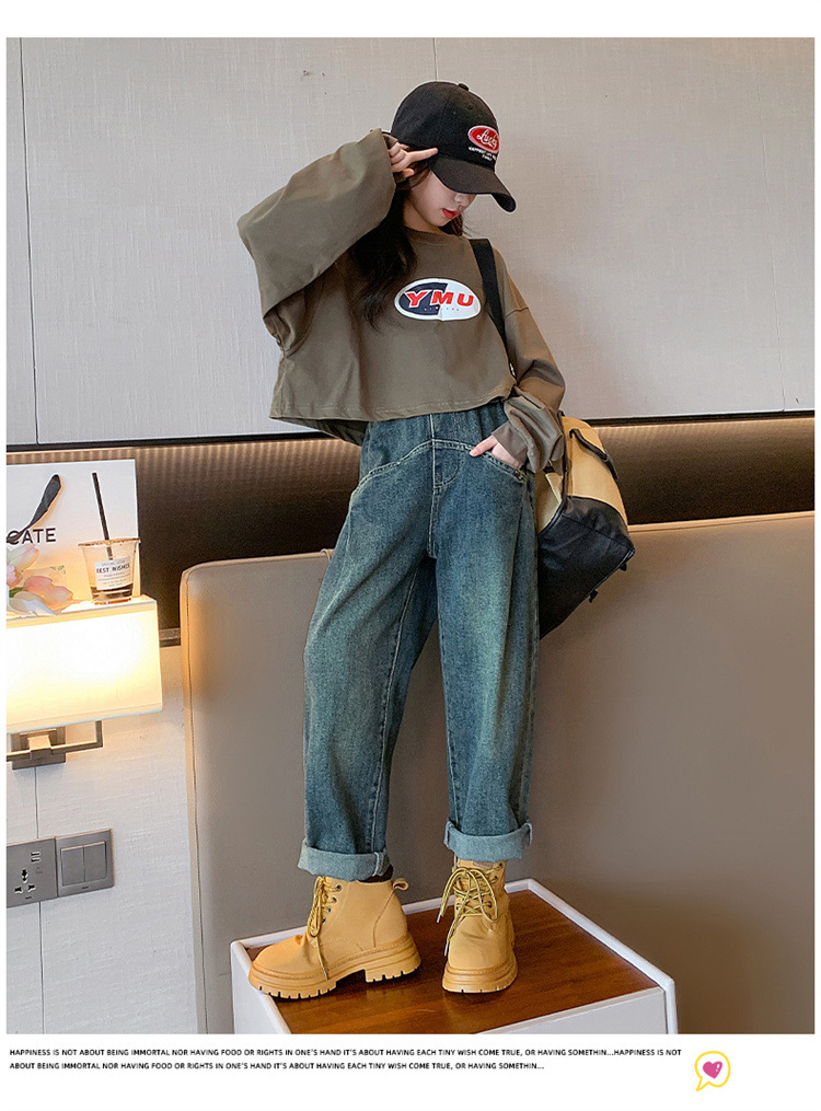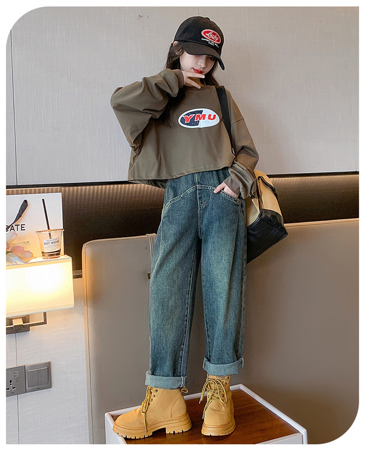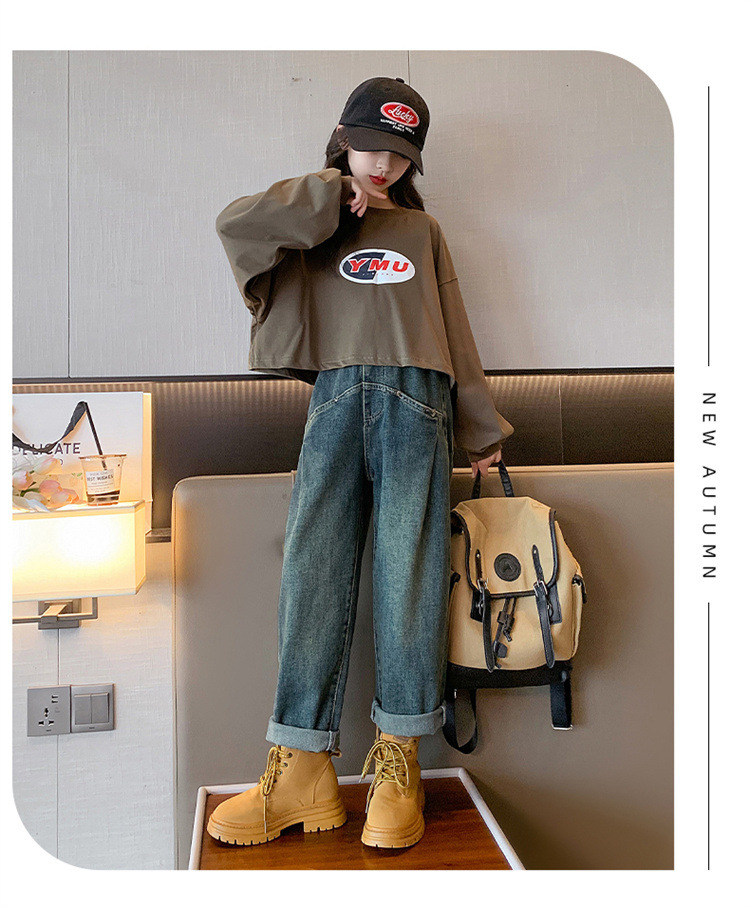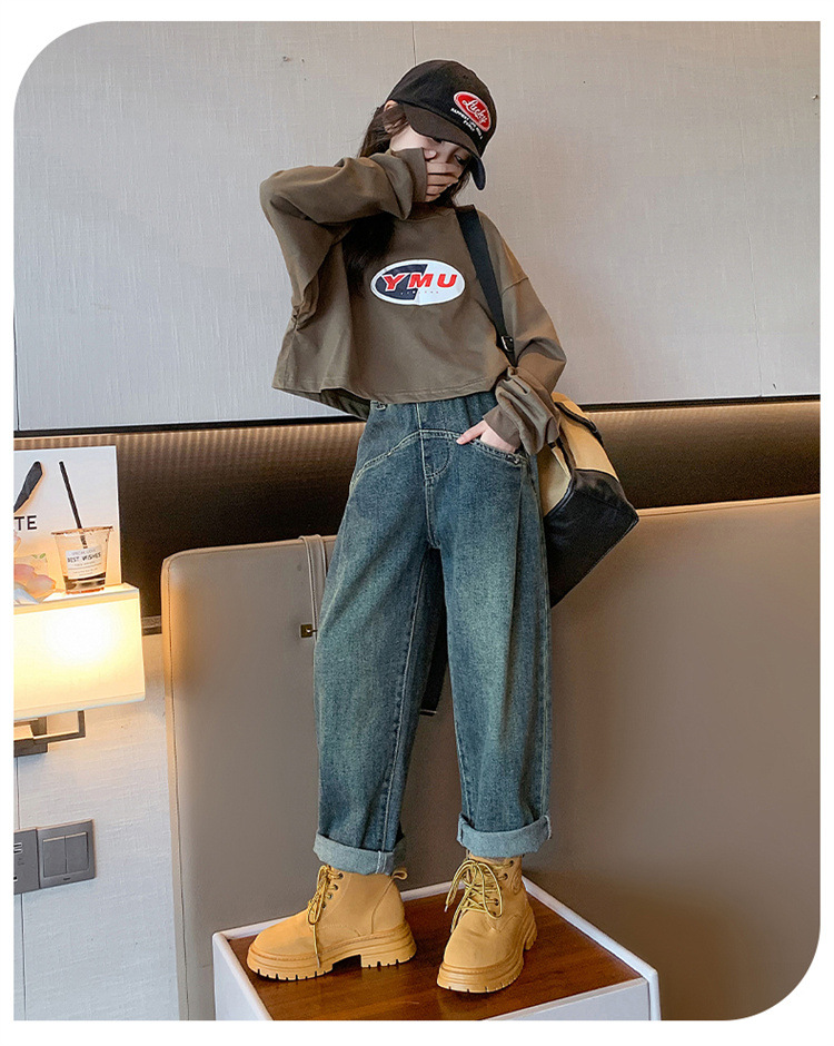 【新款套装,舒适时尚又百搭!】女童时髦洋气秋装短上衣牛仔裤两件套2023新款大童儿童韩范潮套装lmsh