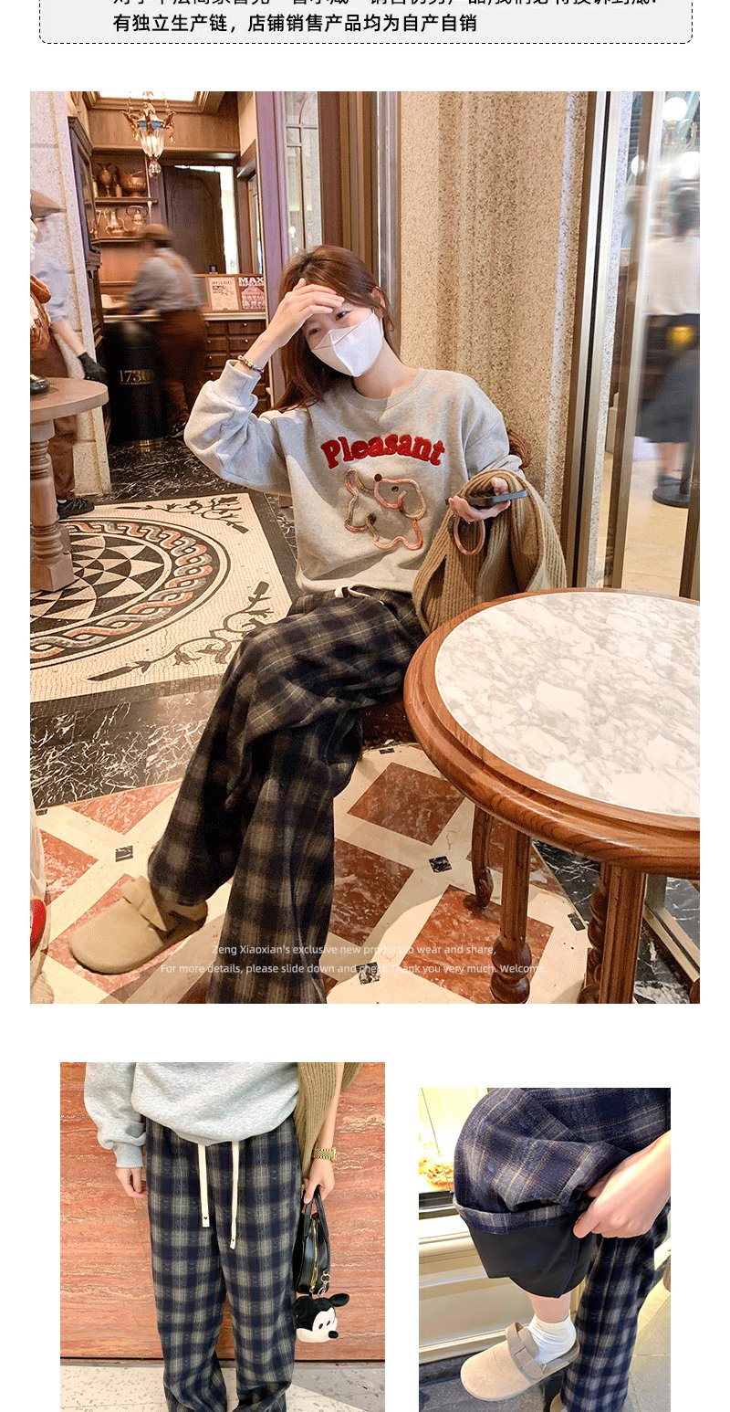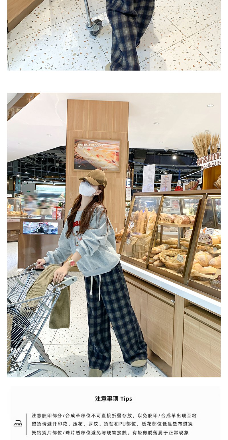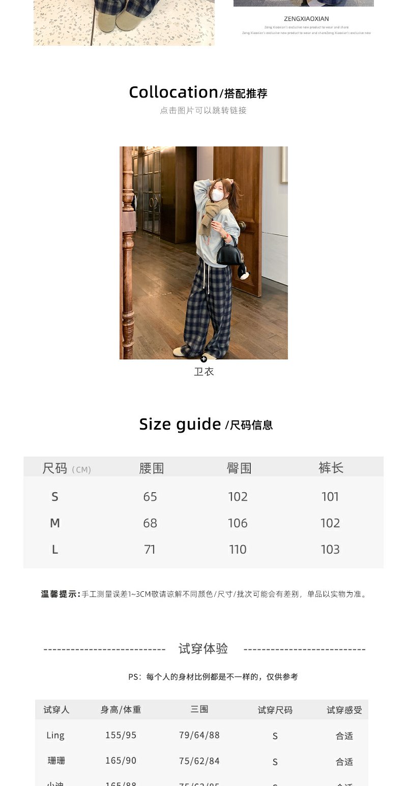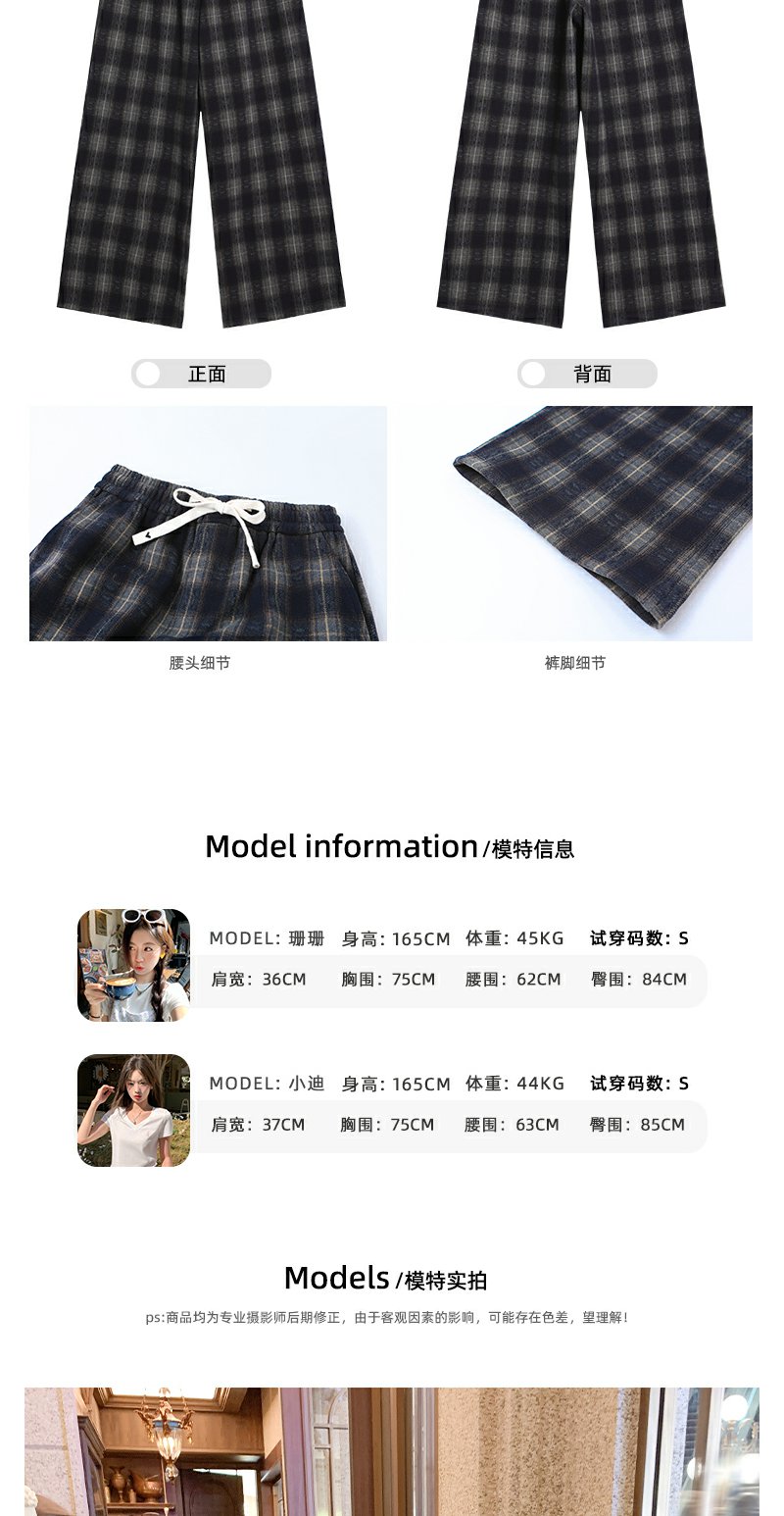 <曾小咸推荐>韩系复古格子阔腿休闲裤