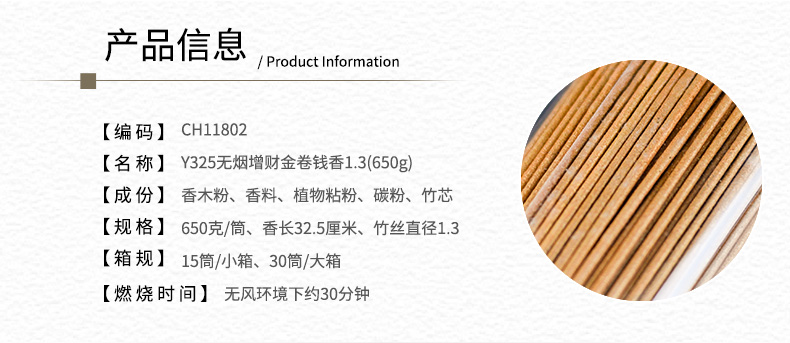Y325无烟增财金卷钱香1.3(650g)