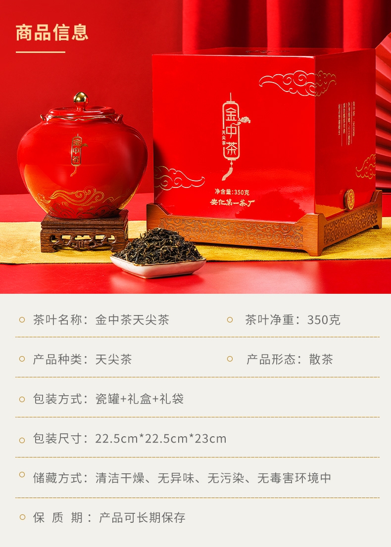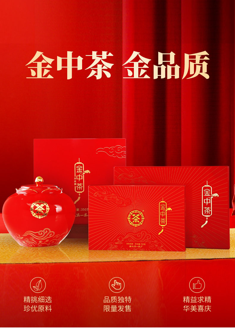 中粮-中茶 安化黑茶 天尖茶中茶 金中茶 高端礼盒装350克/盒