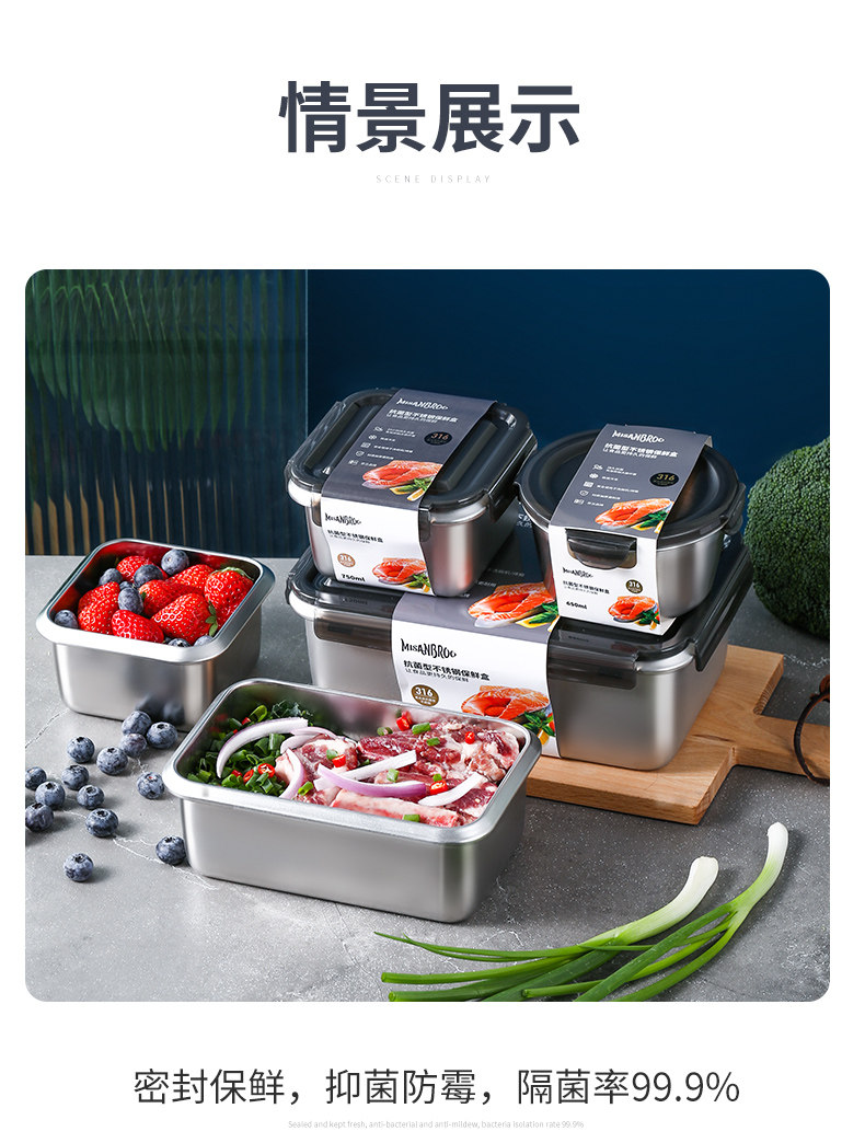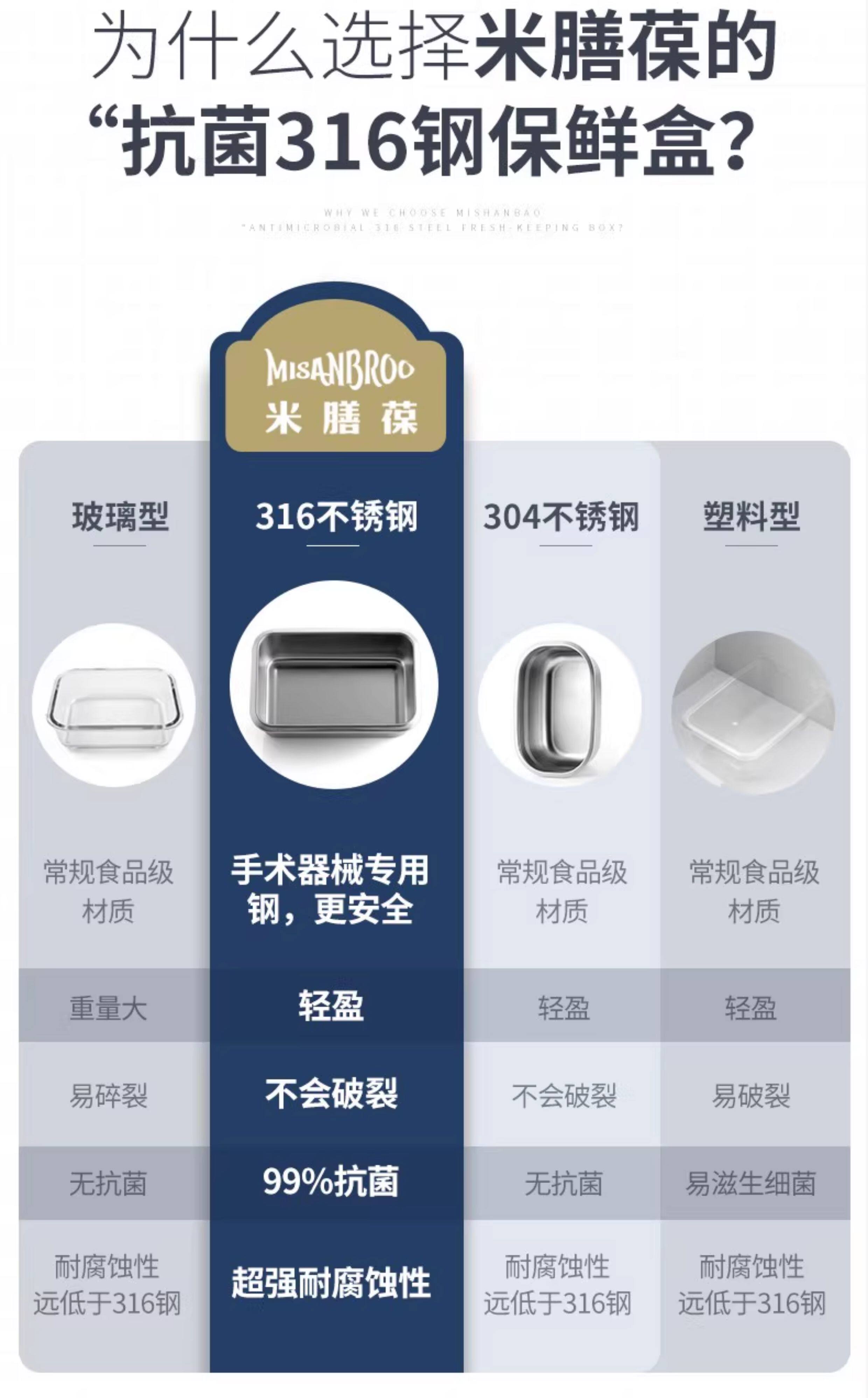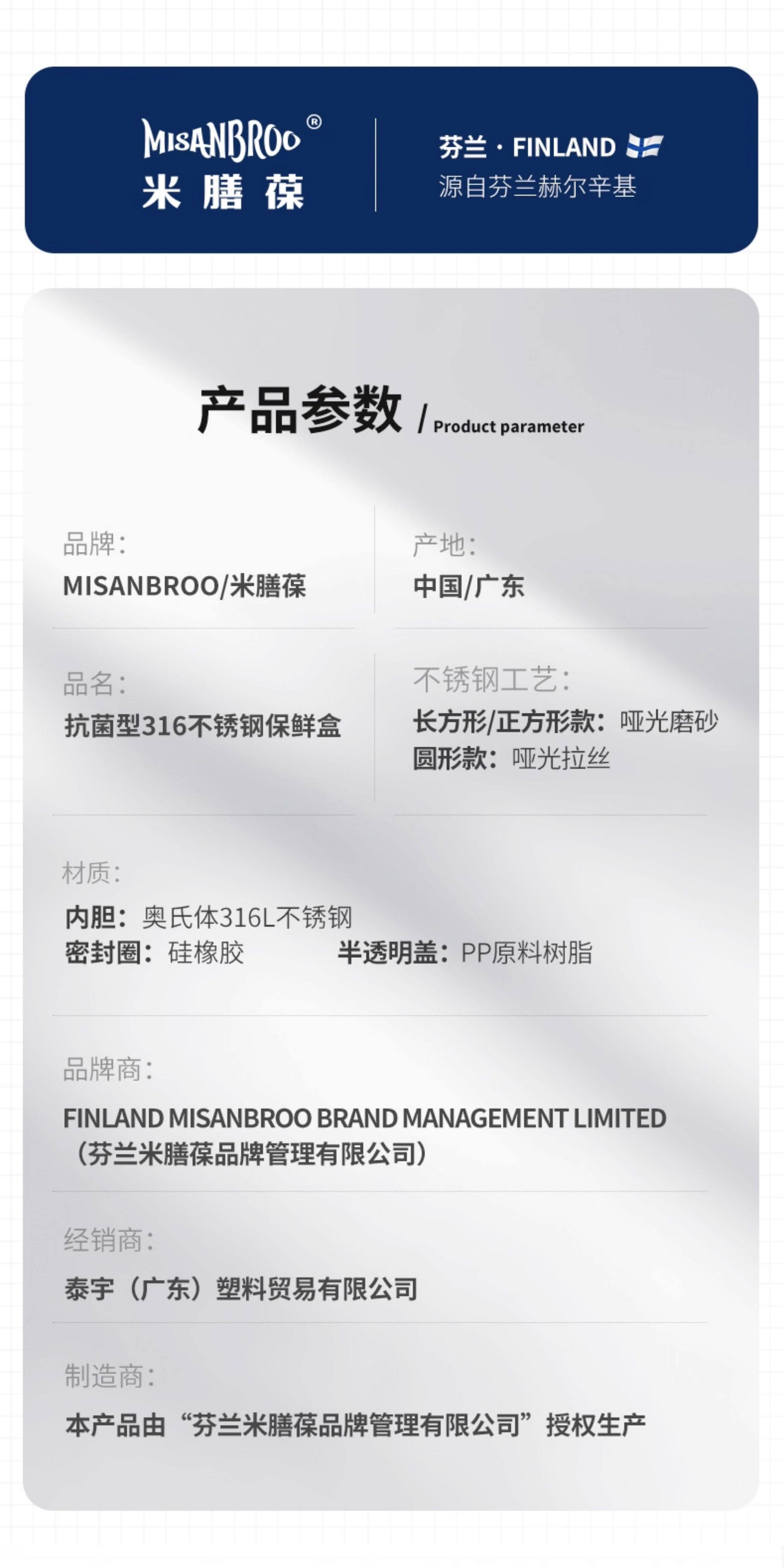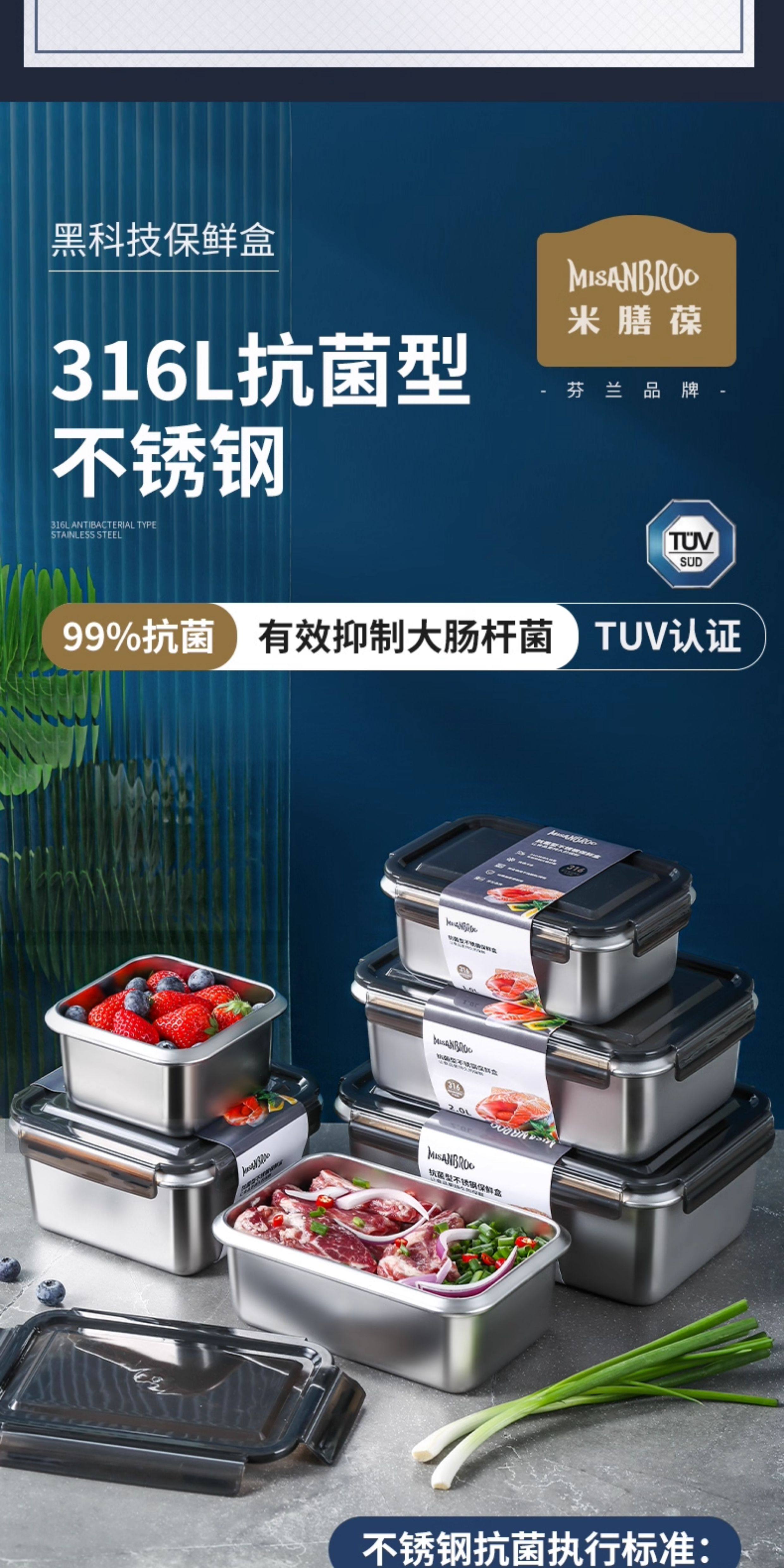芬兰MISANBROO米膳葆316不锈钢长方形食品级保鲜盒