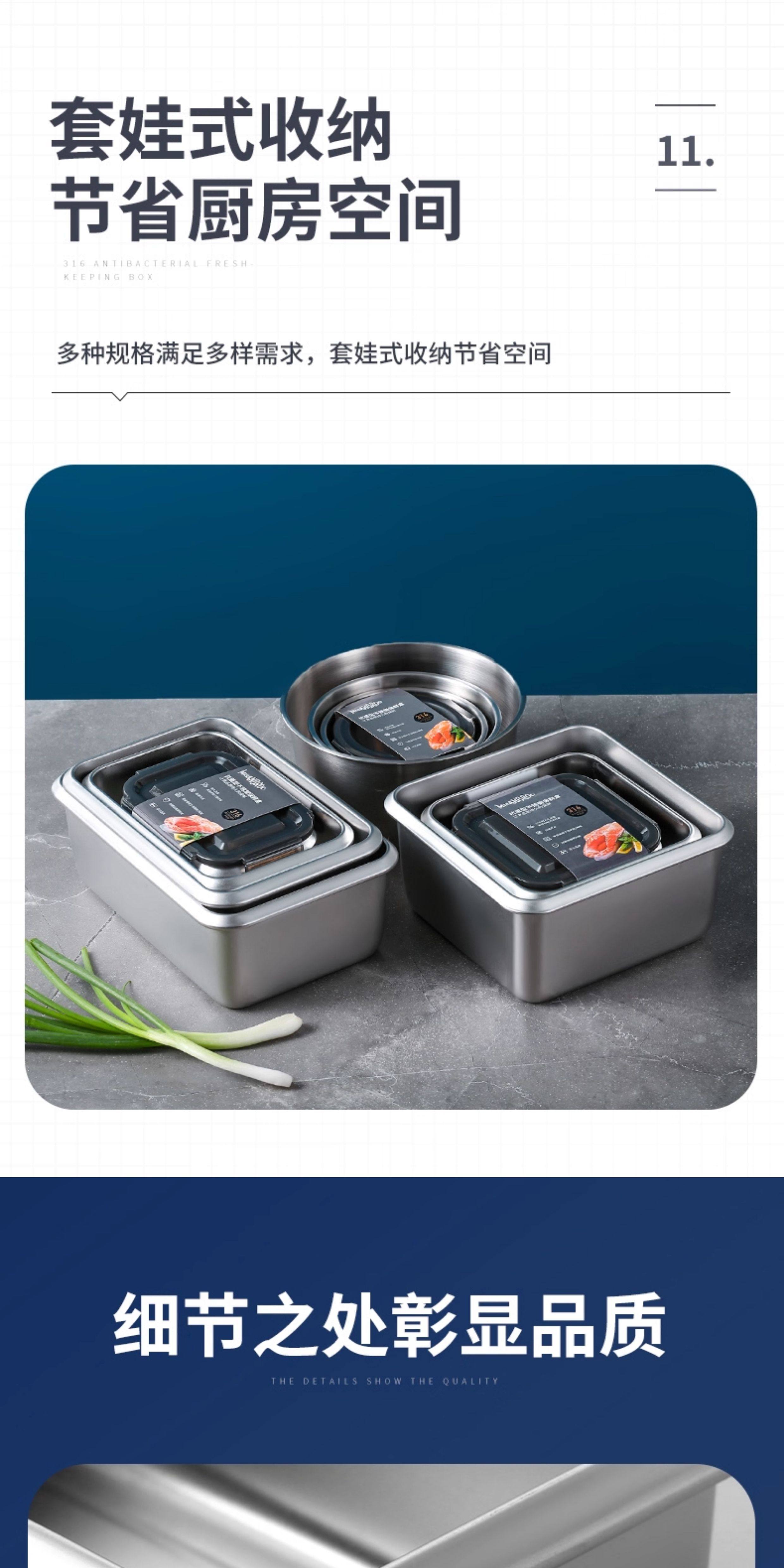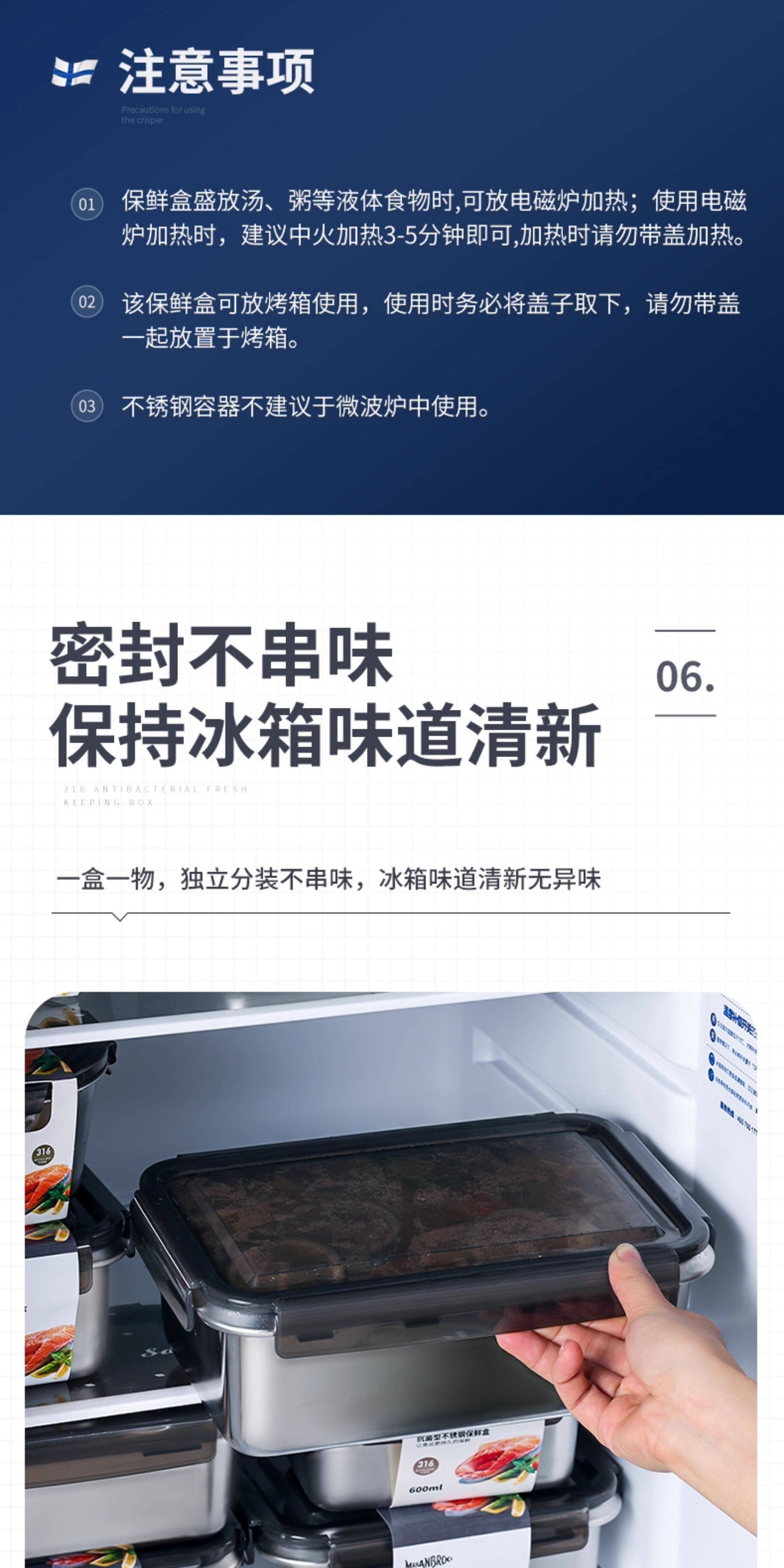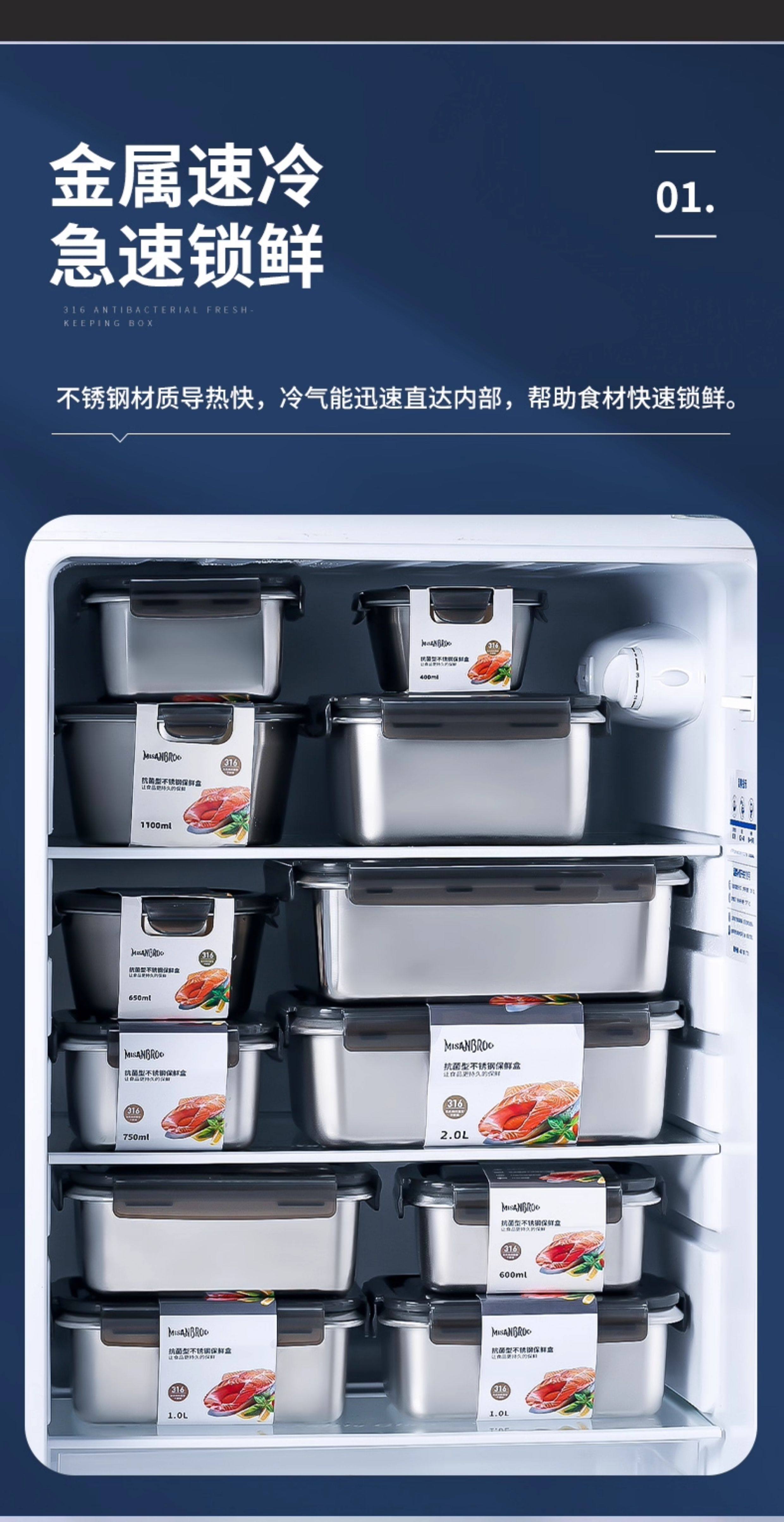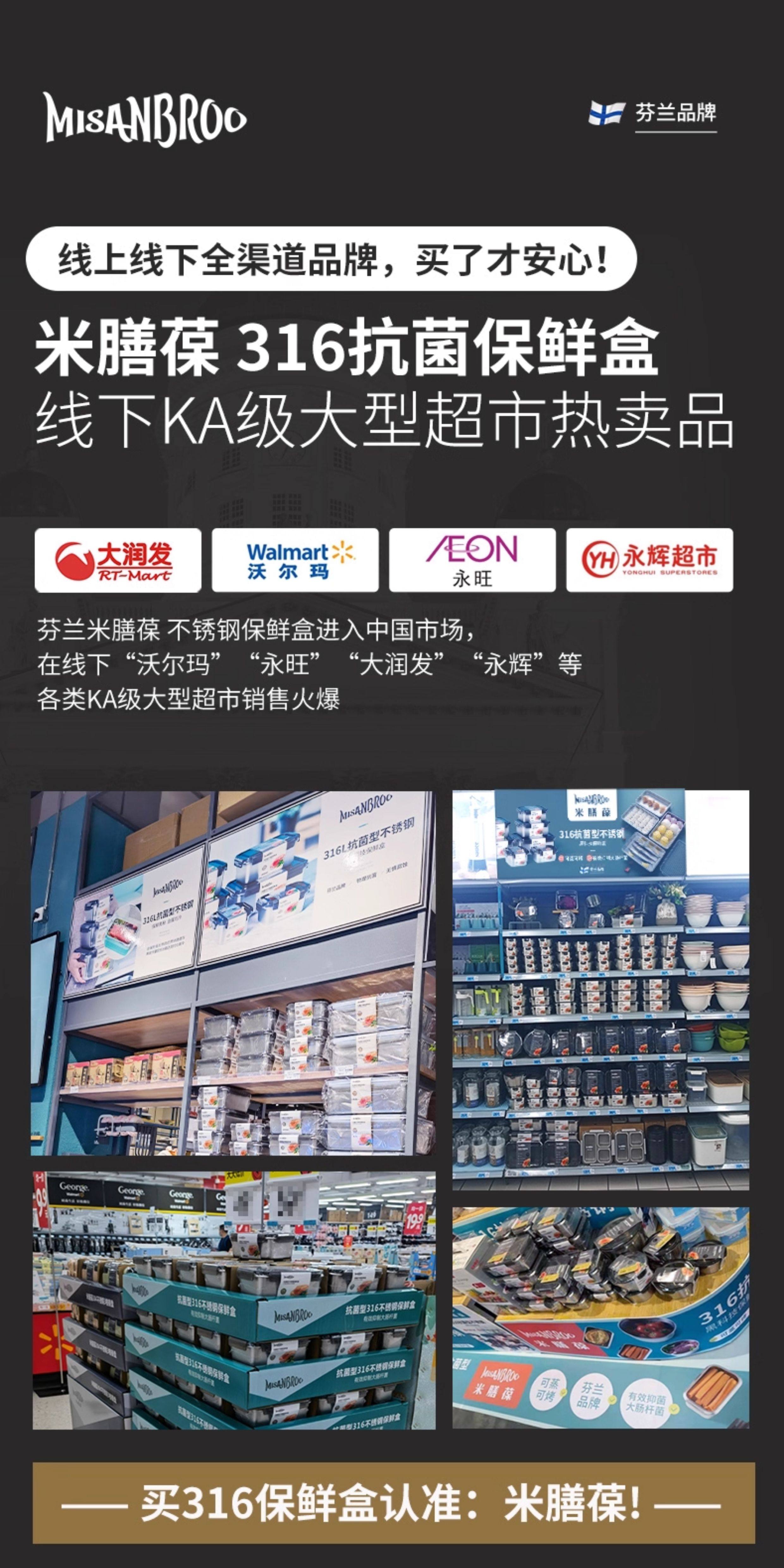 芬兰MISANBROO米膳葆316不锈钢长方形食品级保鲜盒