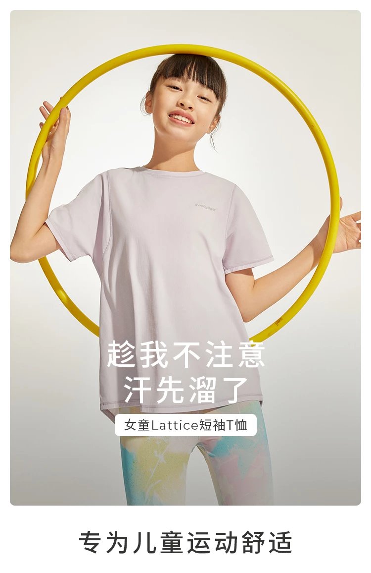 moodytiger24年夏新女童Lattice短袖夏季休闲圆领透气宽松T恤【H】