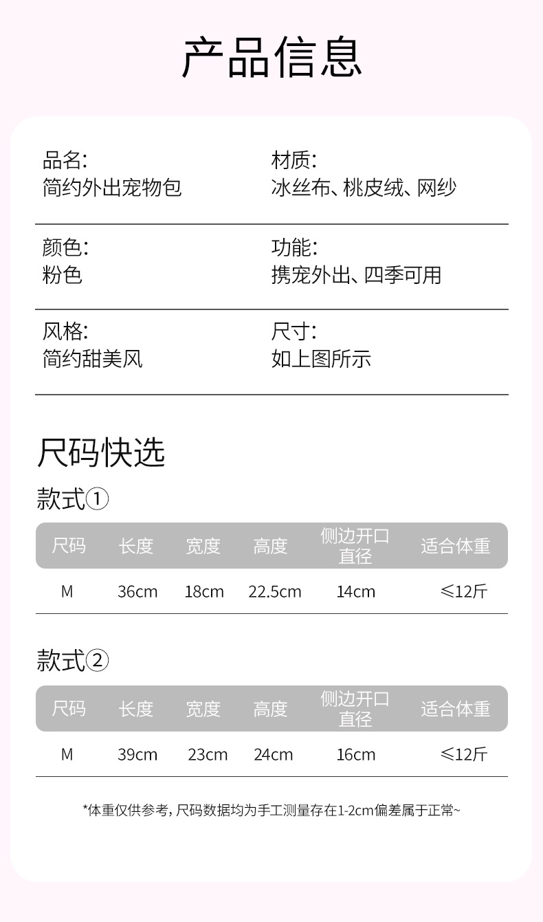 宠物外出单肩包夏季手提式猫包甜美可爱风户外便携式透气宠物挎包