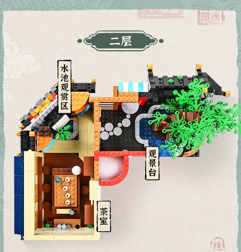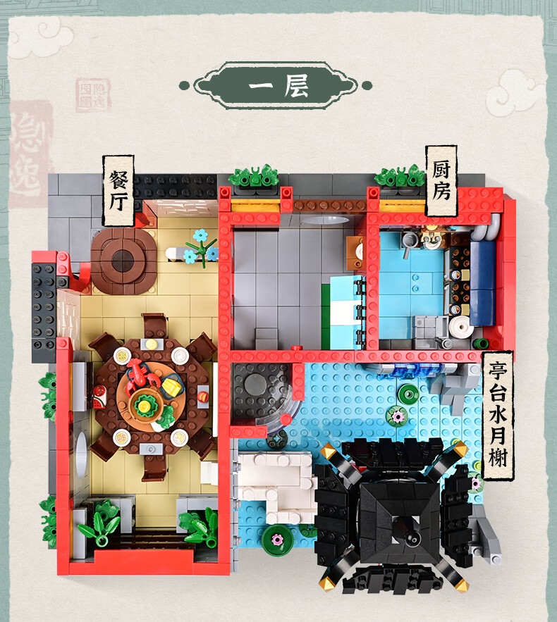 T 启蒙积木 k18003 新中式街景-隐逸园