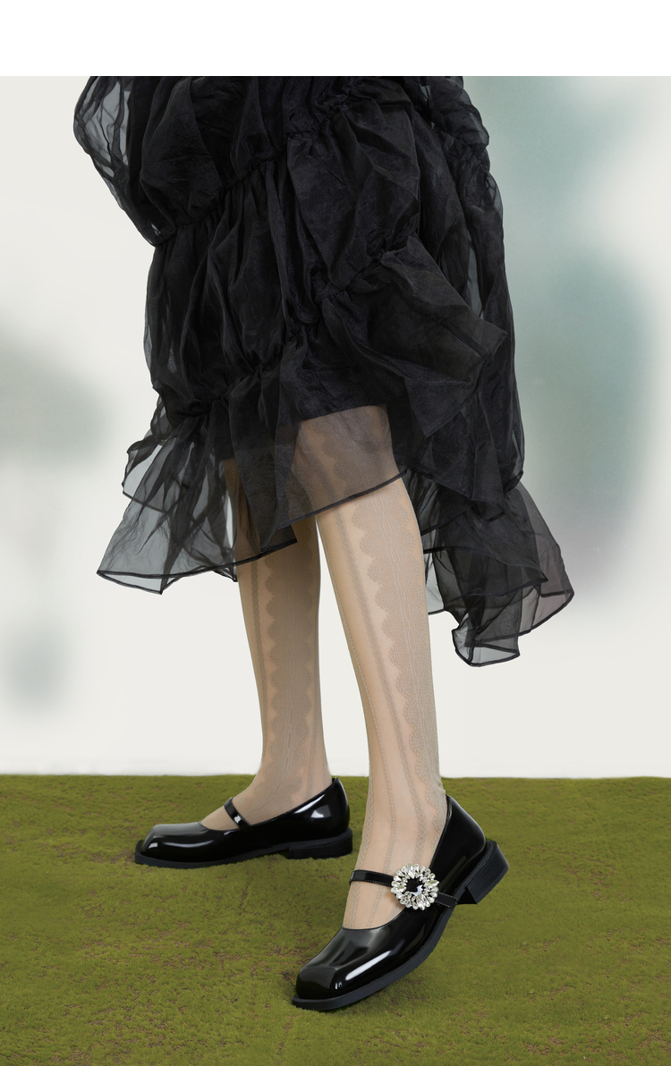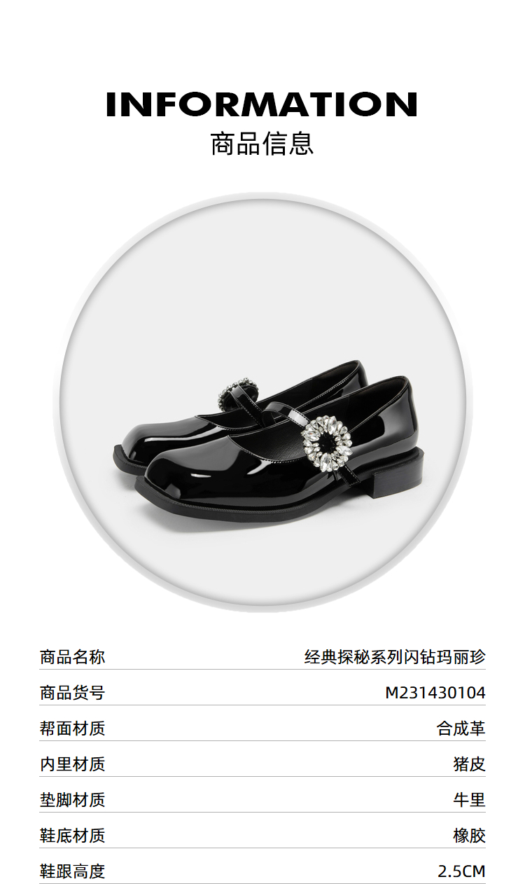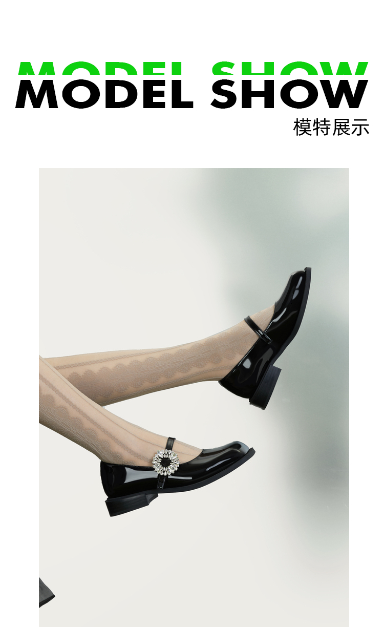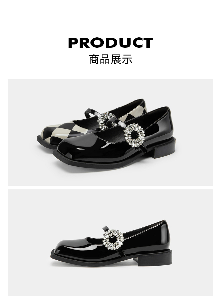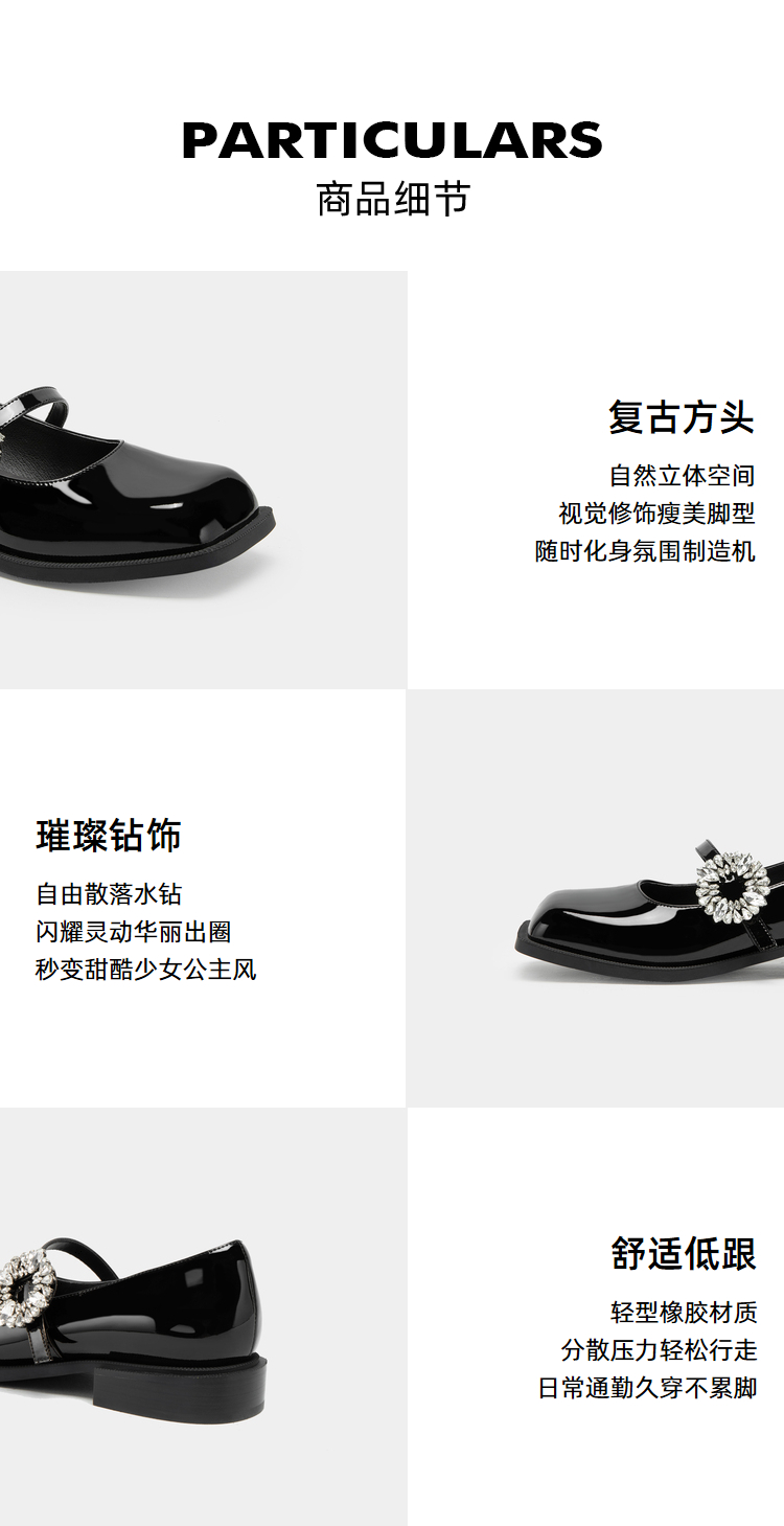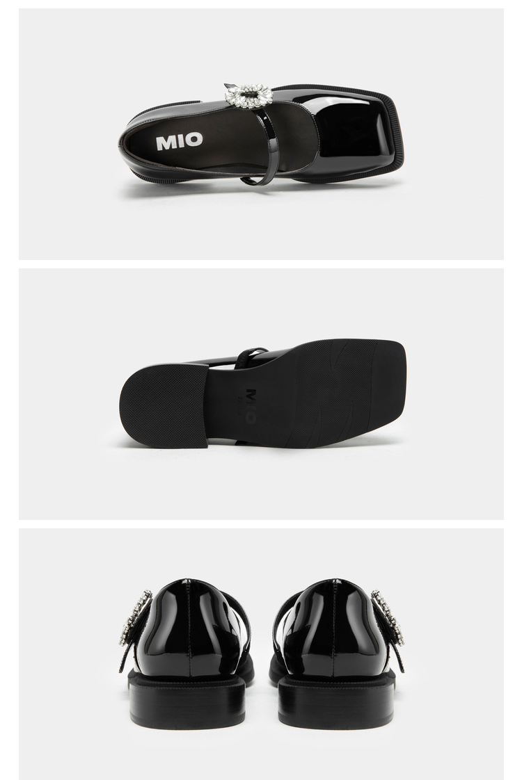 MIO米奥春季英伦风舒适低跟浅口单鞋花朵钻饰甜酷复古玛丽珍女鞋M231430104