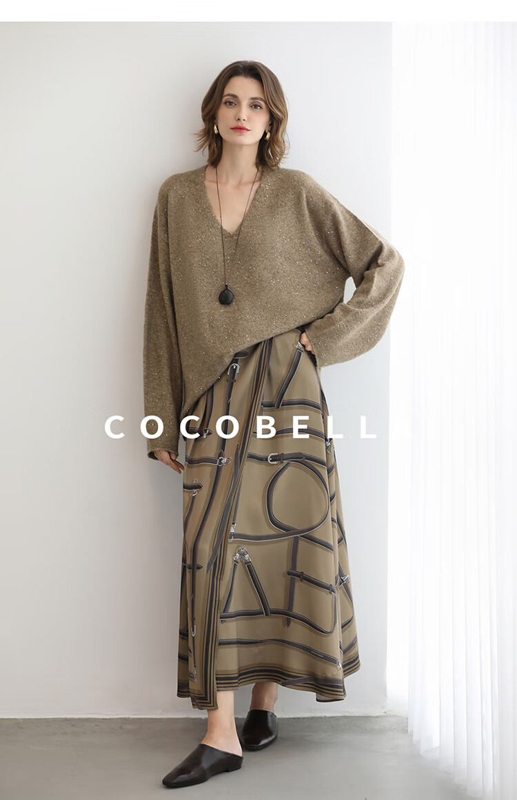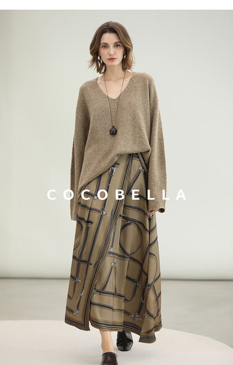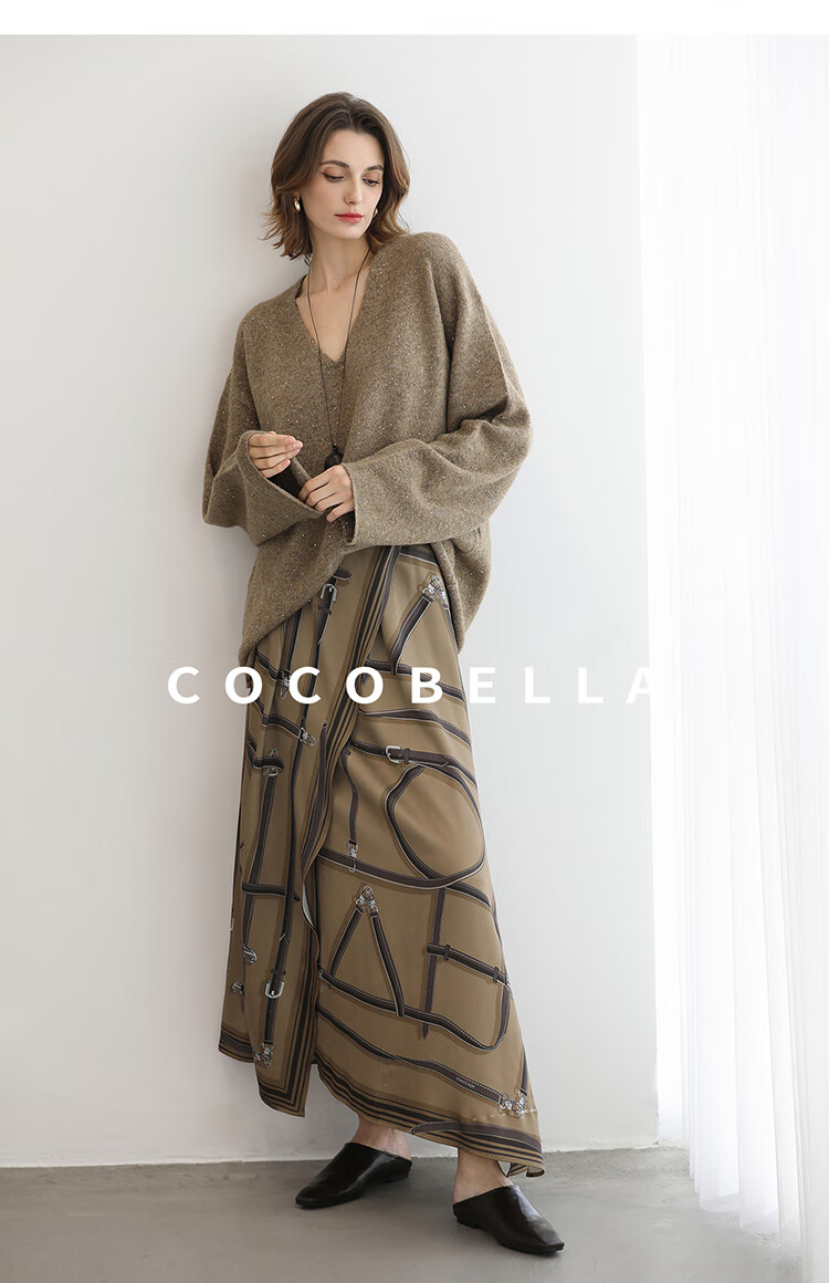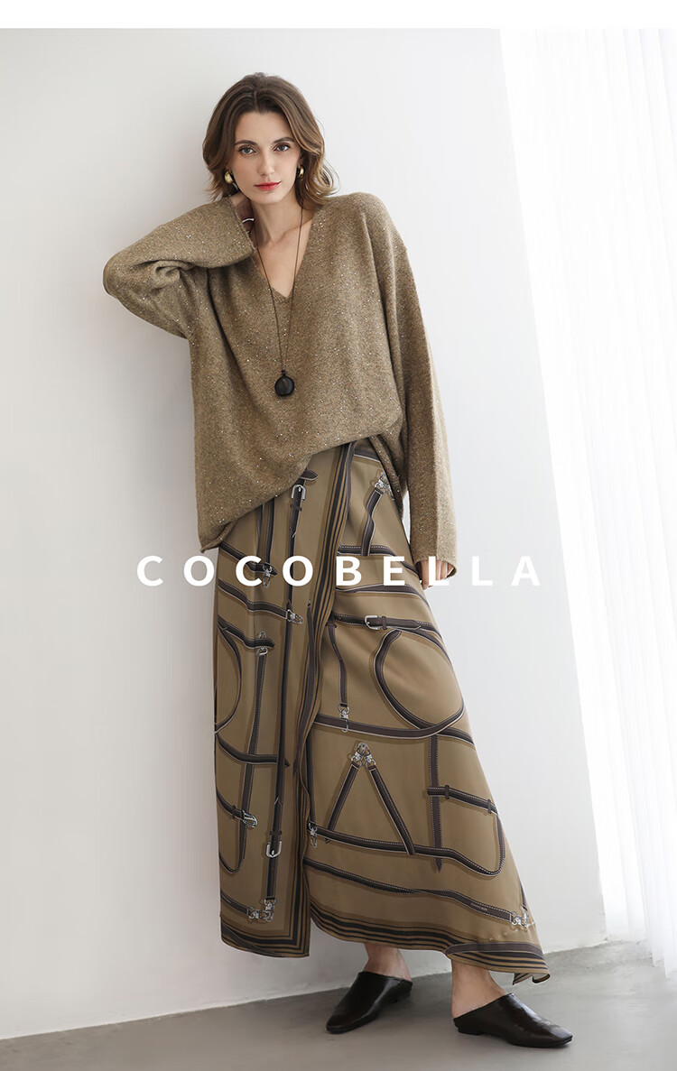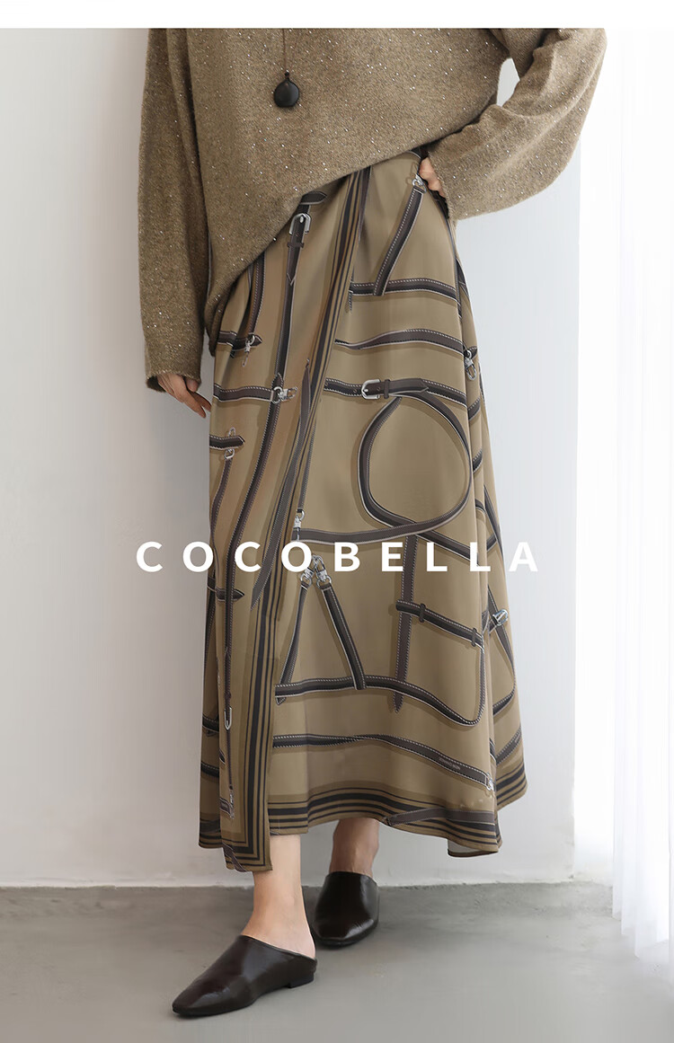 COCOBELLA定位剪裁重磅缎面静奢半身裙设计感围裹长裙HS3112