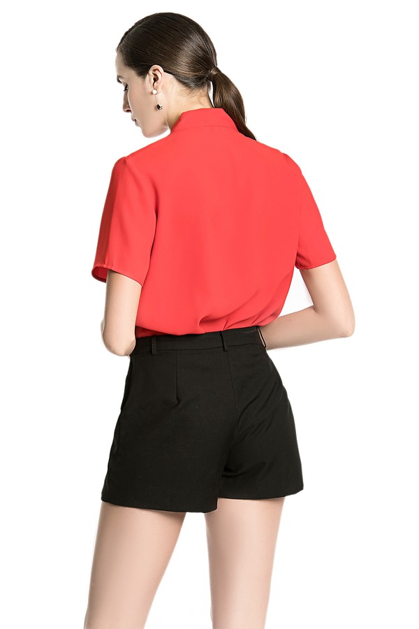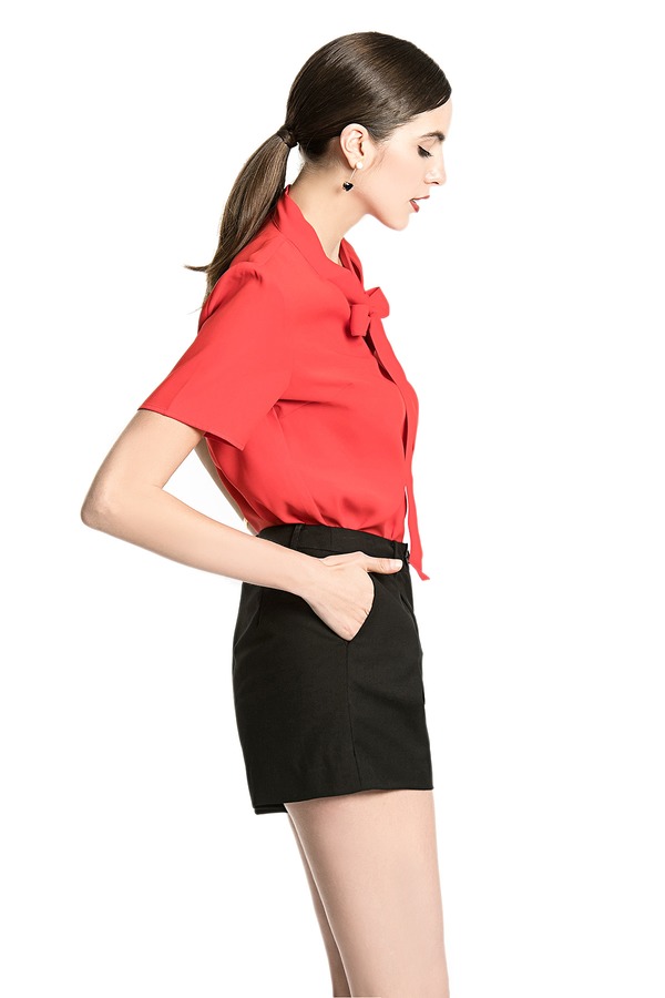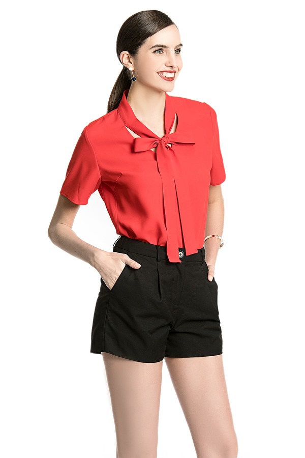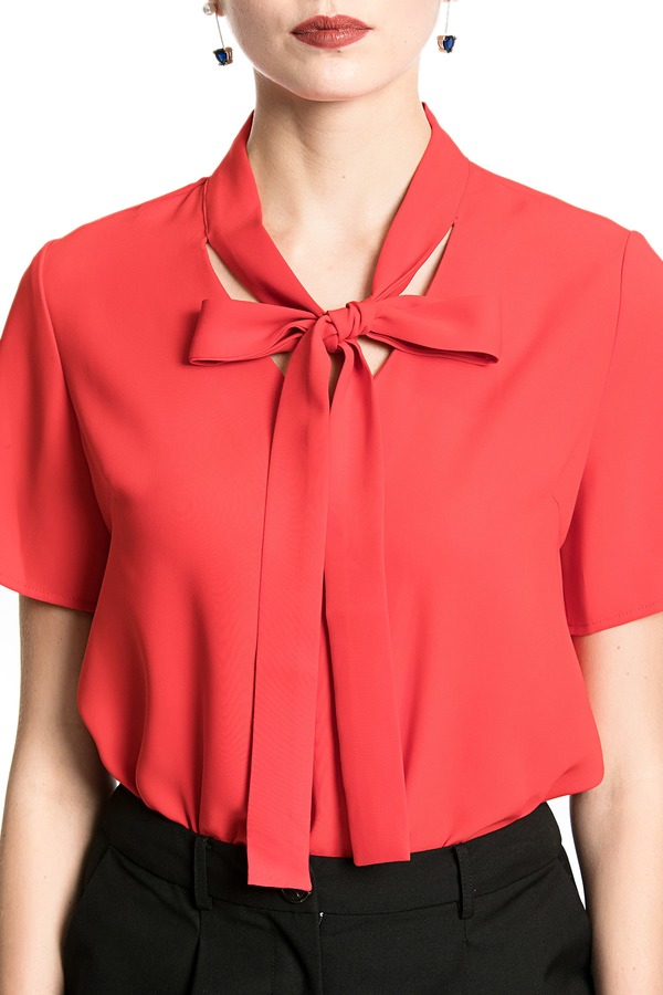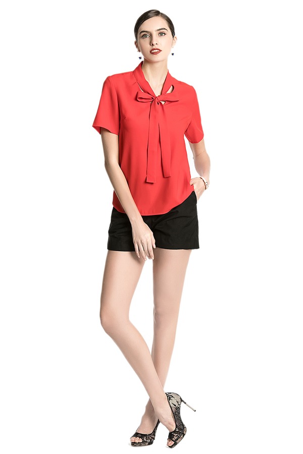EMC亿美丞 红色系带雪纺上衣 1682