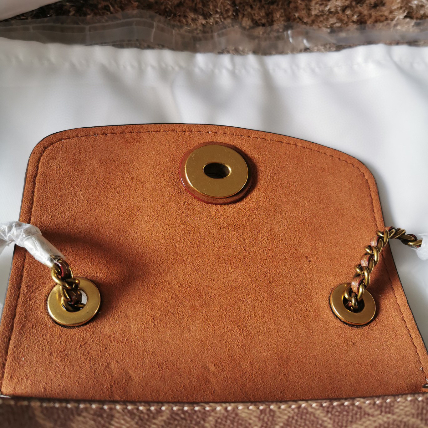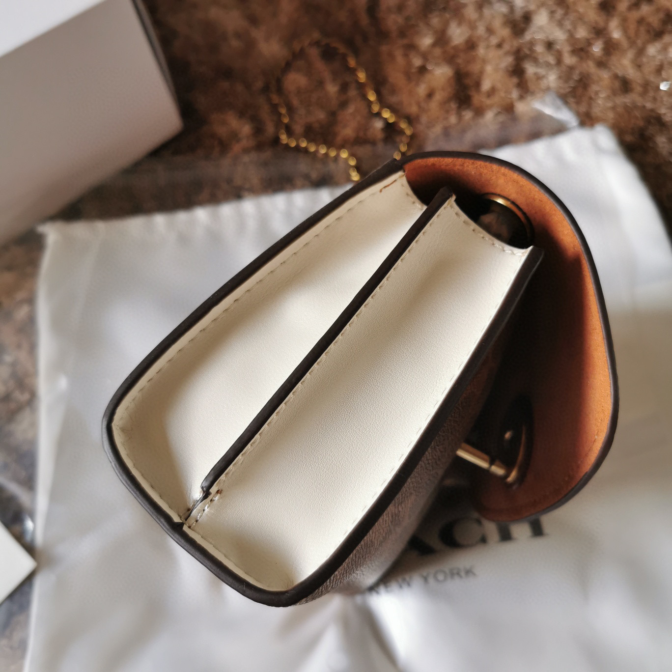 蔻驰的山茶花列系一直么这火😍肩带是皮链拼条的加更洋气时髦 手可提以变长成肩带 外部开口放袋 平喜时欢斜挎 单肩背的候时把肩带上收去就以可了~