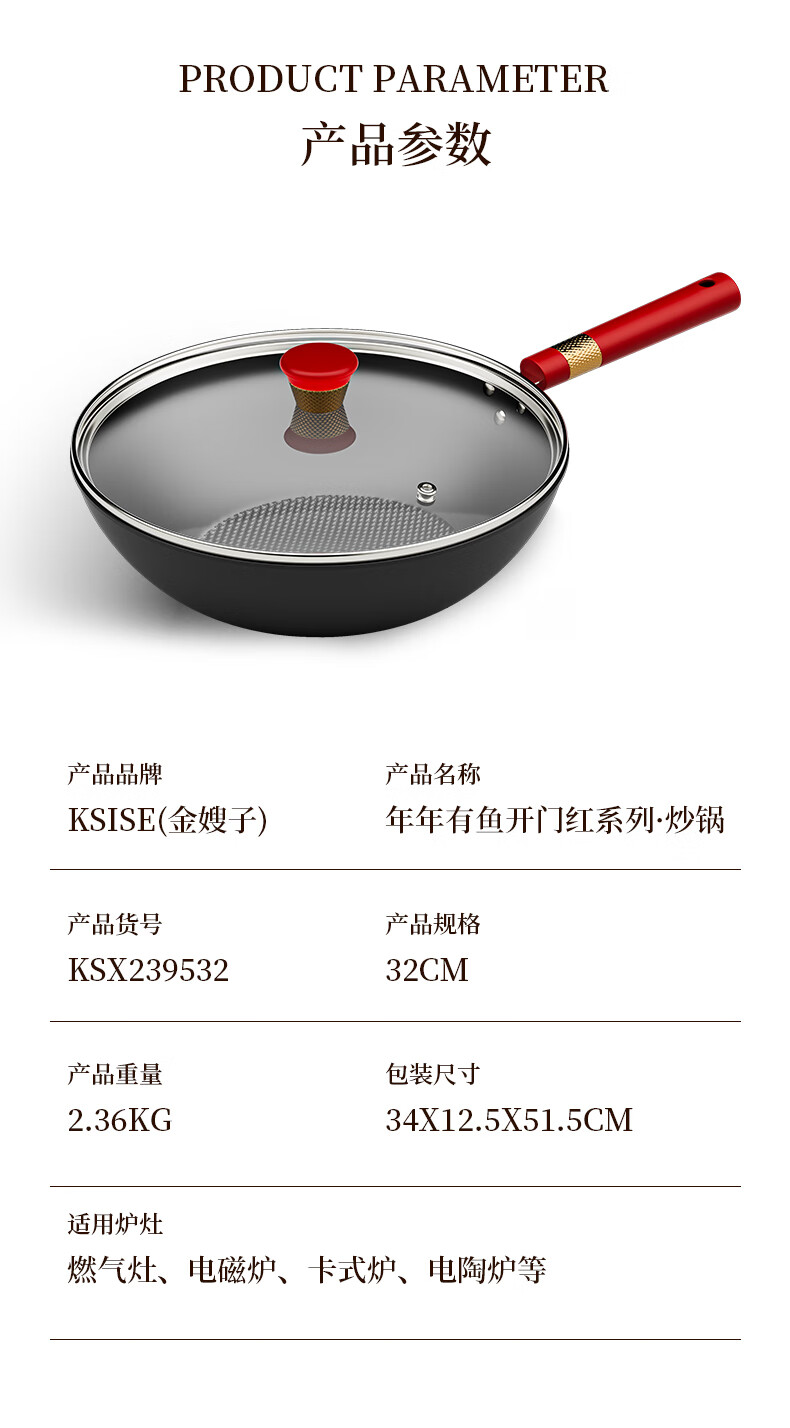 金嫂子KSISE年年有鱼开门红炒锅32cm