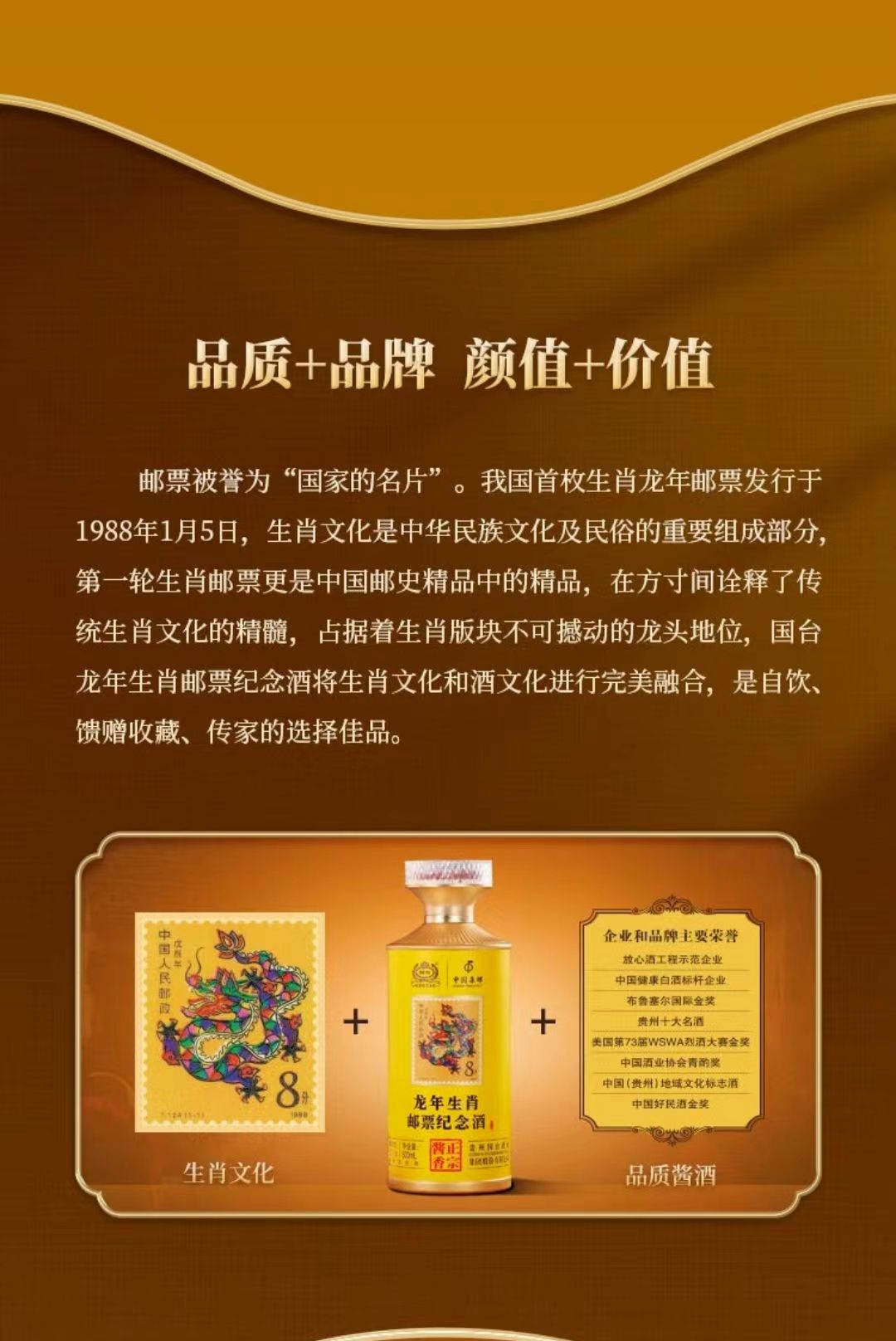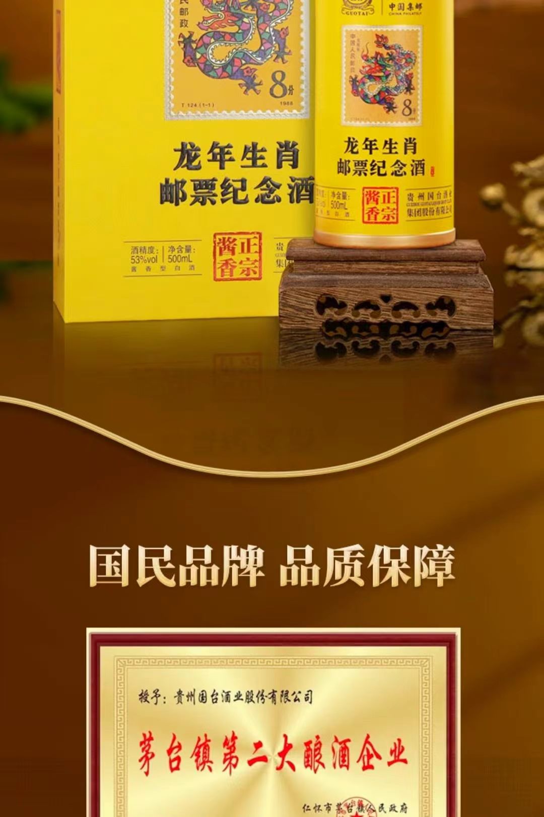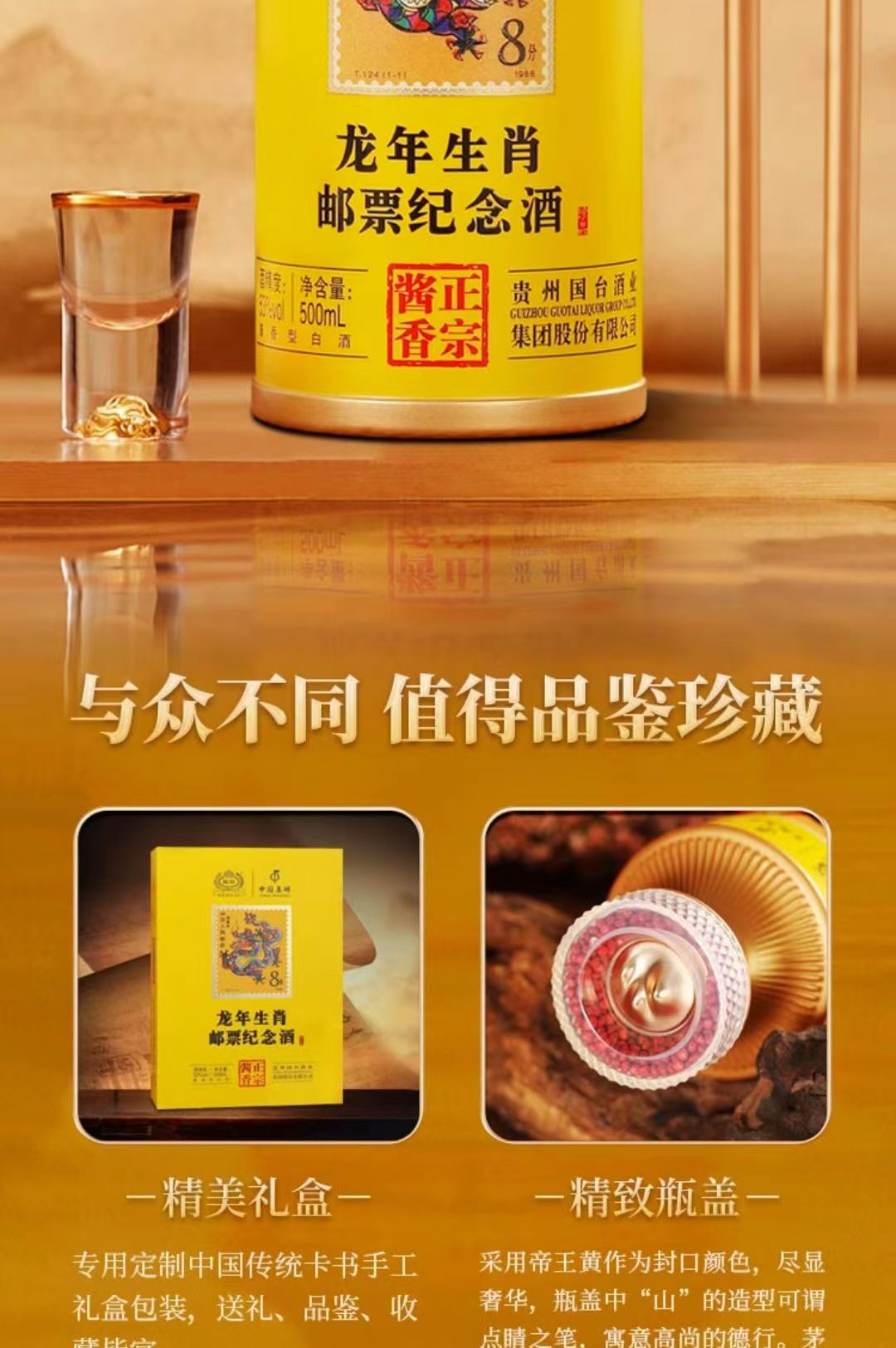 【限量发售 邮票生肖纪念酒】国台·龙年生肖邮票收藏纪念酒 酱香型白酒 53%vol