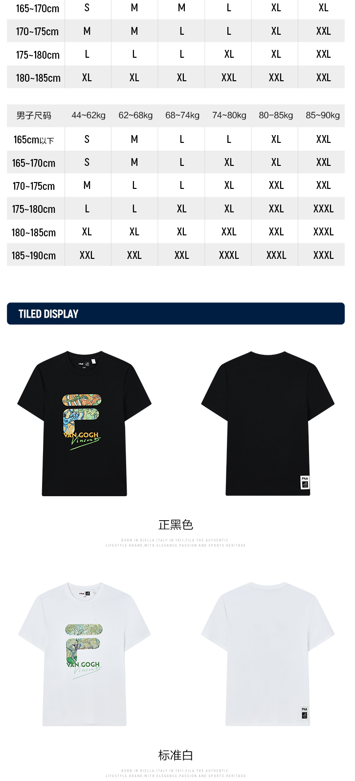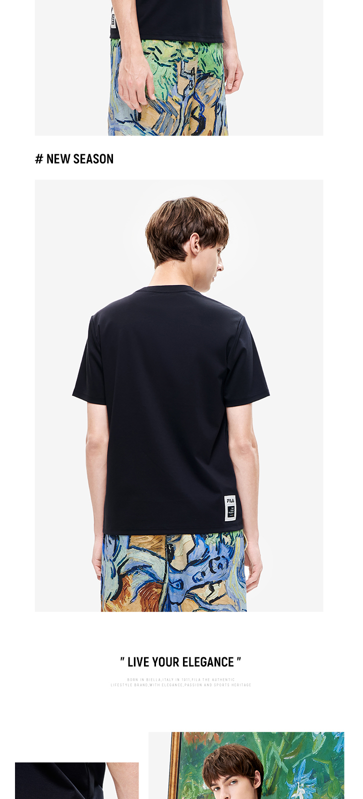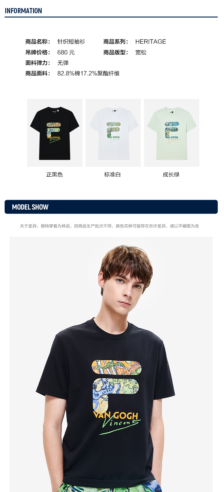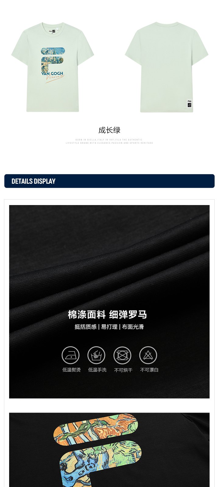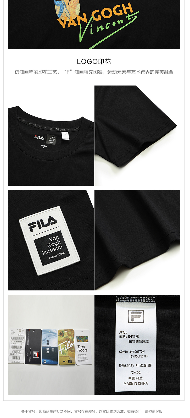 FILAx 梵高博物馆男士短袖T恤2022年夏季新款运动上衣F11M228111F