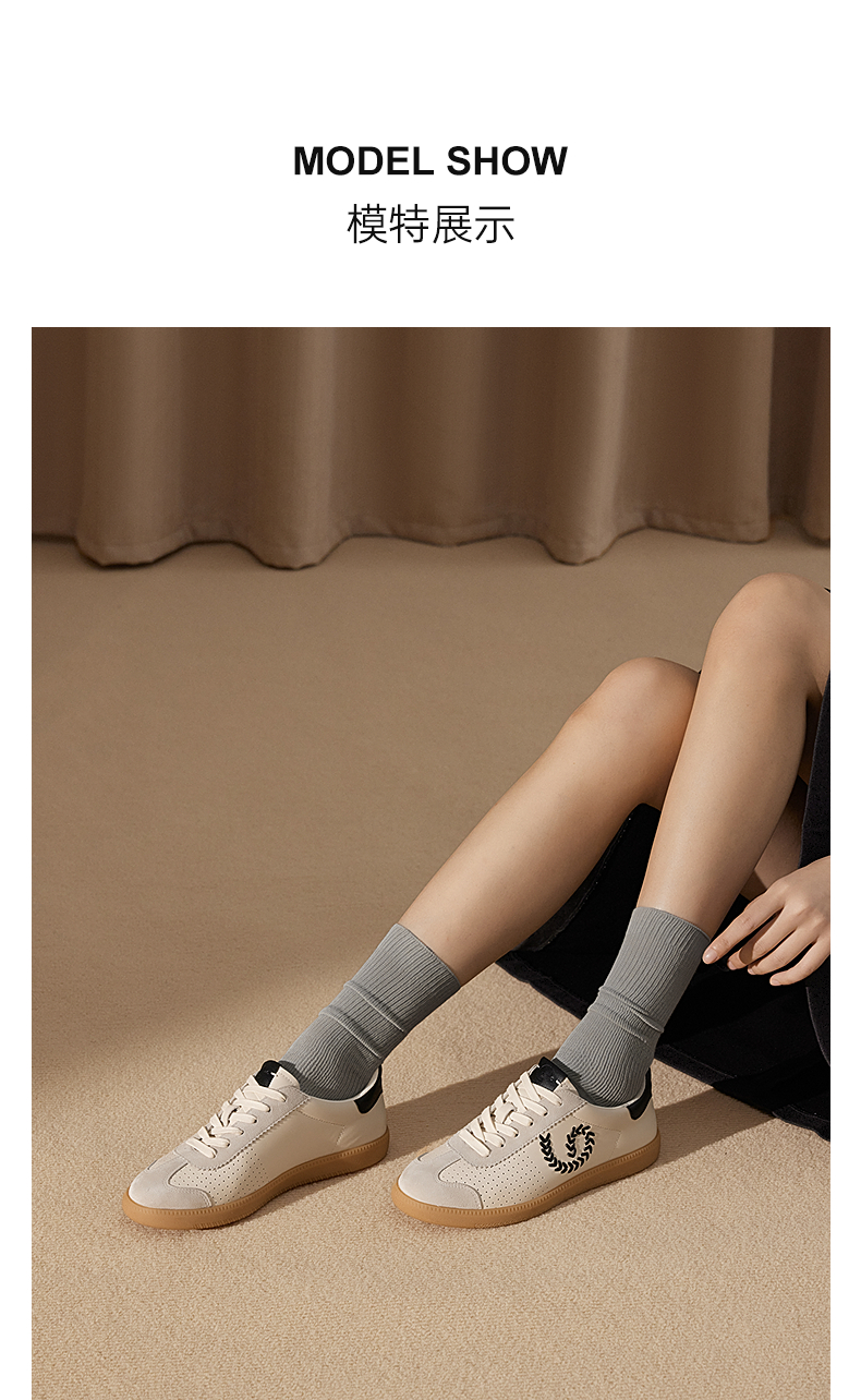千百度羊皮时尚休闲鞋女款透气的复古德训鞋运动鞋A25144677