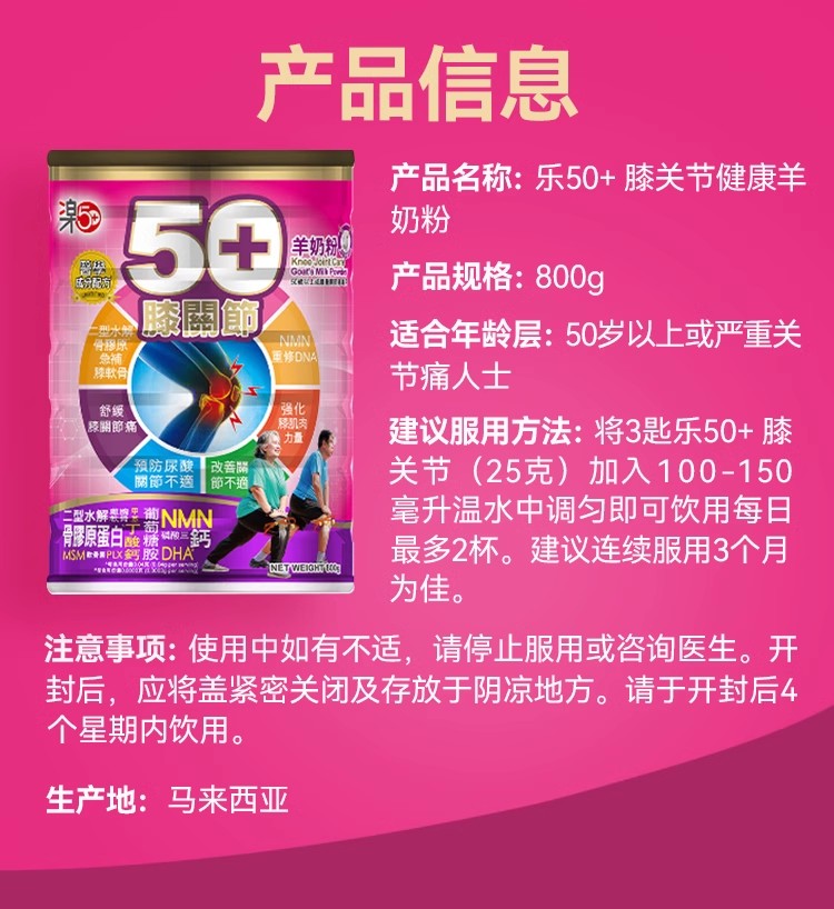 樂50+Raku乐50+膝关节NMN羊奶粉800g NMN保持年轻态成人奶粉 门店同款 中老年舒缓关节改善肌无力