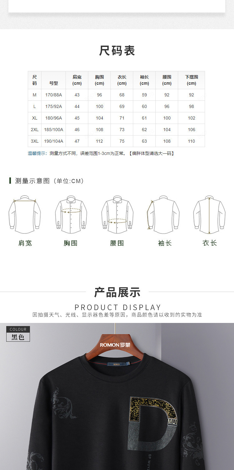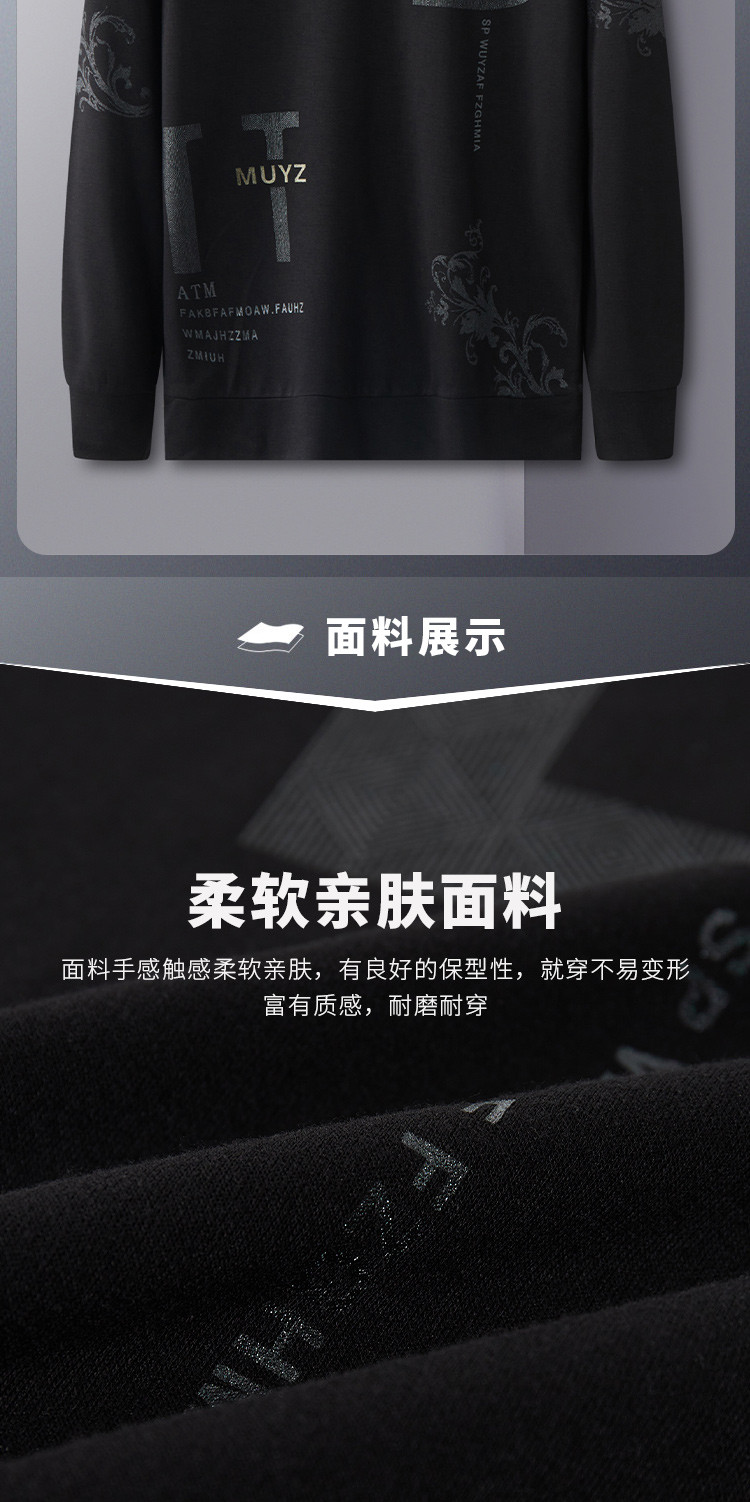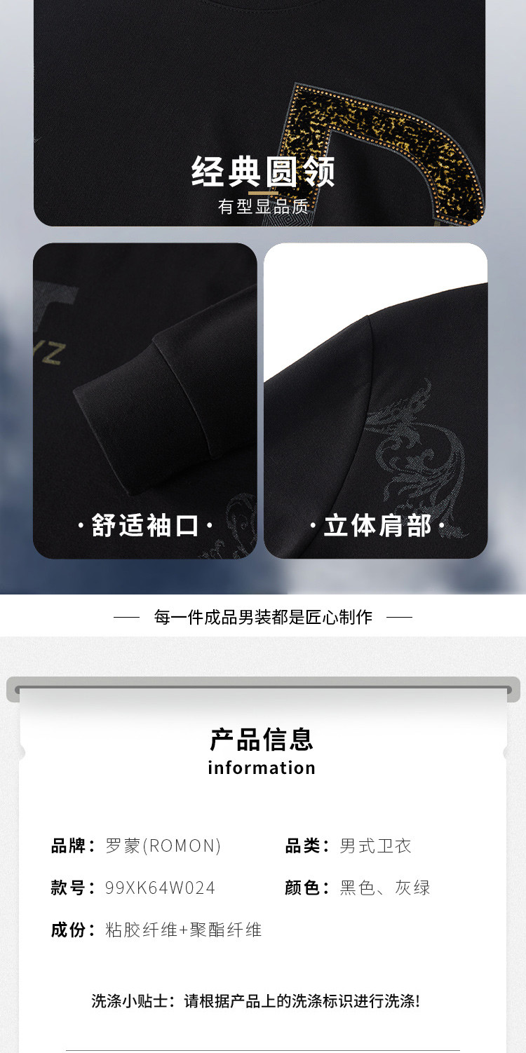 【潮流印花】罗蒙卫衣男秋冬新品圆领舒适亲肤通勤内搭外穿男士卫衣