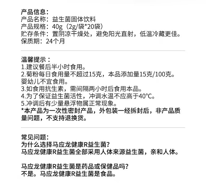 【马应龙健康】益生菌固体饮料 促进消化 改善便秘腹泻