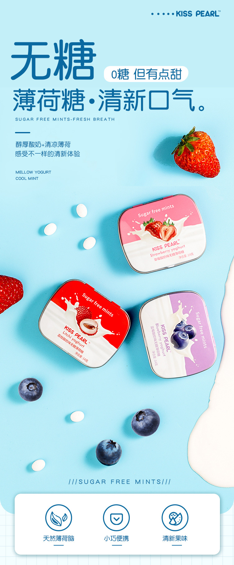 「十几款口味!便携盒装」kissspearl无糖薄荷糖 随身携带口香糖清新口气糖果零食