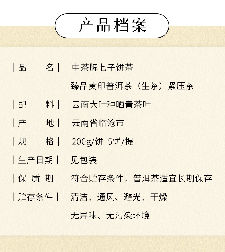 中粮-中茶2021年臻品黄印生普普洱茶生茶七子饼茶200g /饼/云南干仓直发