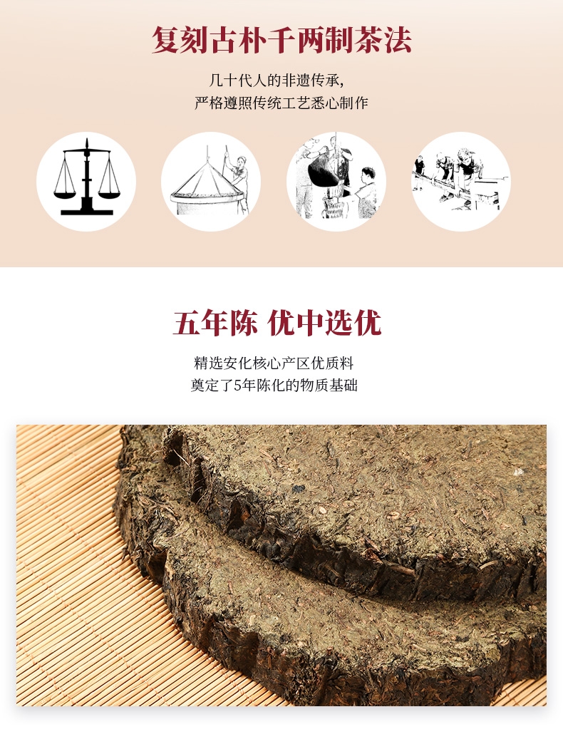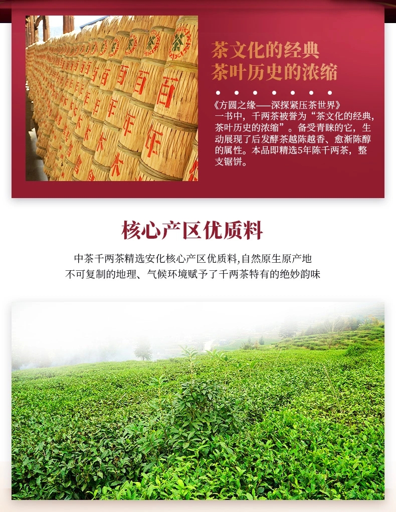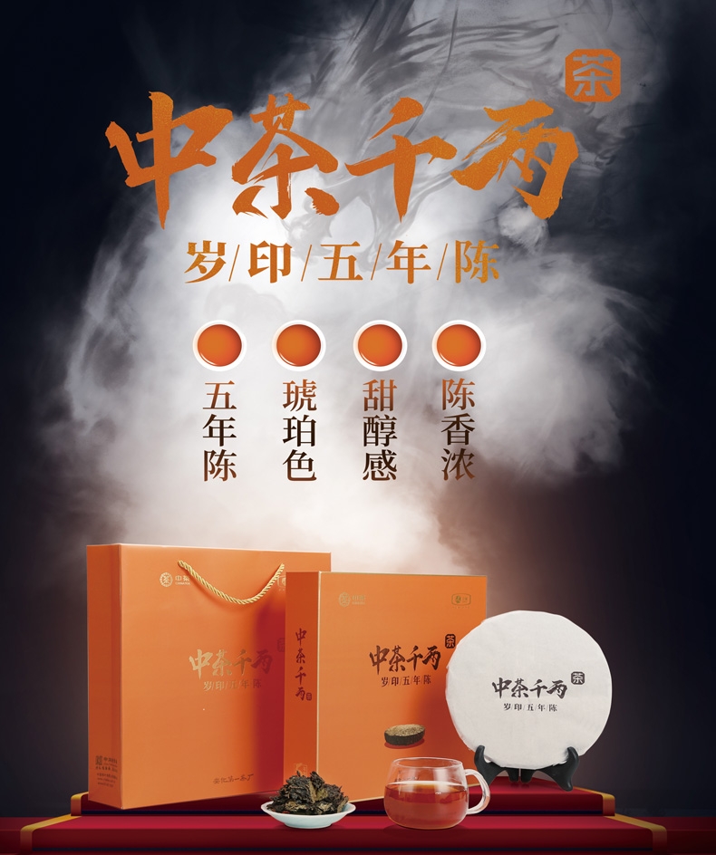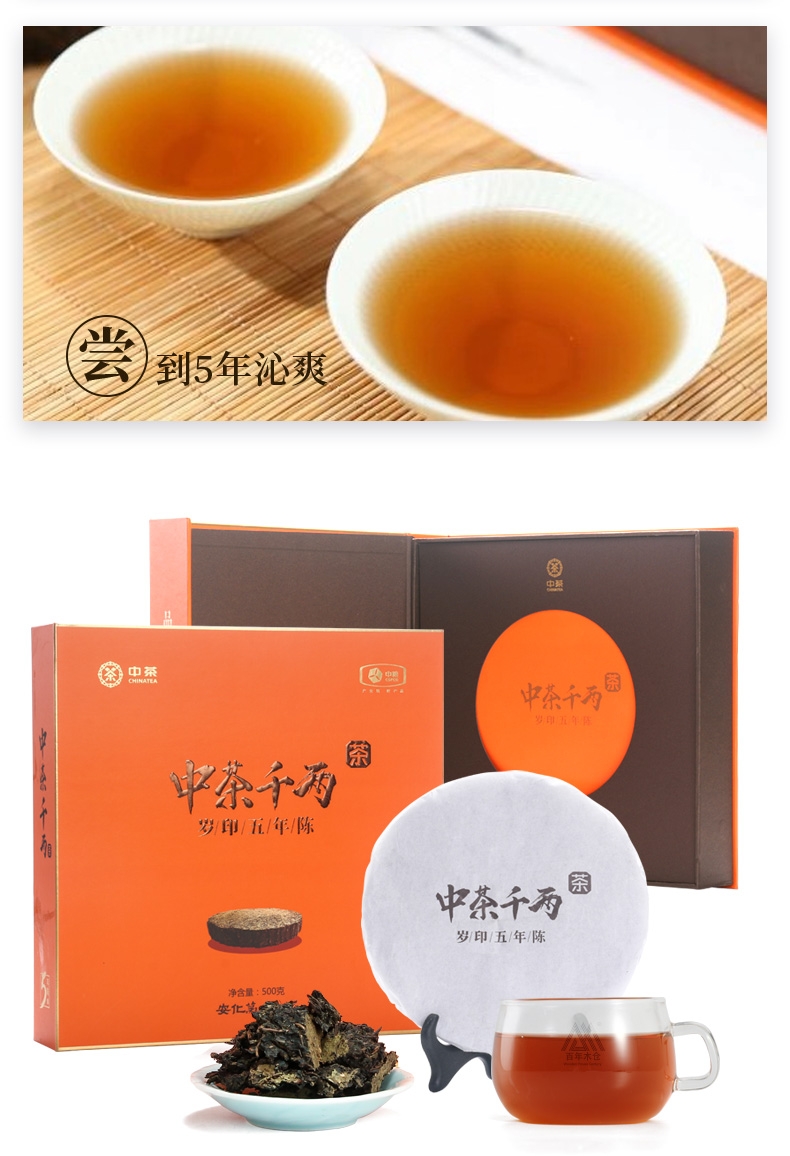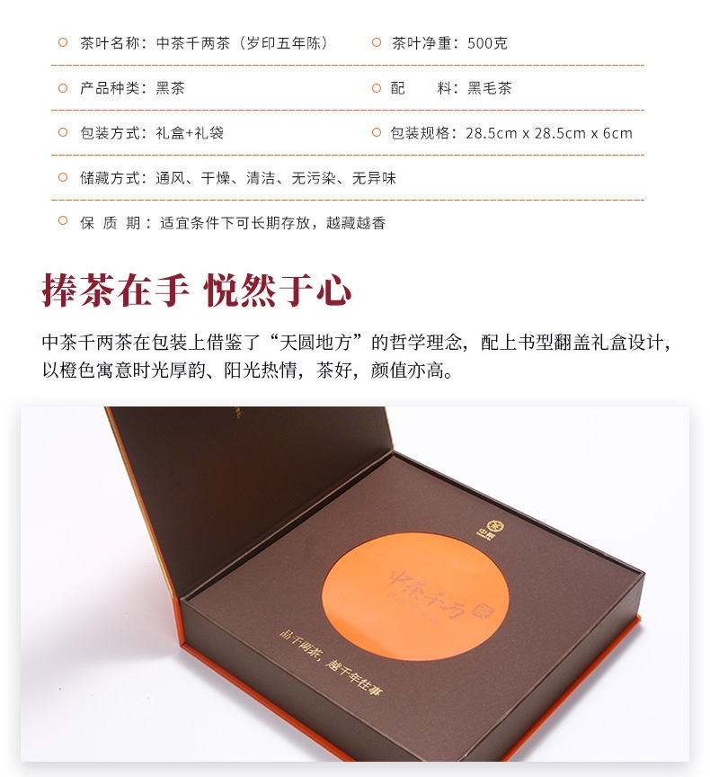 中粮-中茶安化黑茶千两饼中茶岁印五年陈500g/礼盒/金花饱满/原产地直发