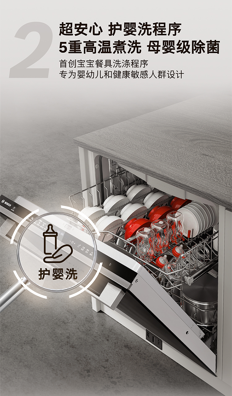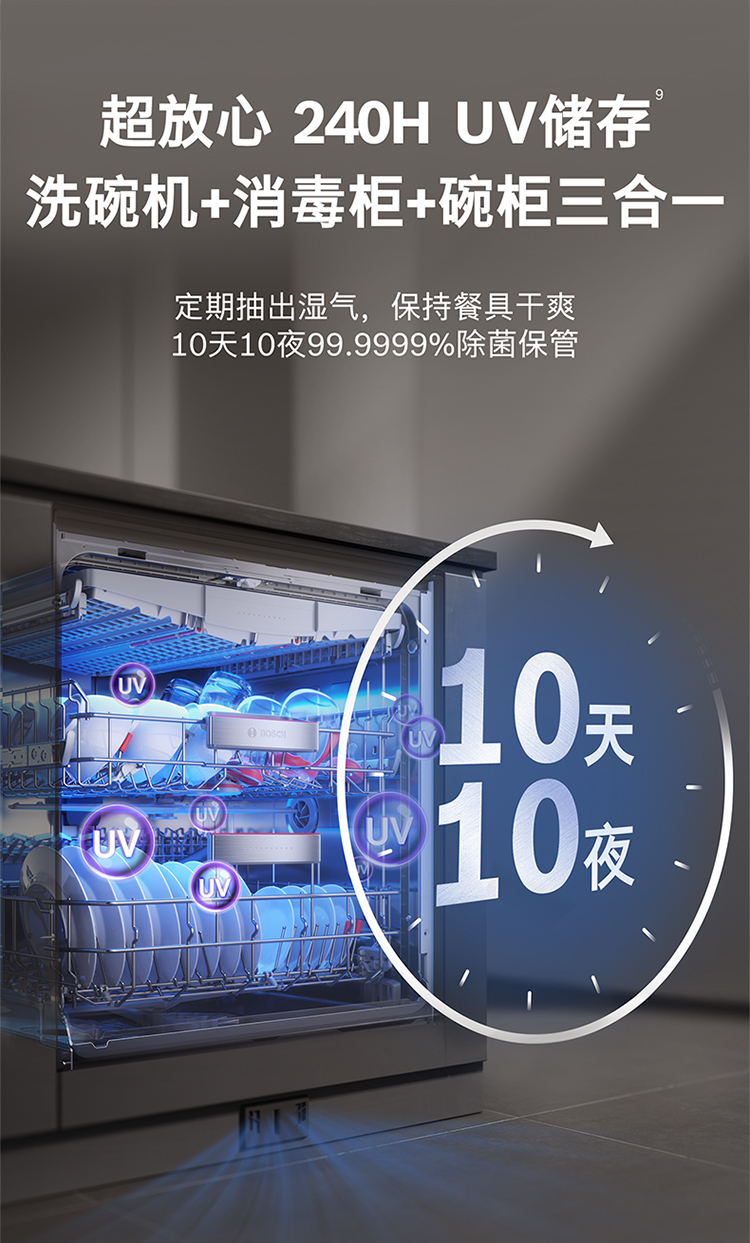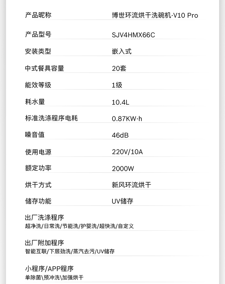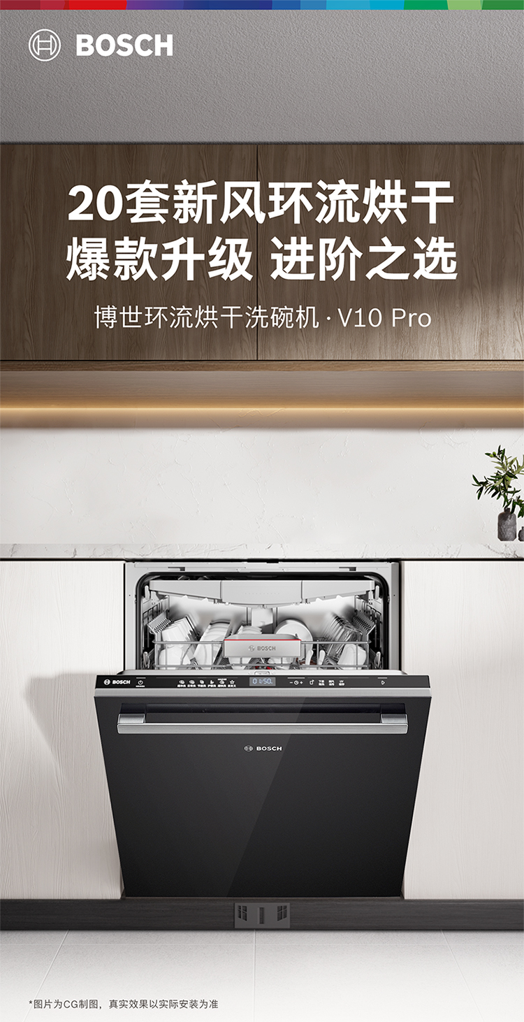 博世(BOSCH)20套V10Pro全嵌入式除菌洗碗机240H存储 新风环流烘干SJV4HMX66C 可定制面板