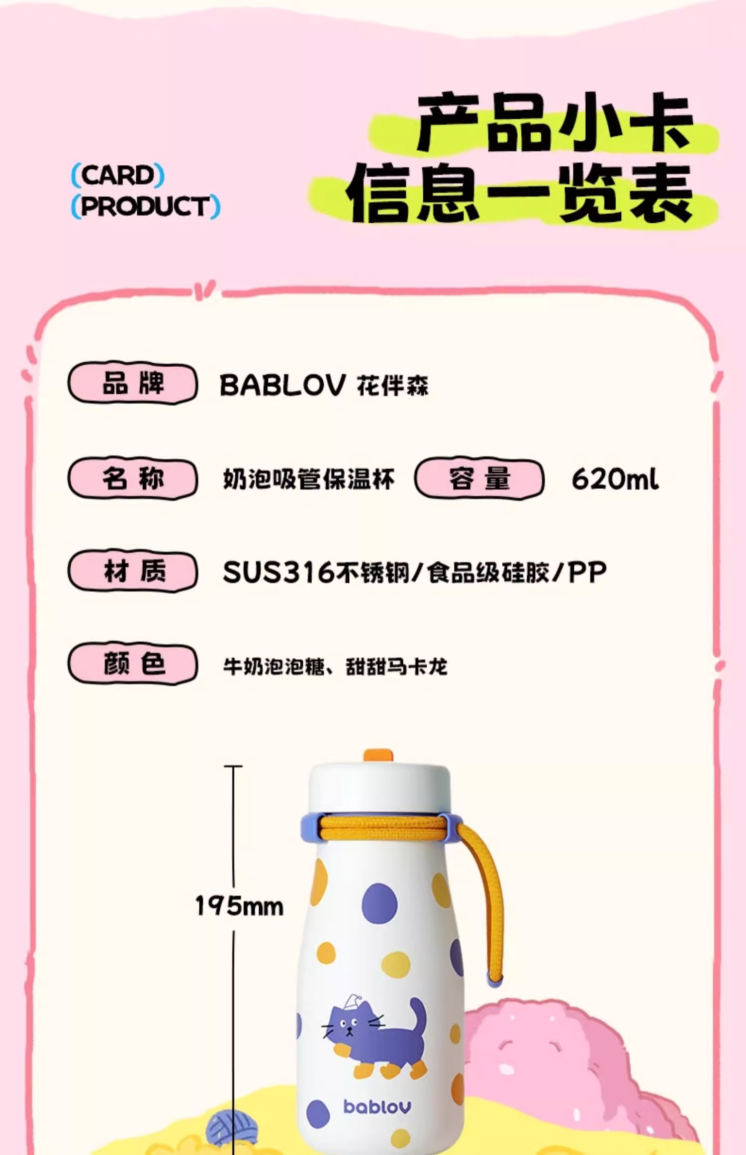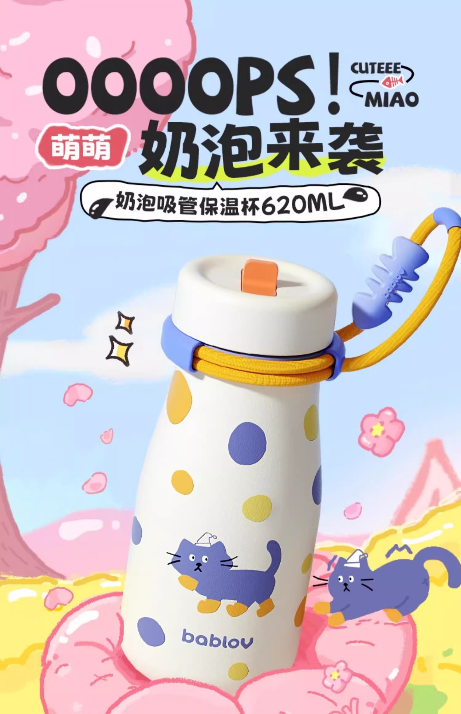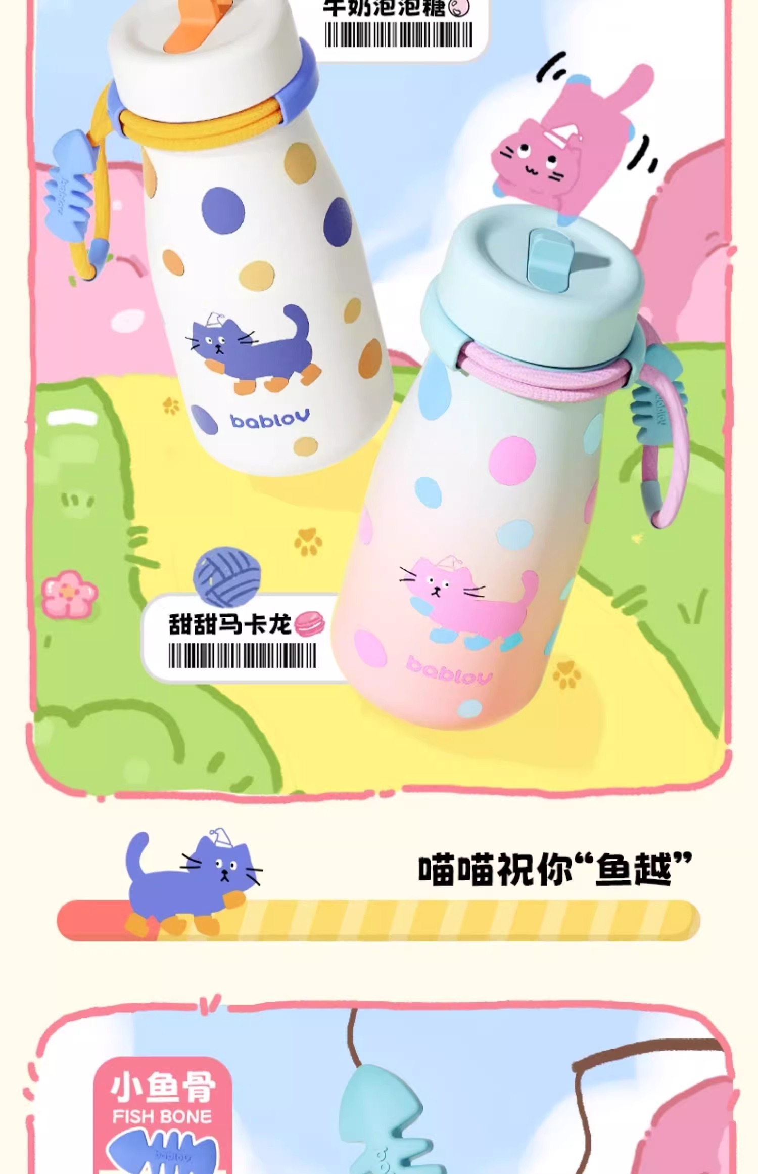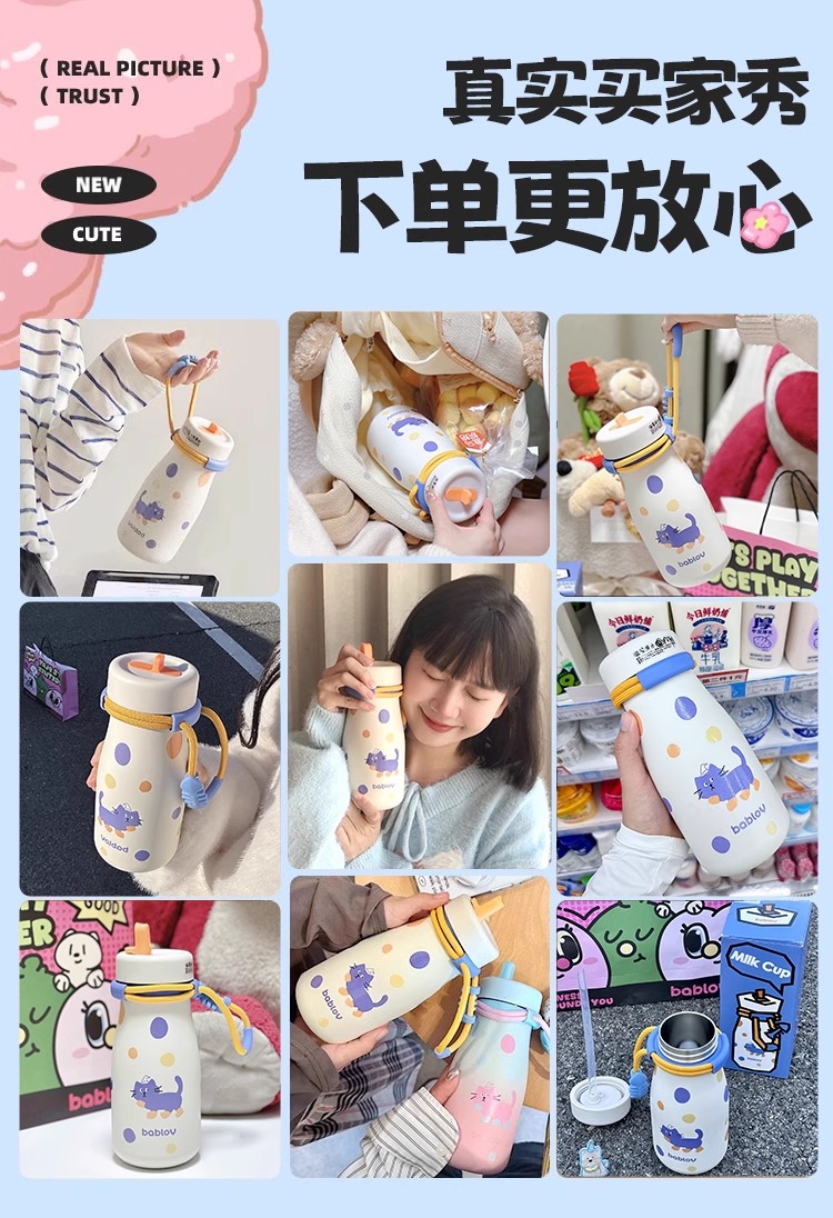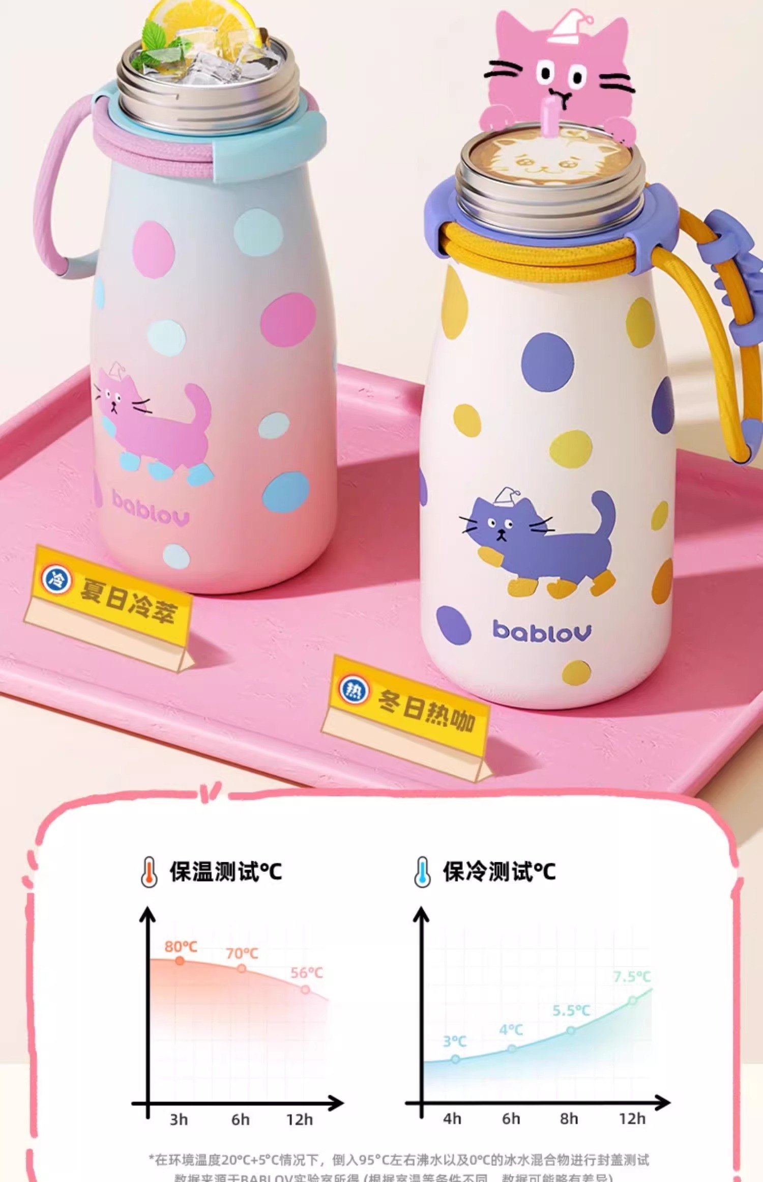 bablov吸管保温杯女生可爱高颜值学生大容量水杯新款儿童便携杯子