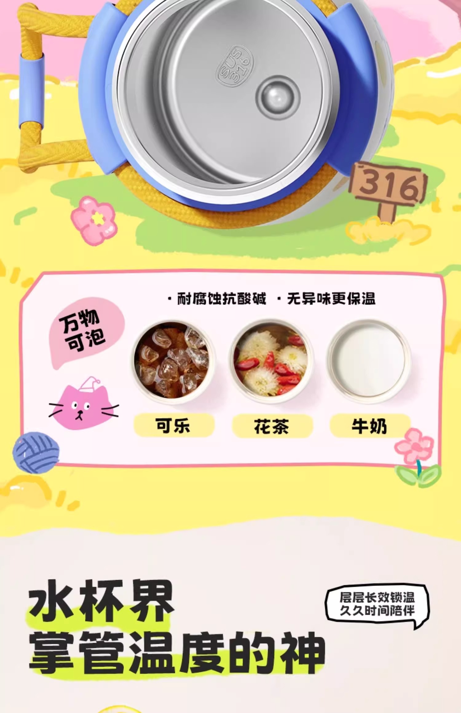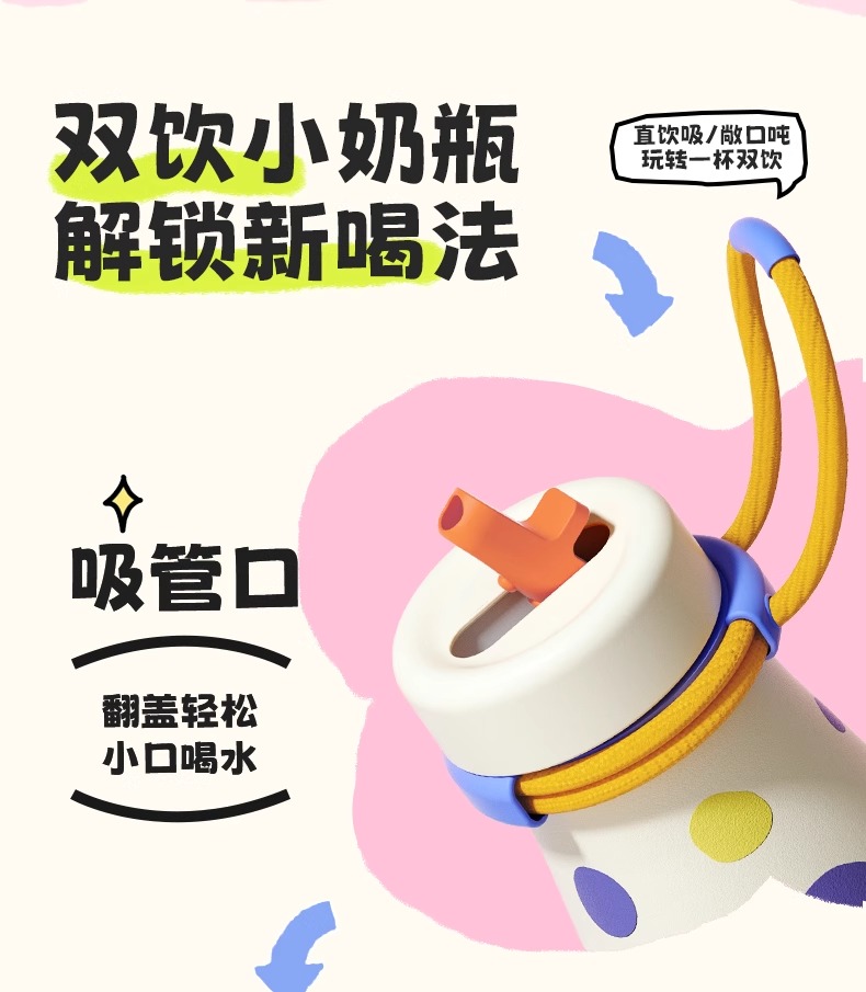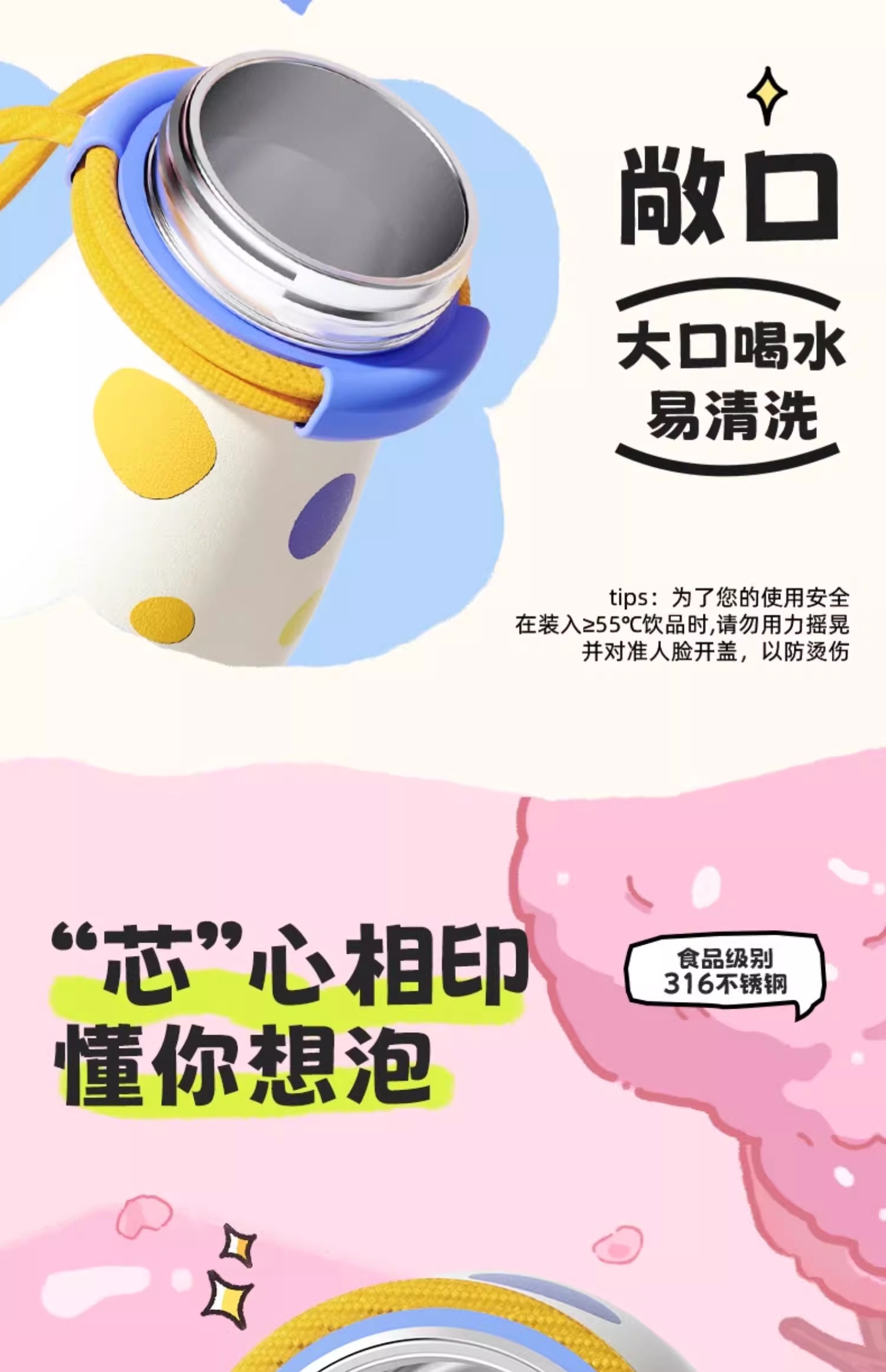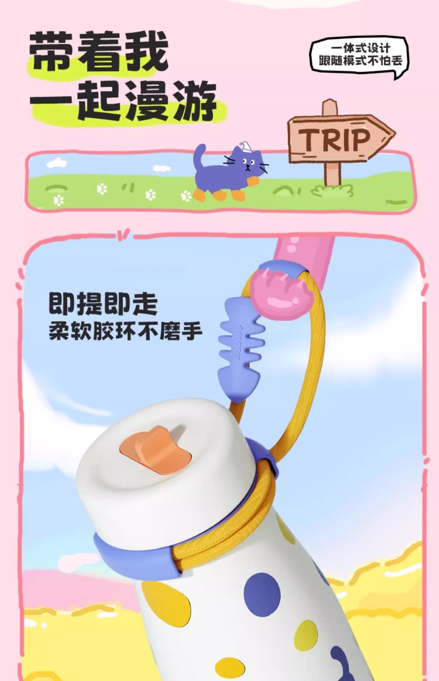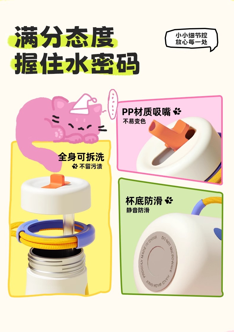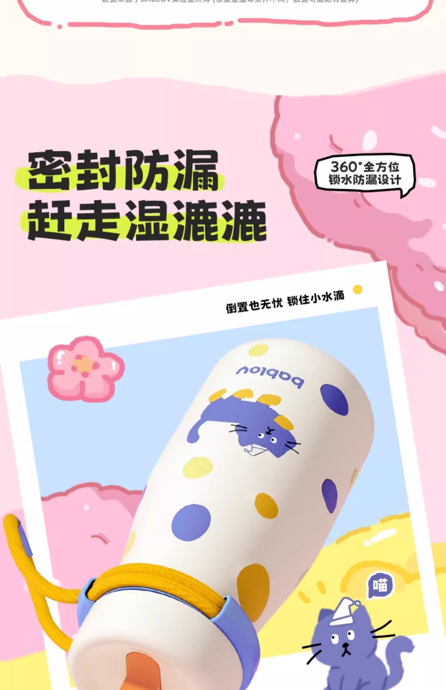 bablov吸管保温杯女生可爱高颜值学生大容量水杯新款儿童便携杯子