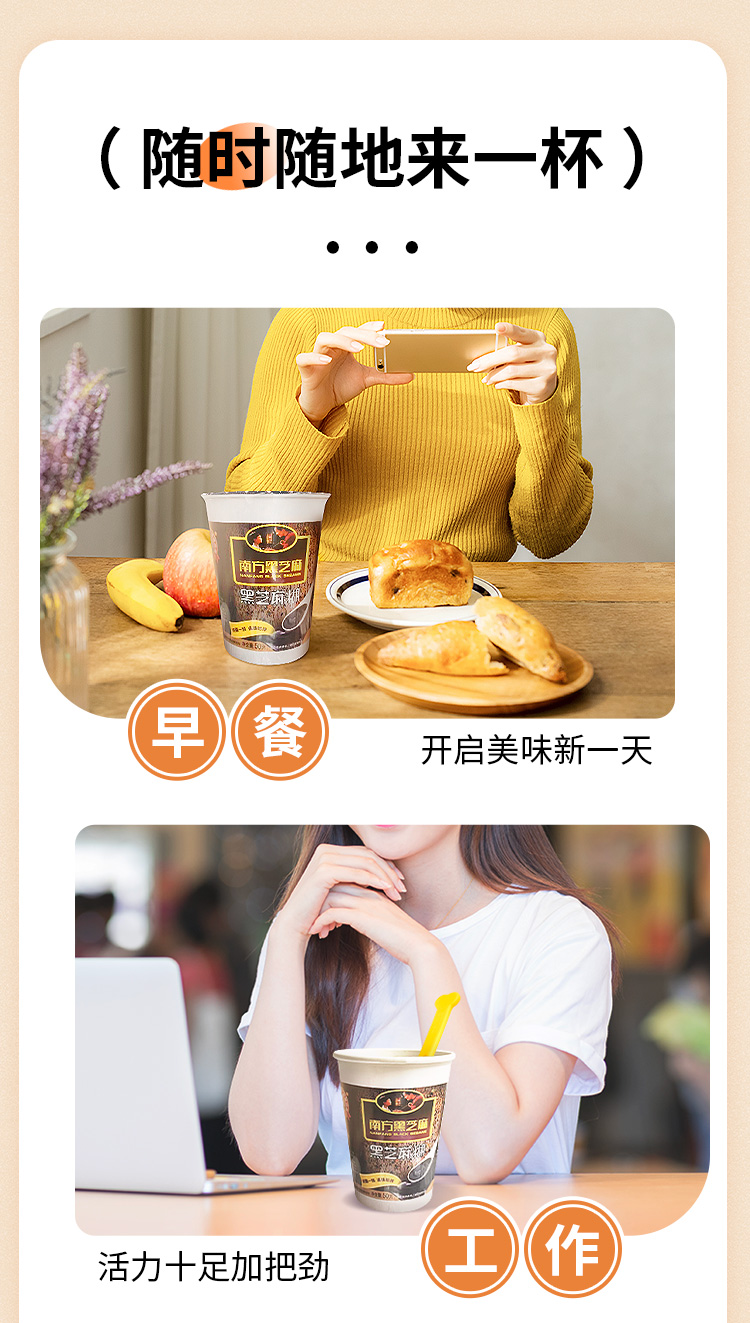 南方黑芝麻糊原味杯装30杯无添加蔗糖懒人速食冲饮冲调谷物免煮营养早餐