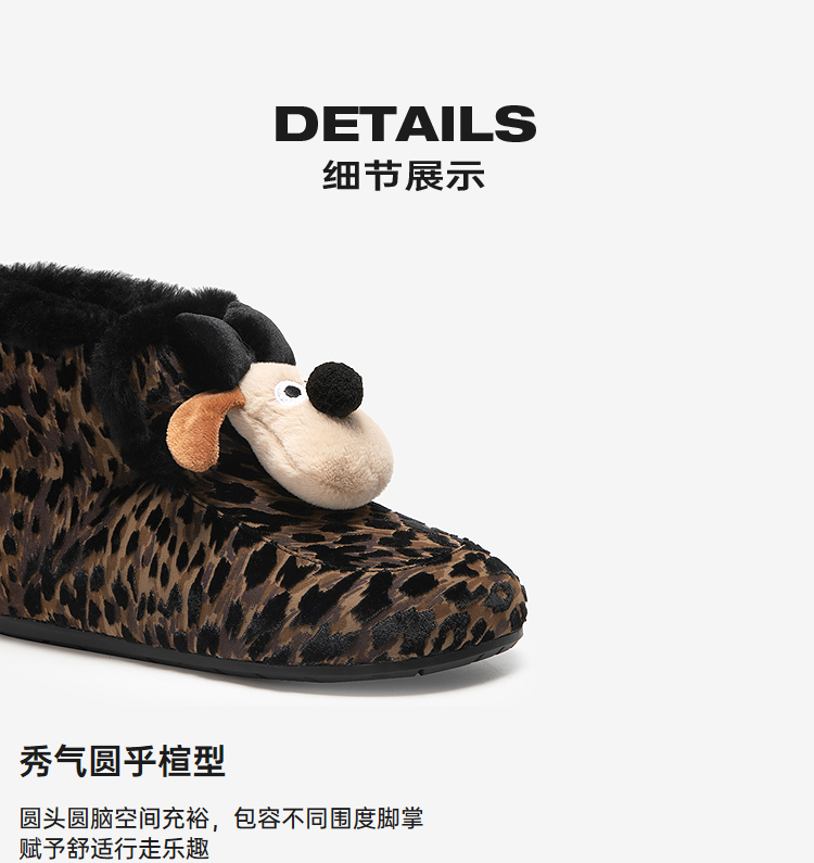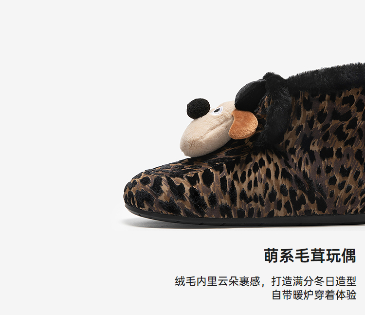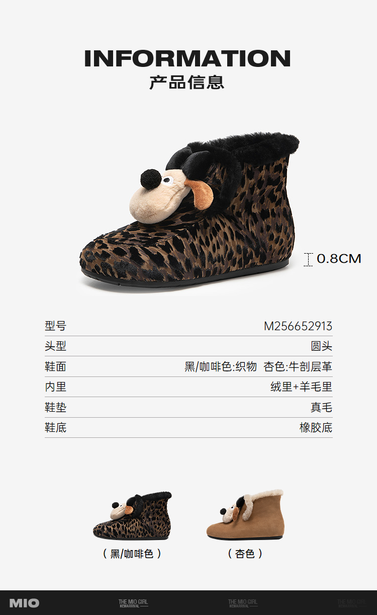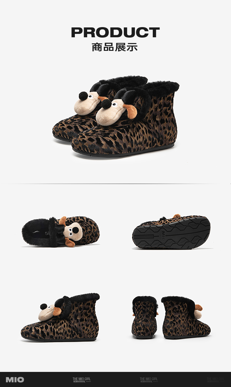 MIO米奥雪地靴冬季可爱小鹿玩偶新款豹纹保暖毛毛加绒短靴女M256652913