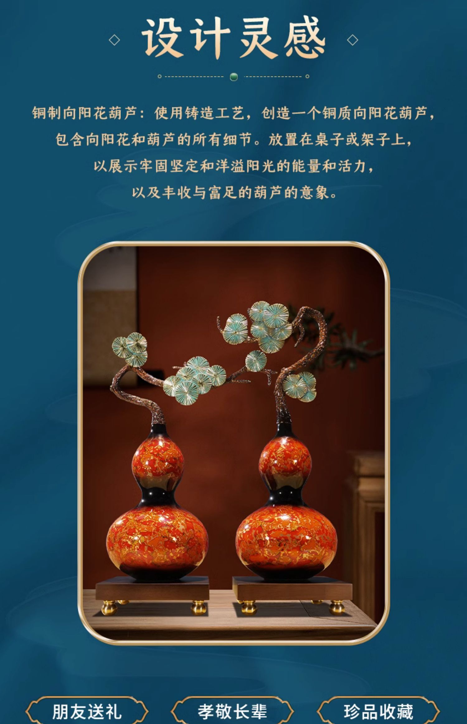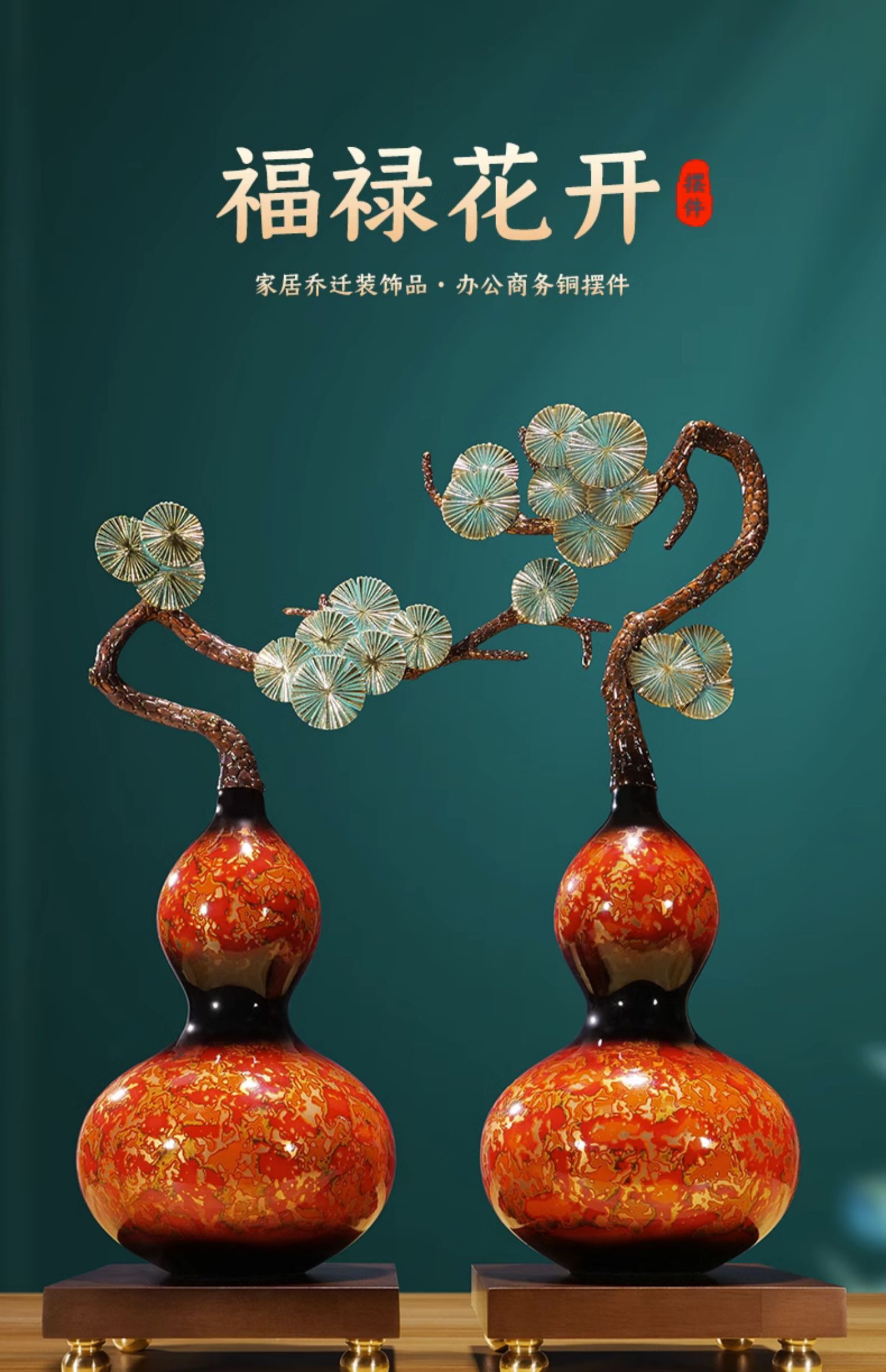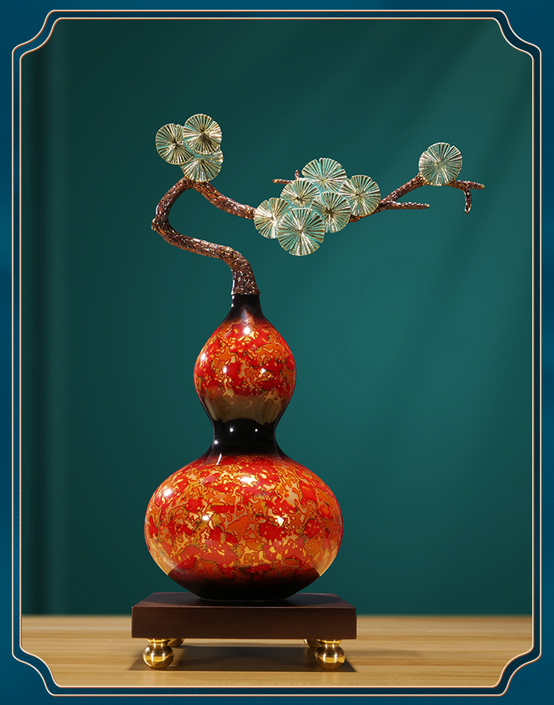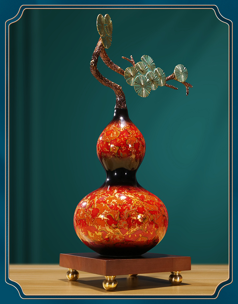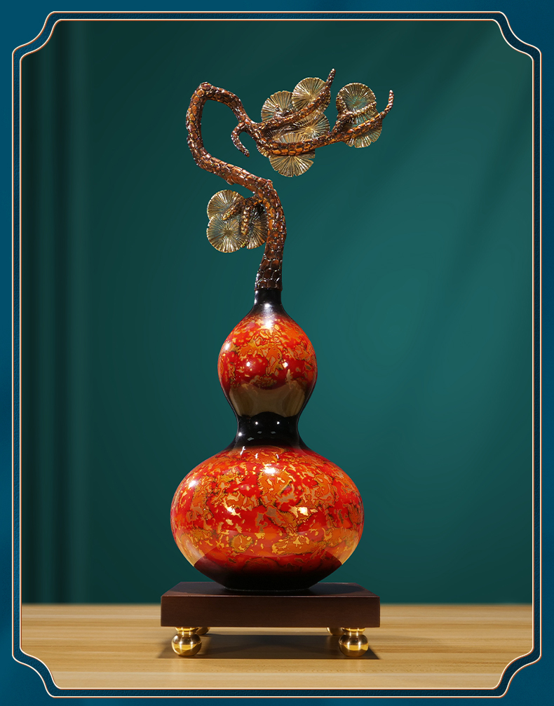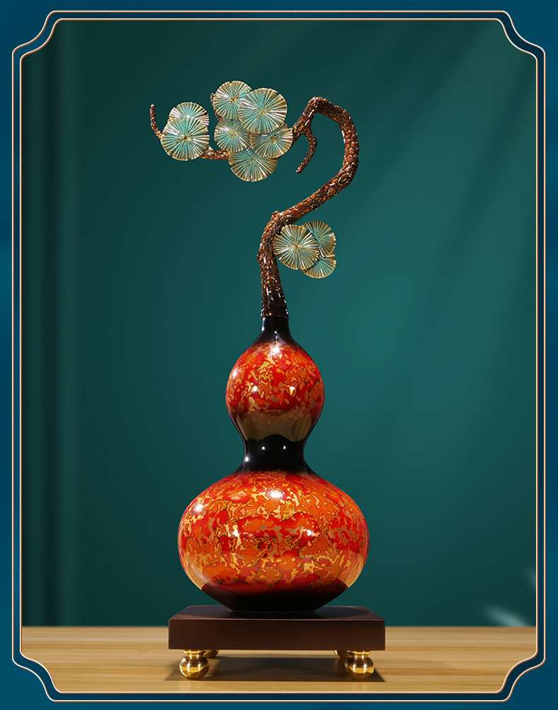 纯铜大漆工艺葫芦摆件客厅书房办公室玄关新中式摆件新婚贺礼乔迁贺礼