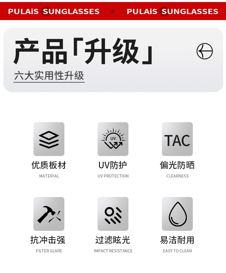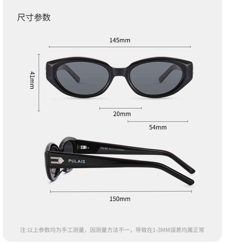 普莱斯新款太阳镜PBS24003A 率性前卫窄框 优质板材镜框 TAC偏光镜片 修颜宽边镜腿 男女同款 四色可选