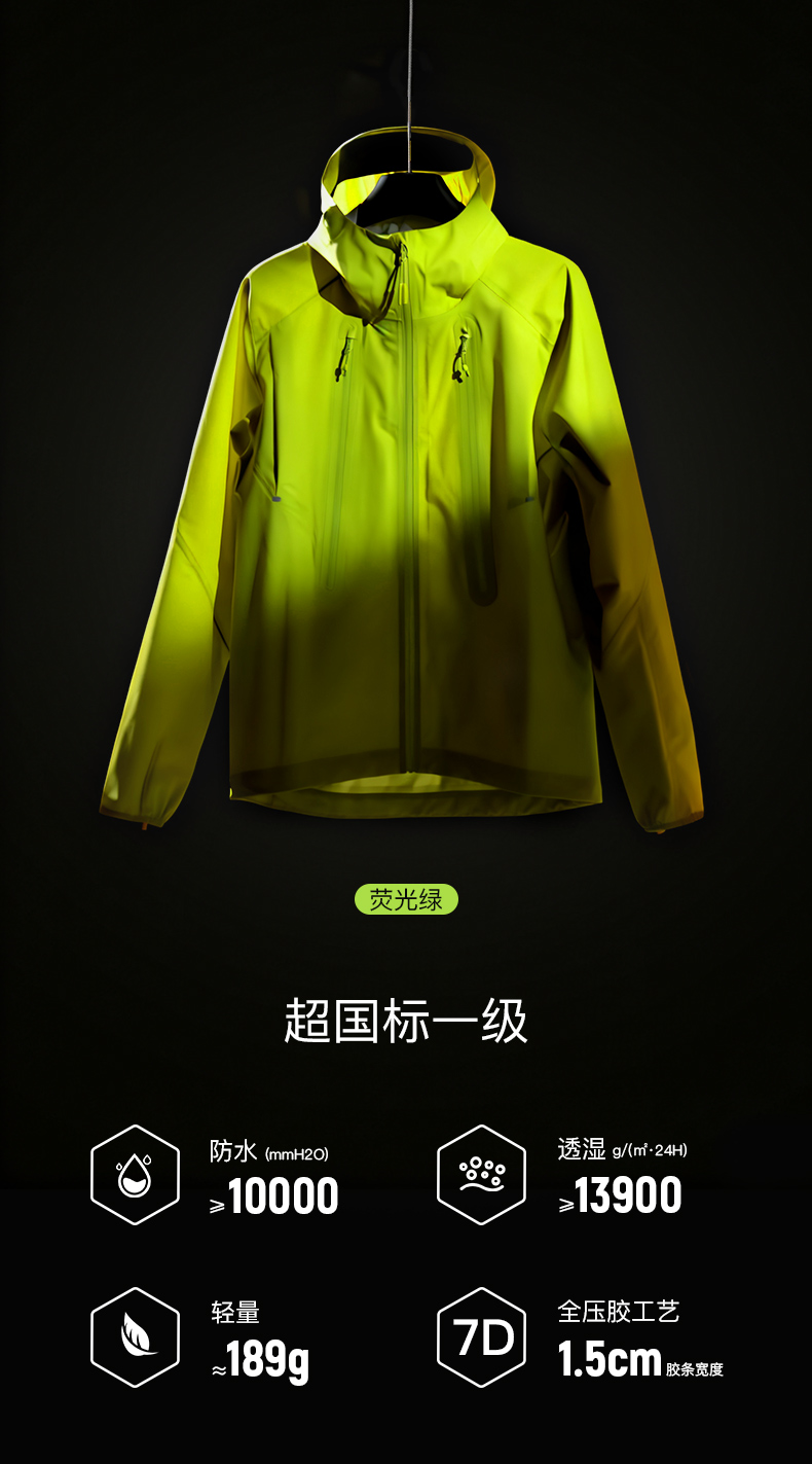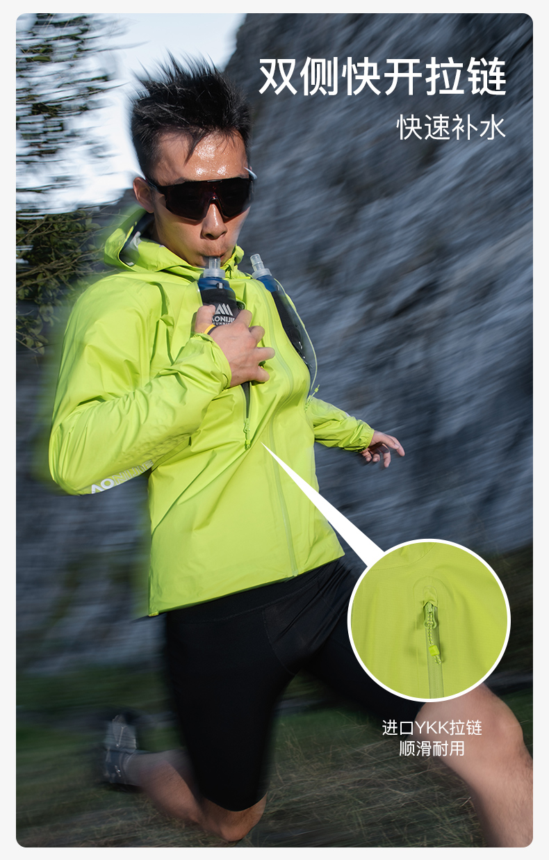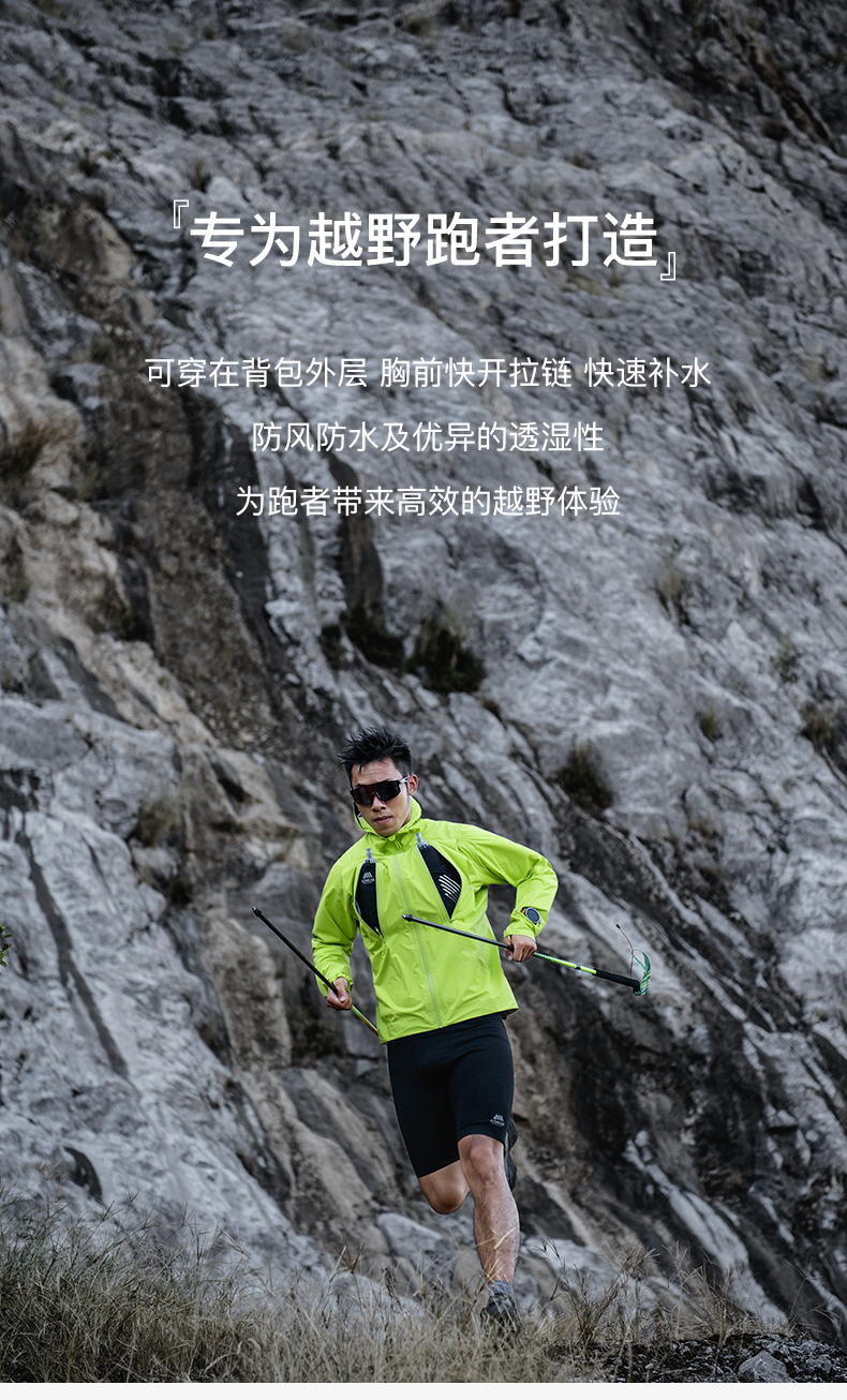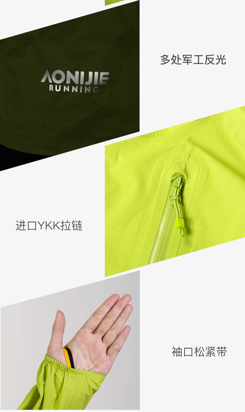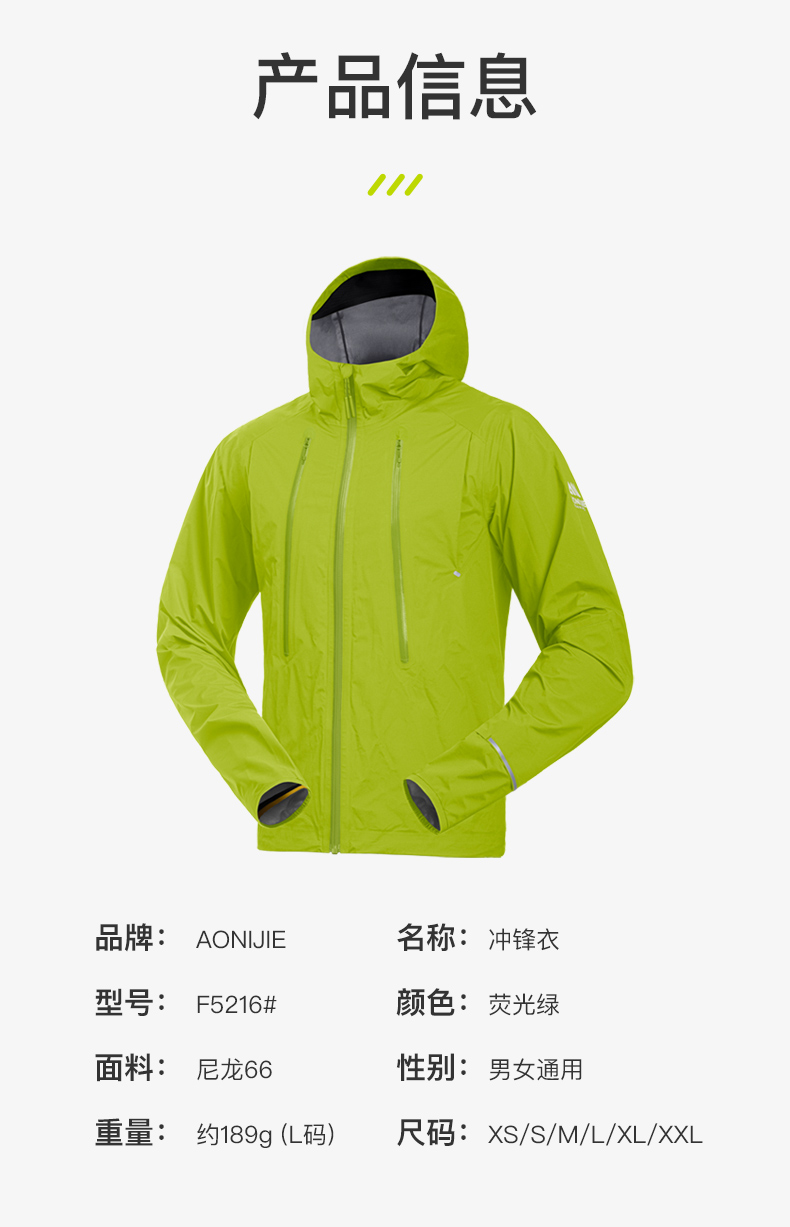 奥尼捷轻便越野跑冲锋衣跑步运动男女防风防水户外专业压胶风衣荧光绿FM5216