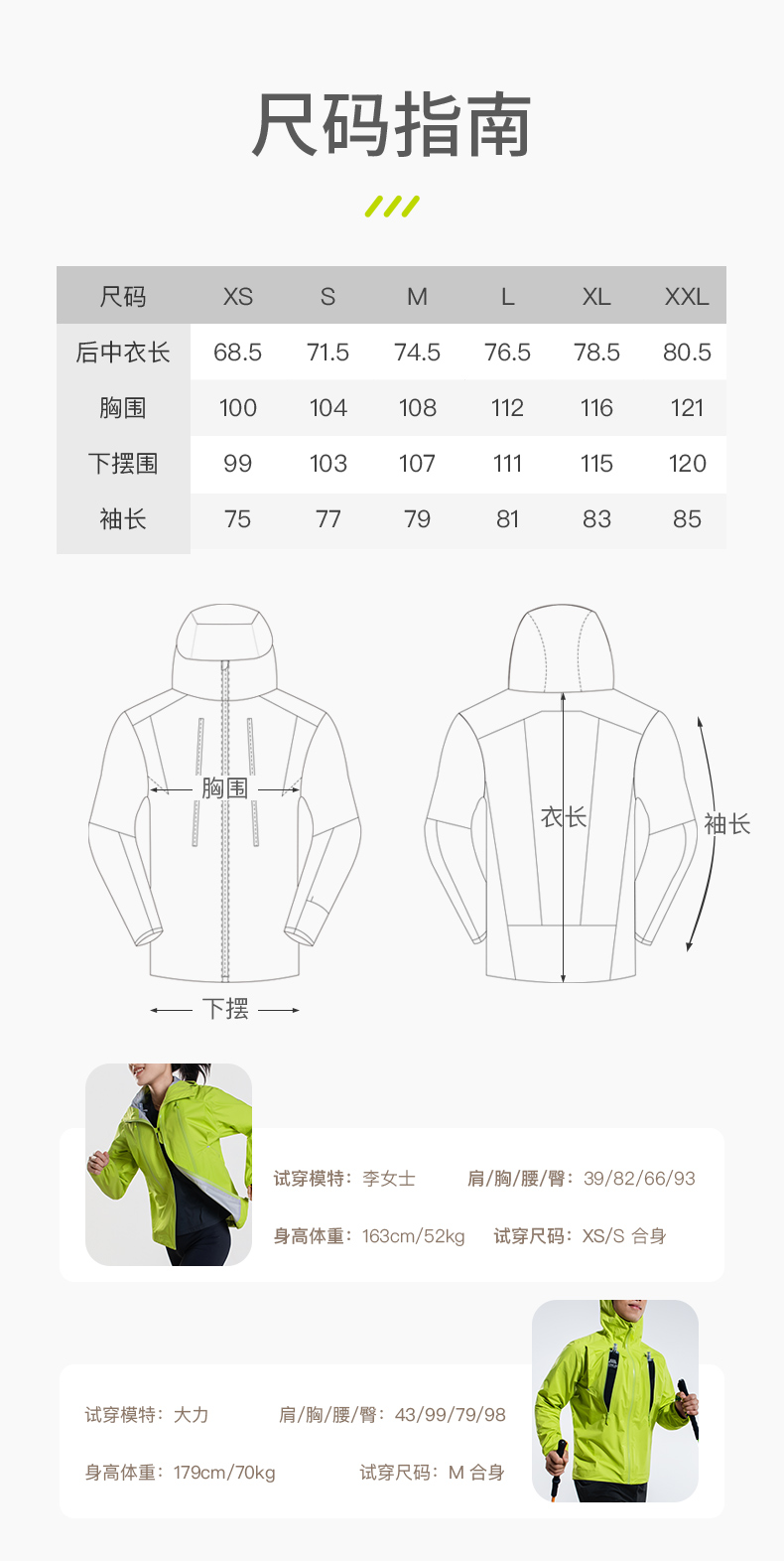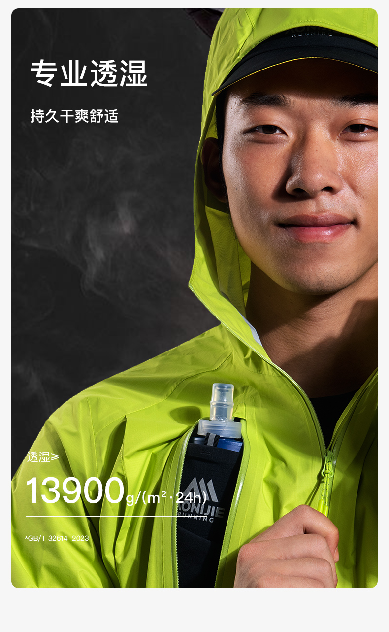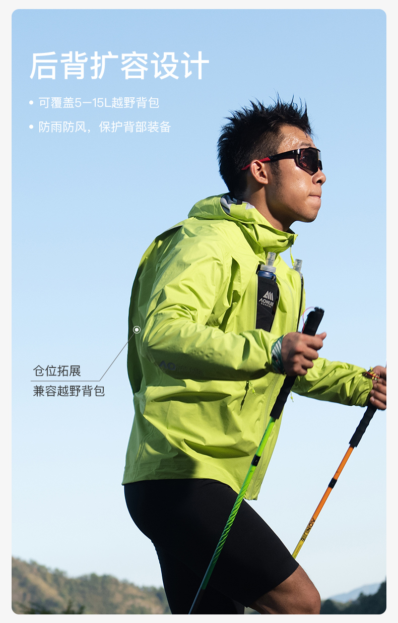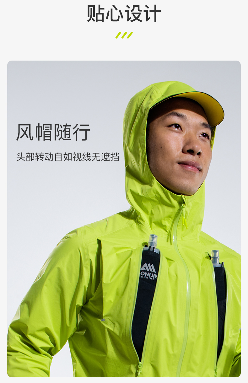 奥尼捷轻便越野跑冲锋衣跑步运动男女防风防水户外专业压胶风衣荧光绿FM5216