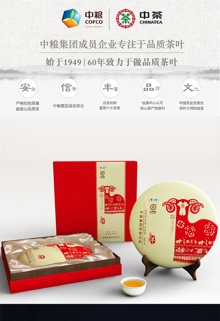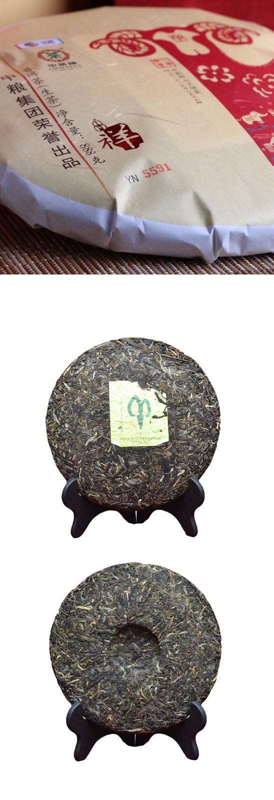 中粮-中茶(生茶)老茶树春茶 2015年三羊开泰888克 /云南仓直发