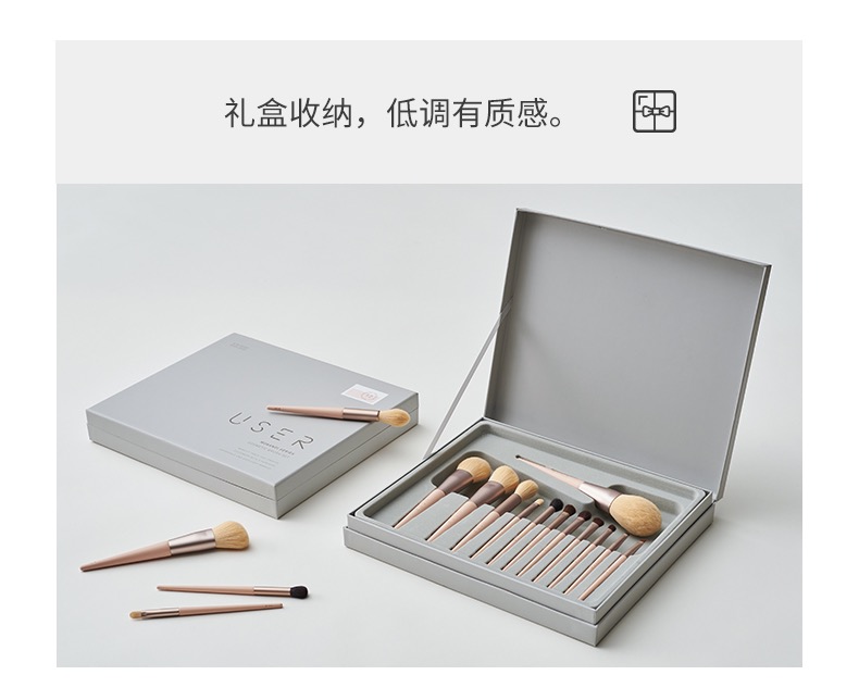 USER莫兰迪12支套刷化妆刷软动物毛玉米丝修容眼影散粉腮红遮瑕刷