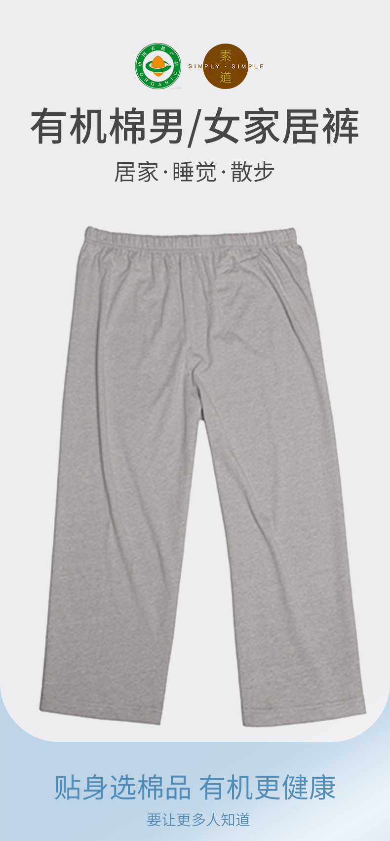 素道有机彩棉家居裤 男女款休闲裤纯棉吸汗柔软亲肤情侣睡裤 【京东快递送货上门】
