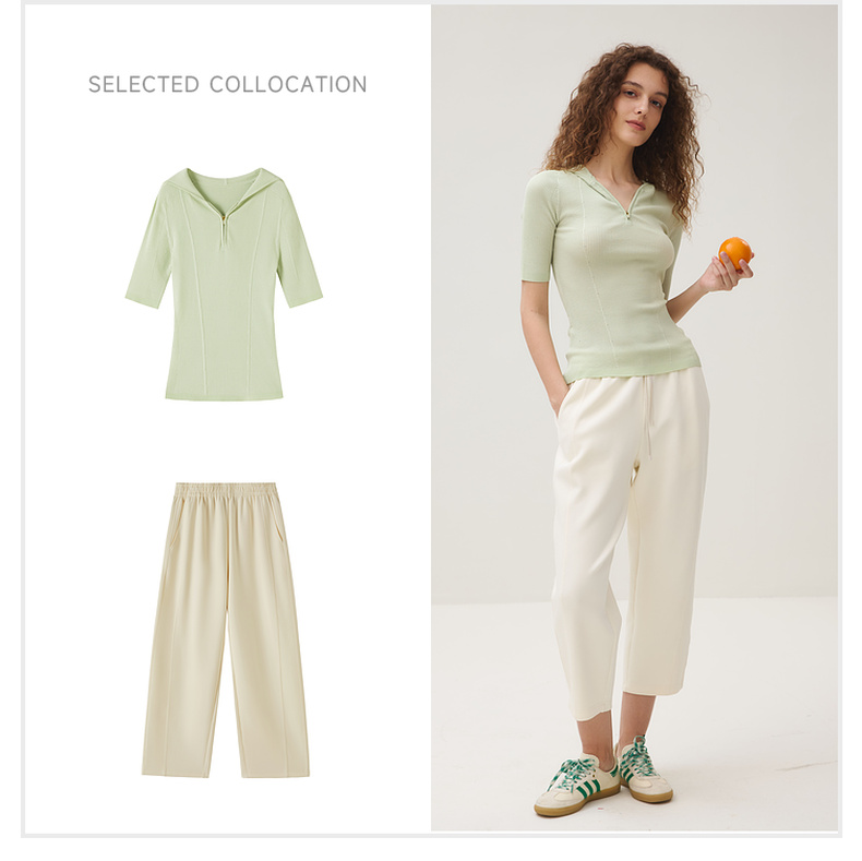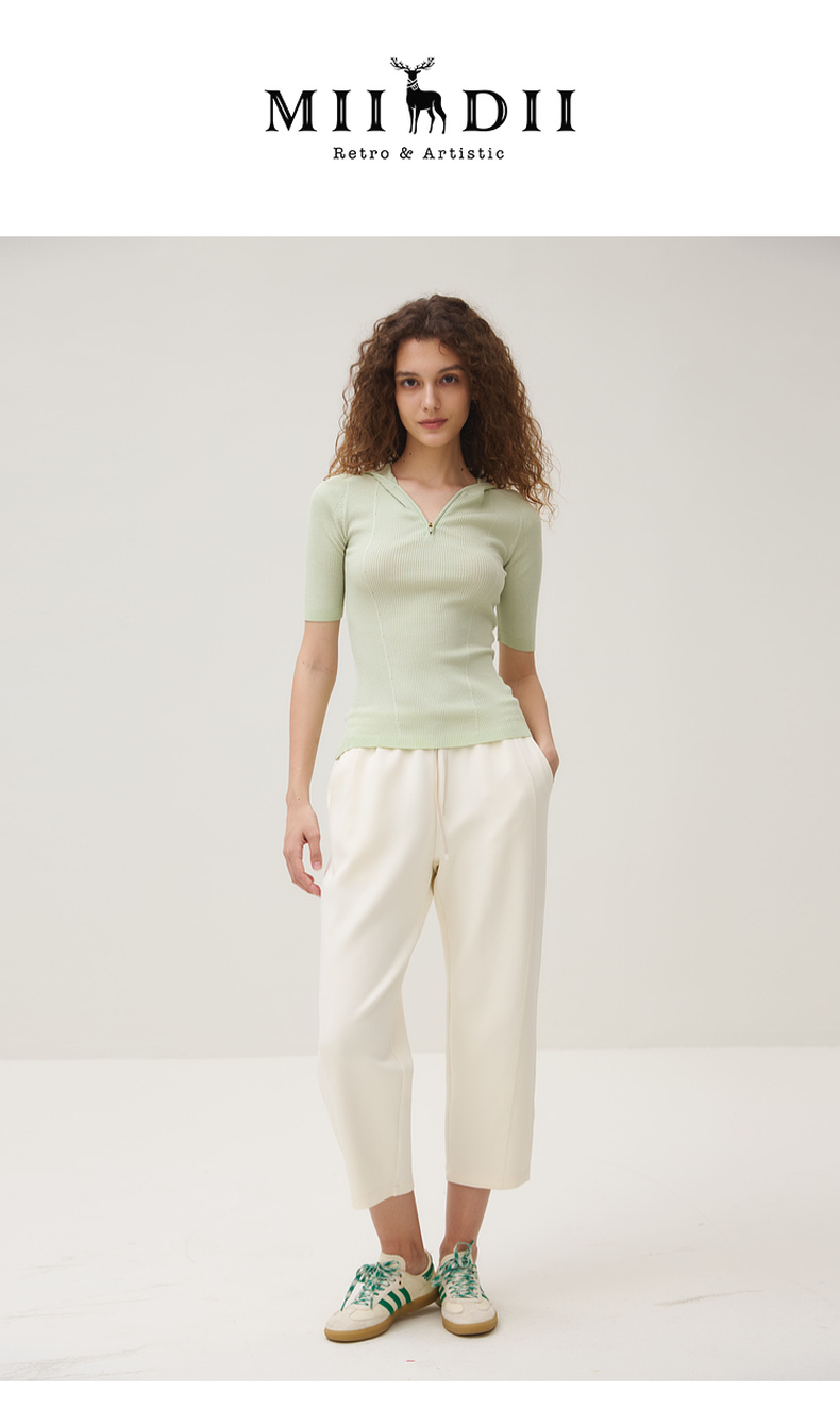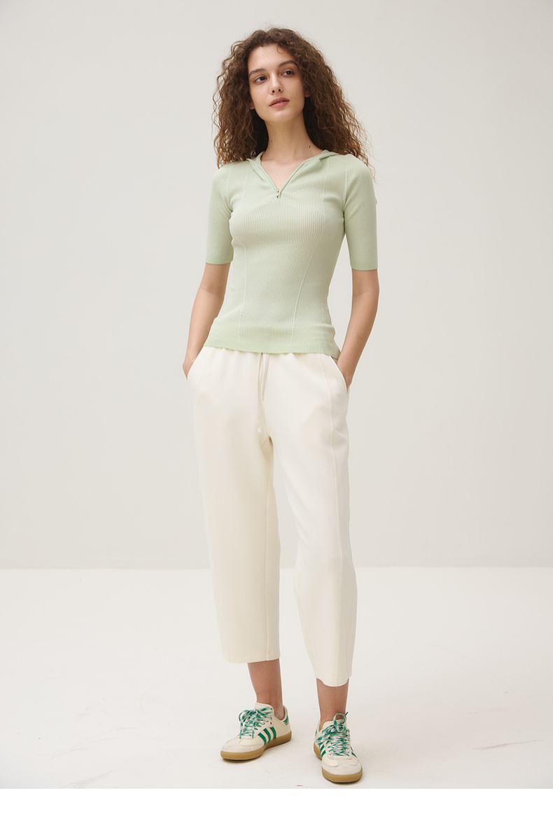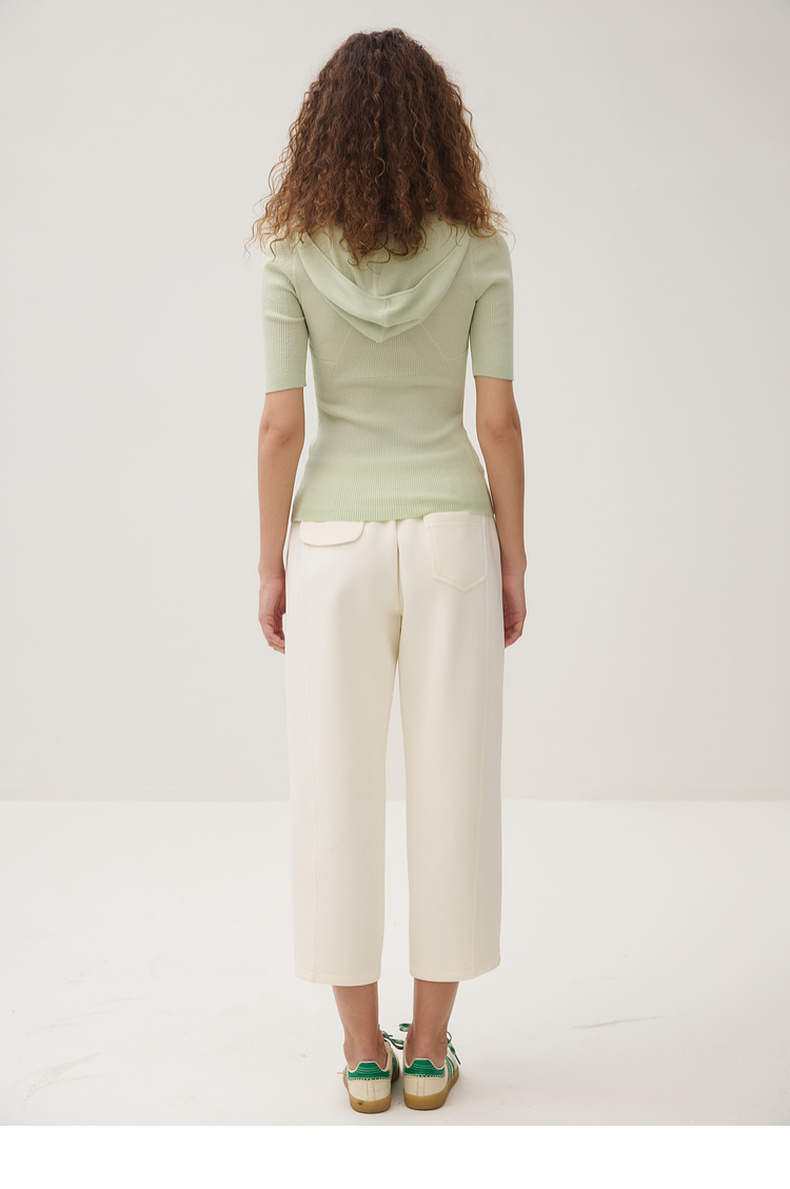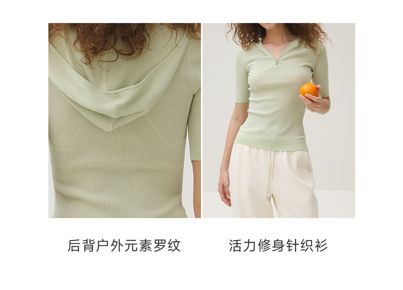 谜底连帽套头针织衫短袖女2025秋新品时髦后背设计修身253MZ1360