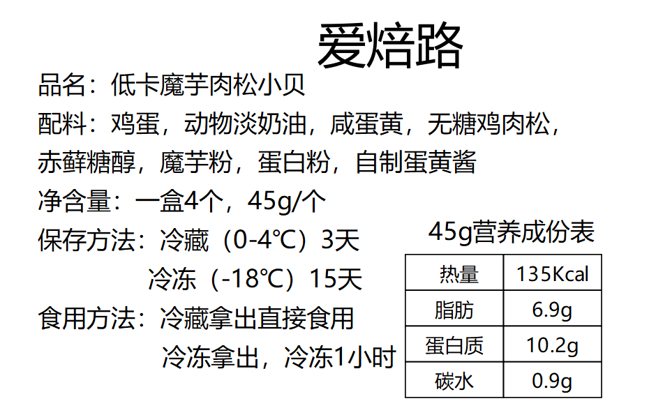 无蔗糖无麸质 低卡魔芋肉松小贝蛋糕