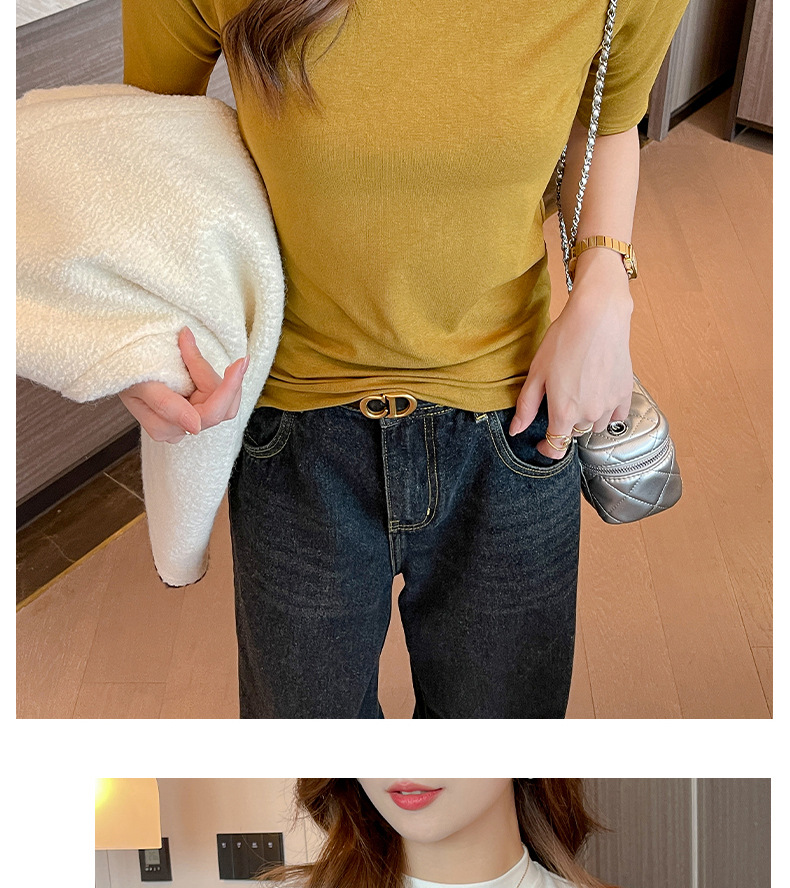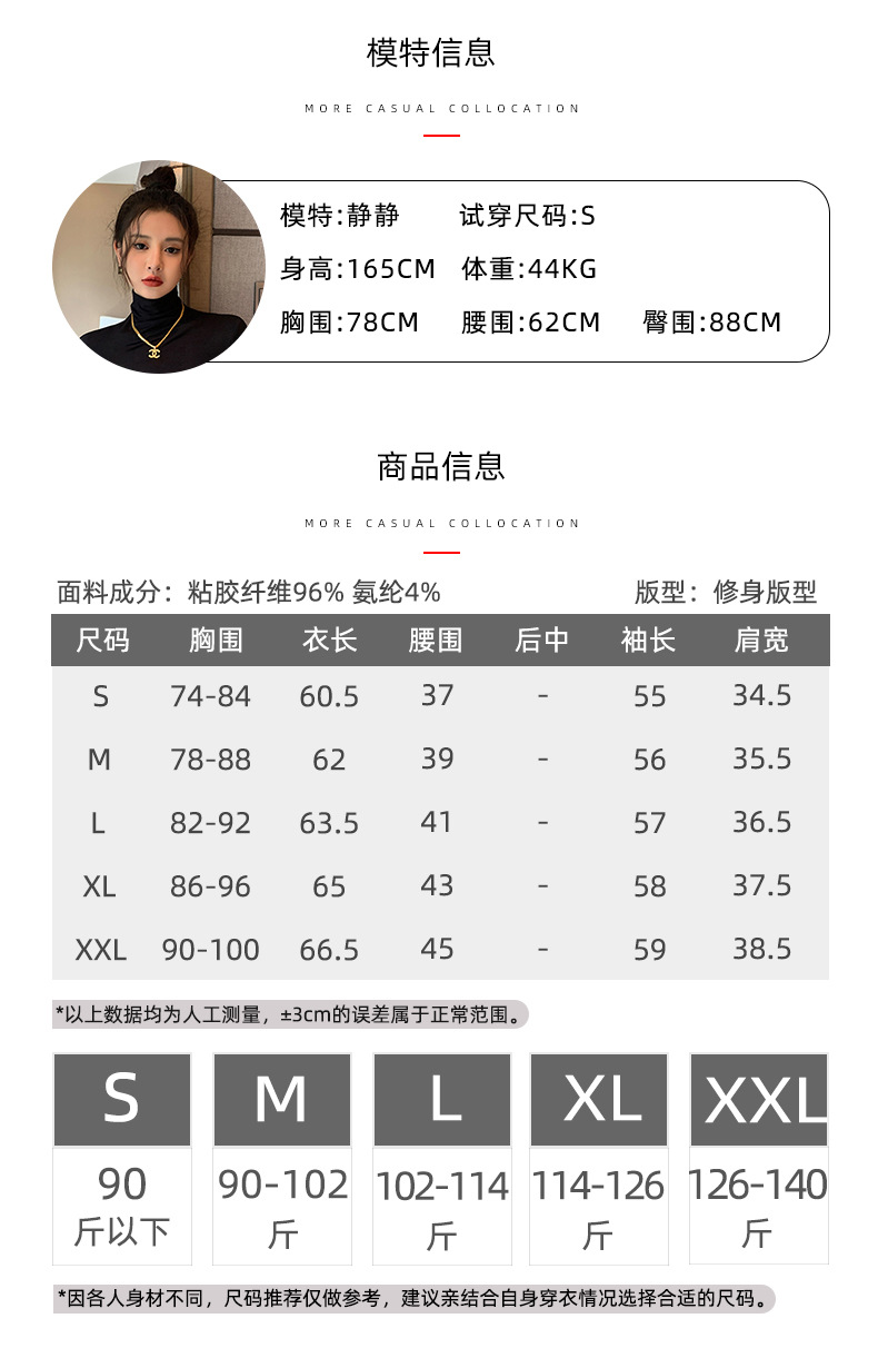 【买一送一】黑色莫代尔半高领打底衫女2024新款春秋冬内搭长袖中领修身上衣