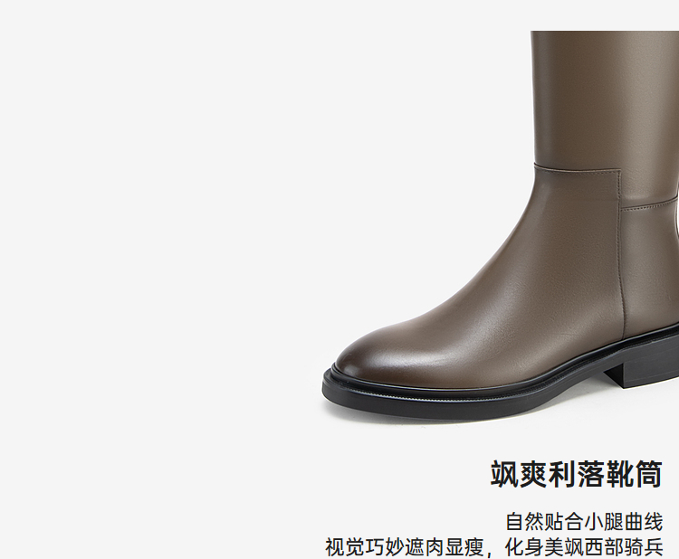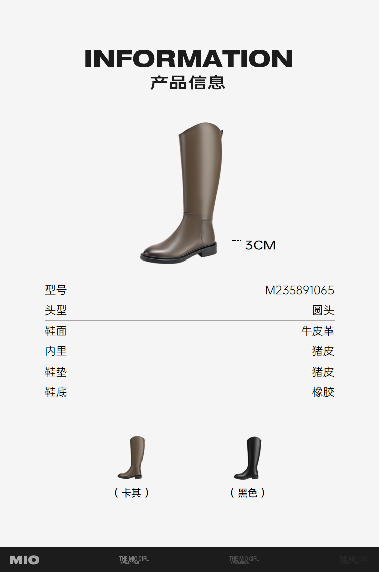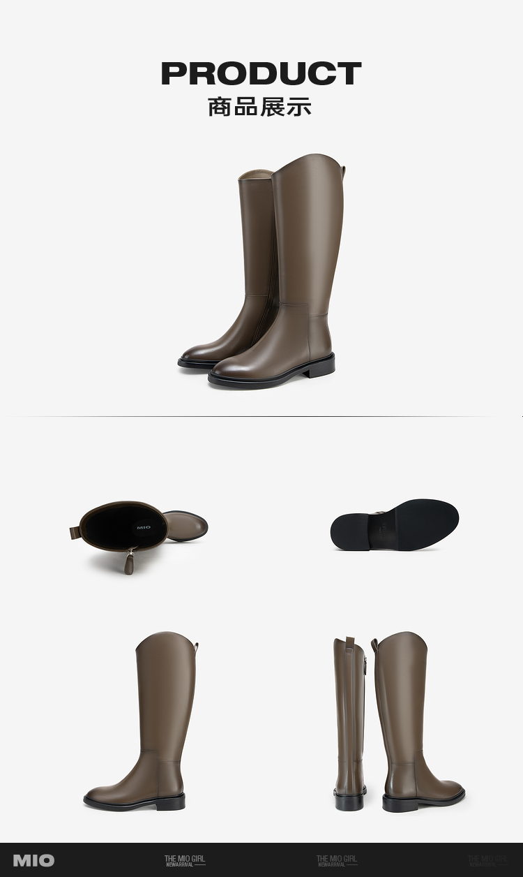 MIO米奥冬季不过膝长筒靴女厚底高筒V口骑士靴长靴烟筒靴女M235891065