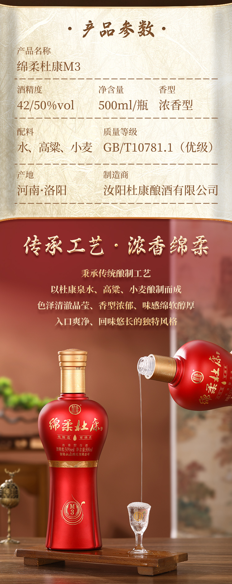 绵柔杜康M3酒50度500ml*6瓶整箱装浓香型白酒喜宴用酒
